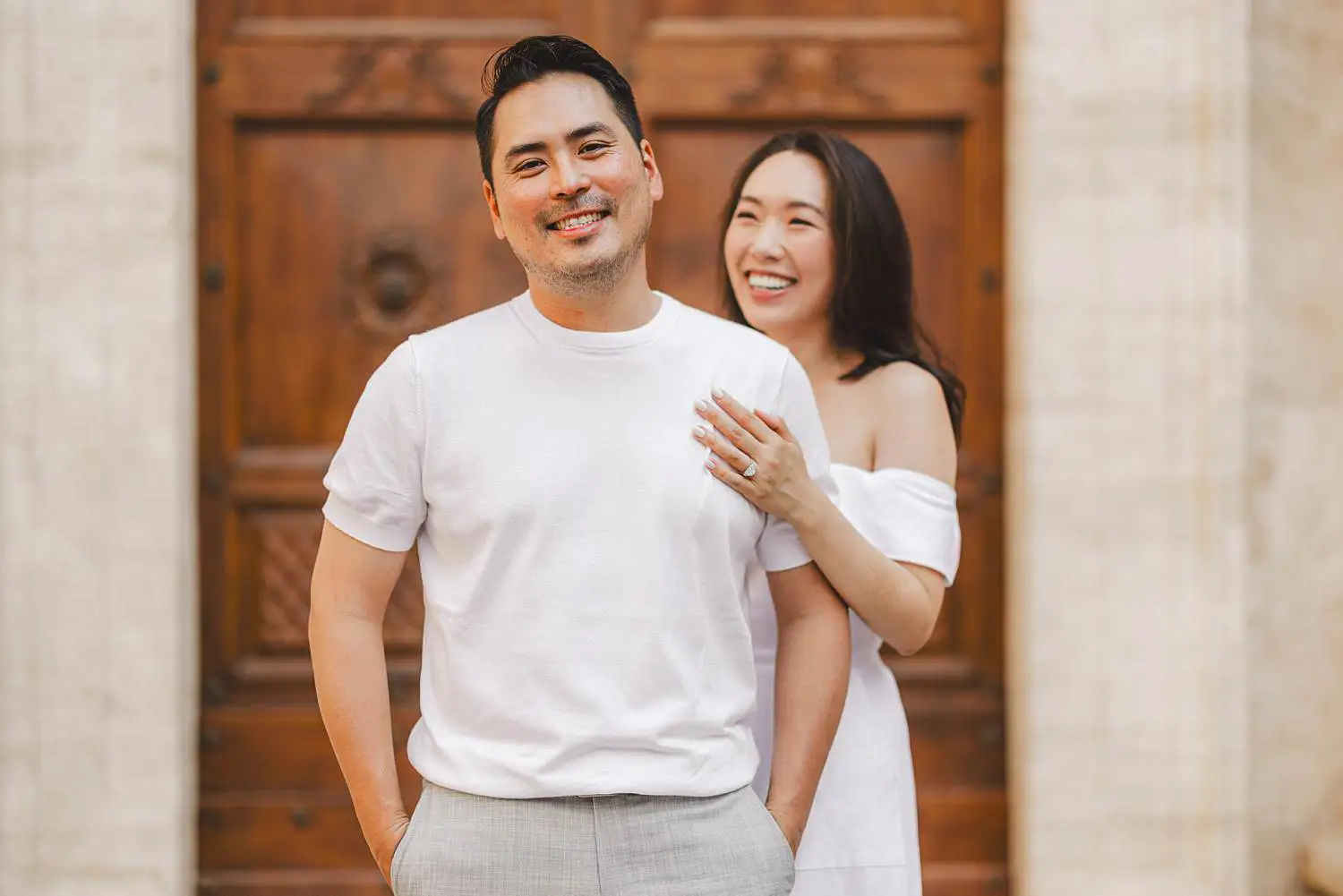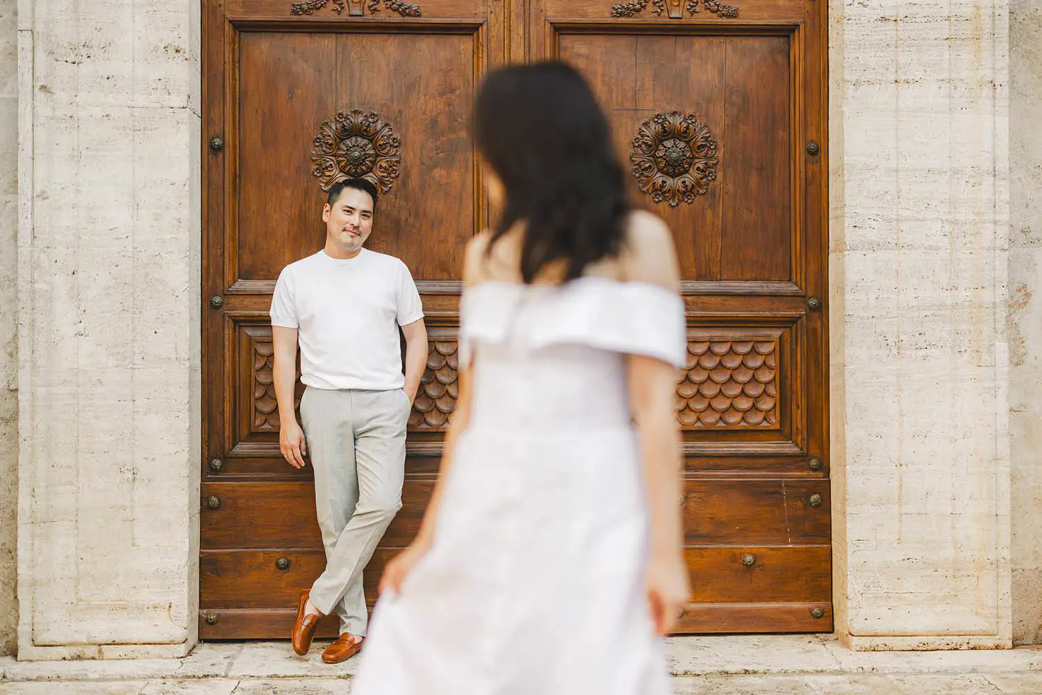 Here, the session naturally shifted between candid moments and more romantic portraits. They walked hand in hand, laughed freely, and embraced without hesitation. Nothing felt forced—just real, honest love unfolding in one of the most beautiful places in Italy.