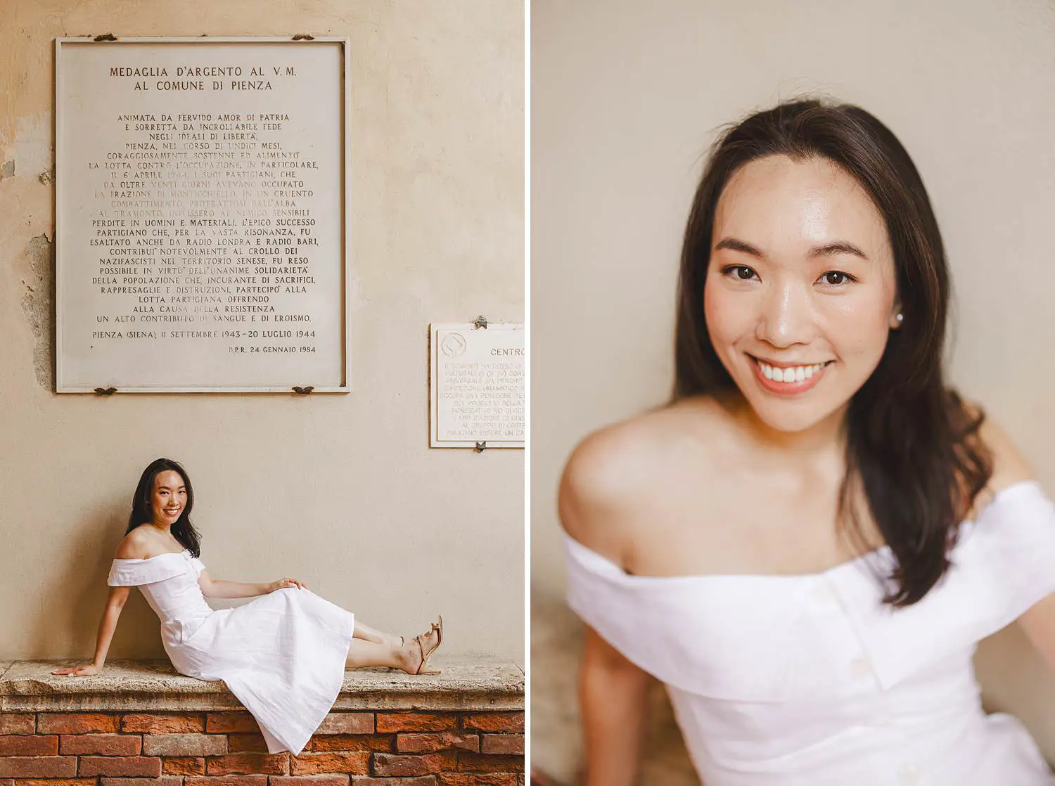 Celebrating the love with a romantic and elegant engagement photo shoot in Pienza iconic streets. Photo by the Italian creative and modern engagement photographer in Tuscany Gabriele Fani