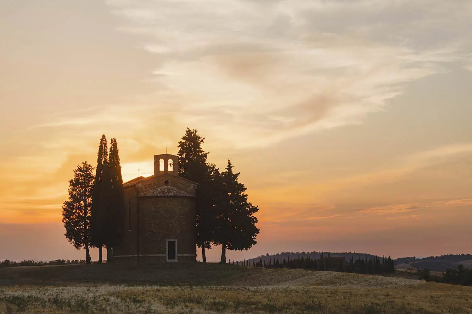 One of the highlights of the session was, of course, the Chapel of Vitaleta. Standing alone among the fields, it carries a quiet, almost sacred presence. As the sun began to dip lower, the light wrapped everything in a soft, golden glow, creating the most dreamy atmosphere imaginable.