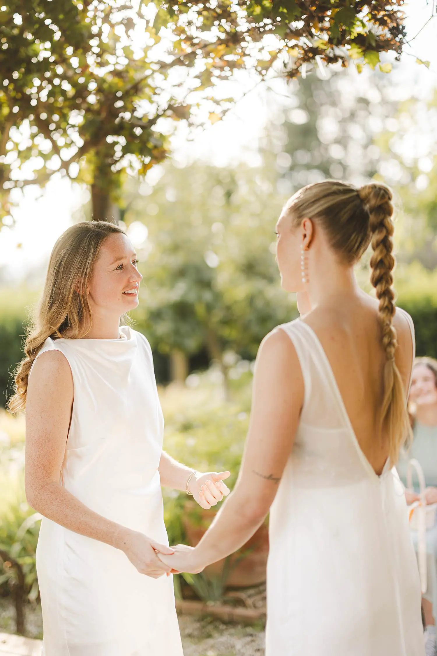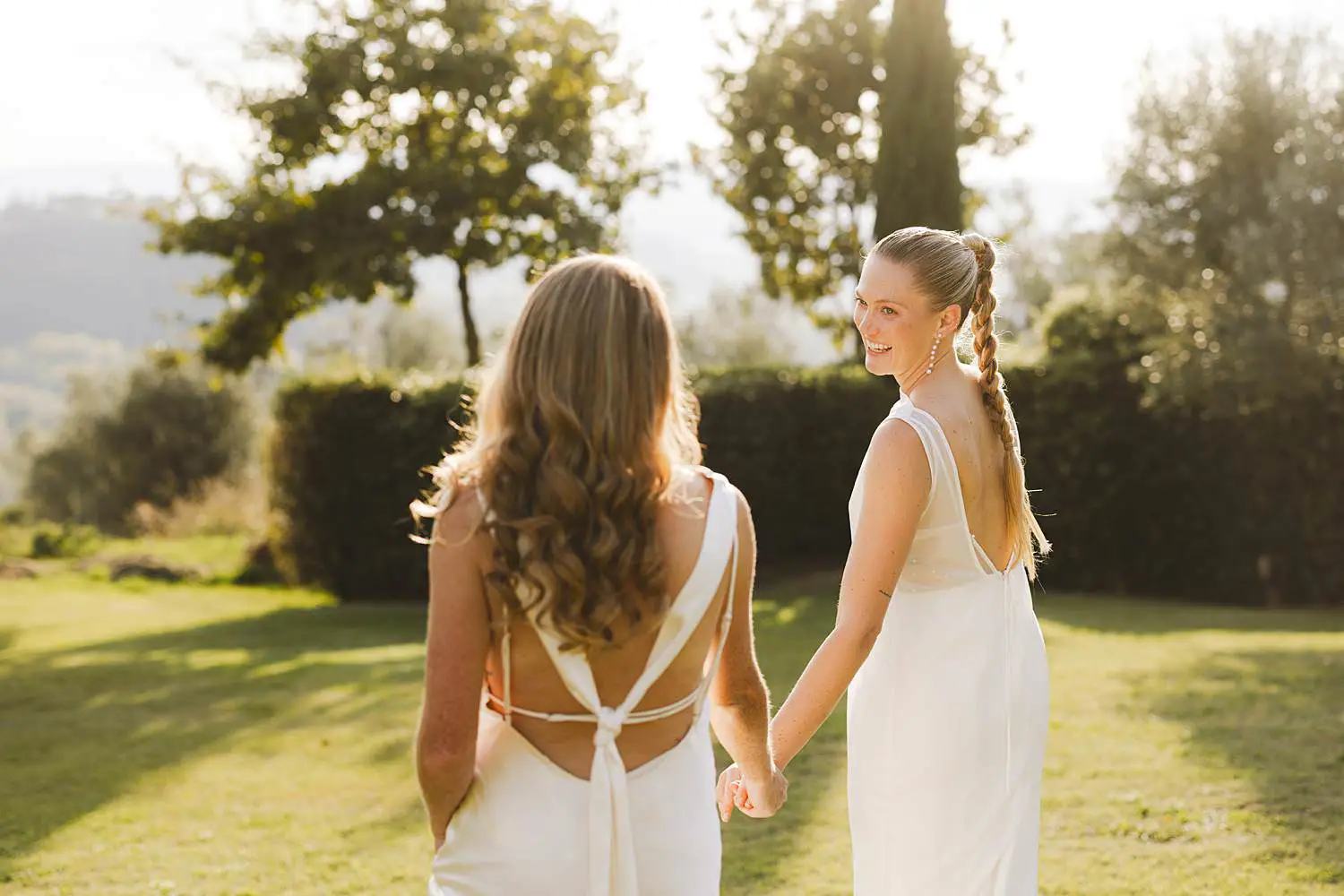 Paige and Paige envisioned a wedding that felt natural, personal and free from unnecessary formality. Their day was centered on shared moments, emotional presence and joyful celebration, surrounded by a small group of loved ones who traveled together to Tuscany.