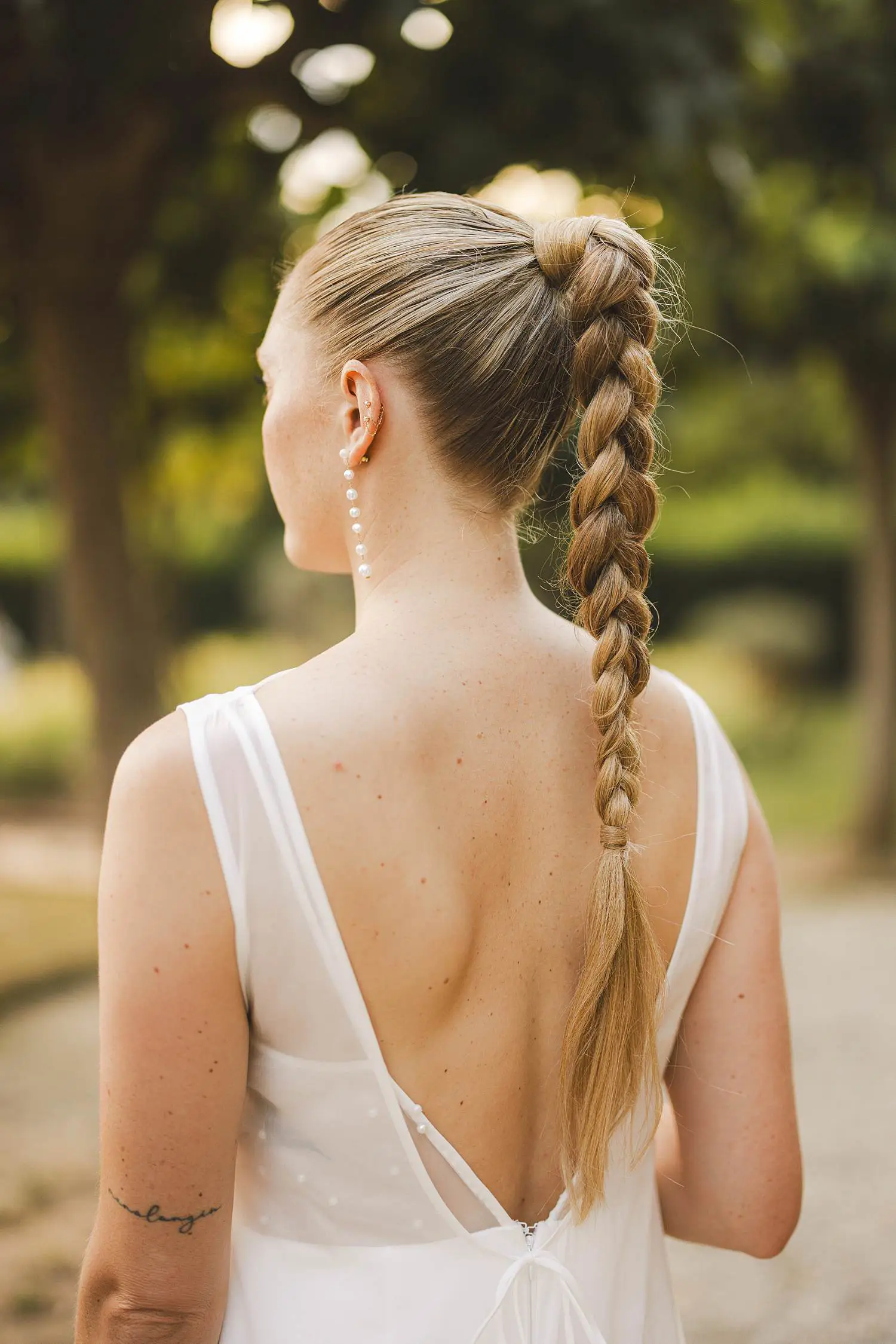 The aesthetic reflected this vision perfectly: minimalist bridal looks, warm seasonal florals in shades of orange and peach, natural textures and a color palette that blended seamlessly with the surrounding landscape.
