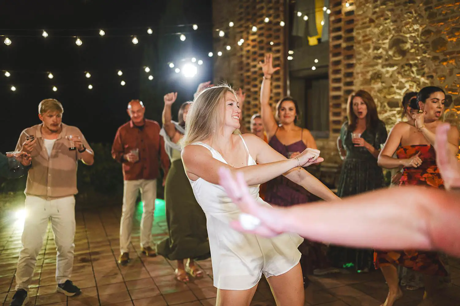 As night fell, the atmosphere transformed into a vibrant party. Guests filled the dance floor beneath the lights, laughing and dancing freely. The celebration continued late into the night, full of energy, warmth and genuine joy—ending the day exactly as it began: with love at the center of everything.