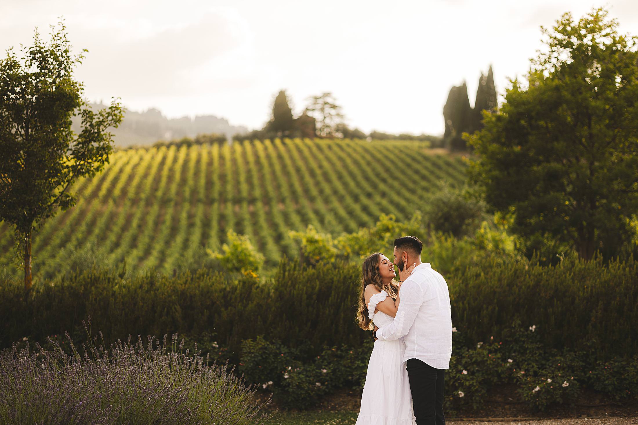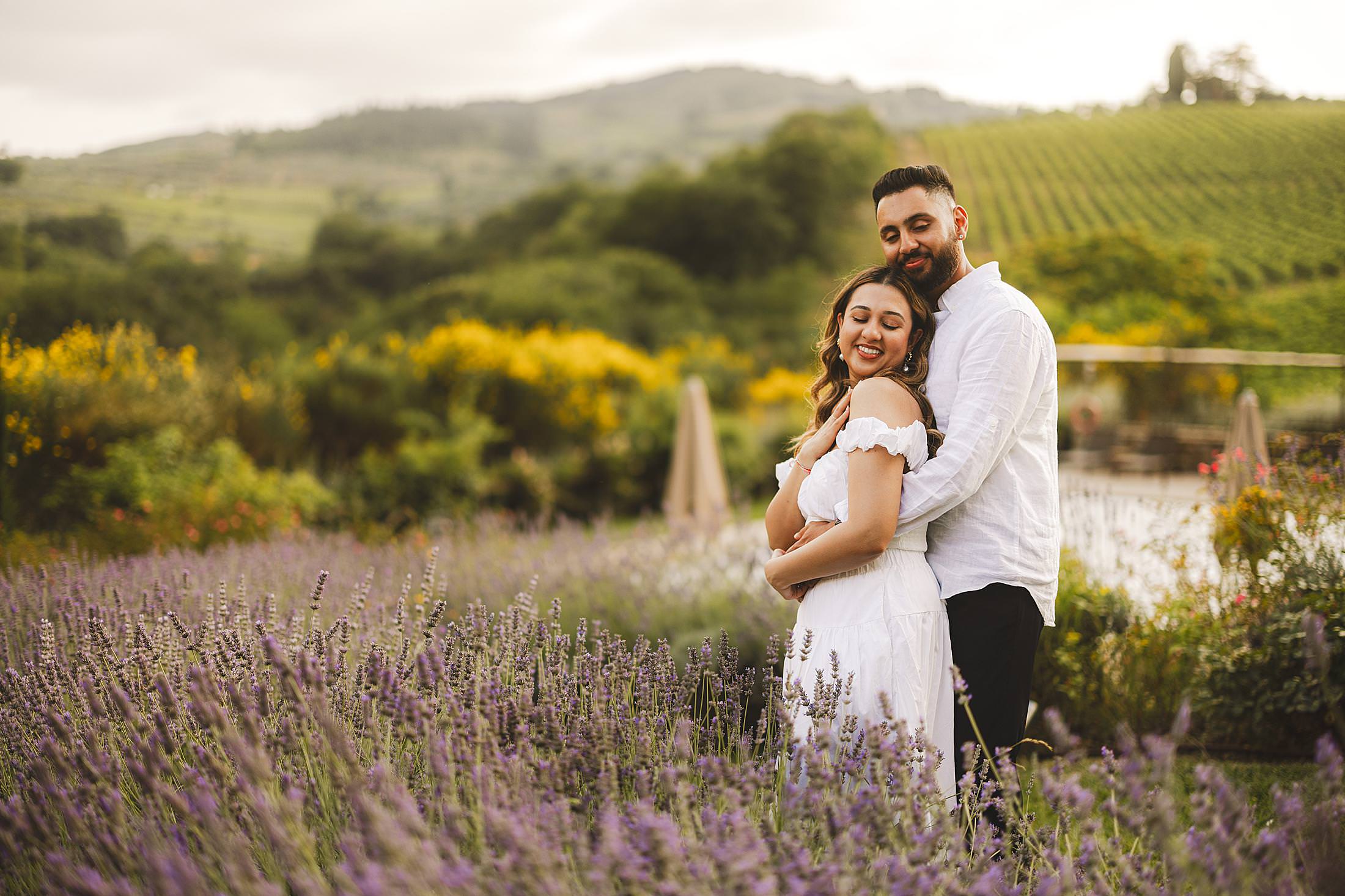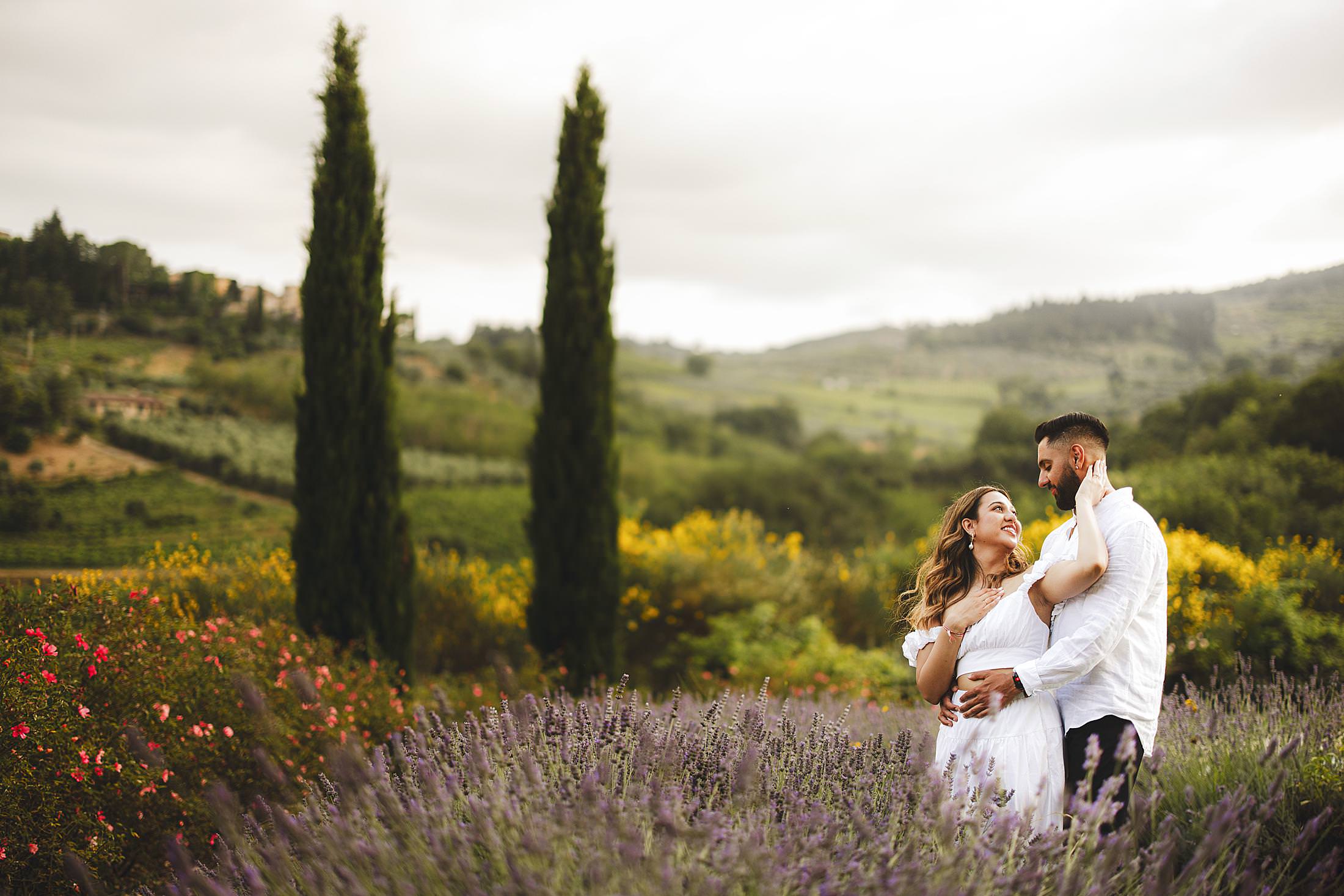 Borgo del Cabreo, with its many photographic spots, was the most graceful frame one could think of. From the rustic exposed stone walls to the romantic lavender bushes, not forgetting the garden facing the hills of Chianti and the dreamy hammock for two: every puzzle piece combined to create a narration of that unrepeatable situation. Every picture I took of them is infused with spontaneity and tells a tale of a promise sealed under the Tuscan sky: a surprise that turned into a memory to treasure for the years to come.