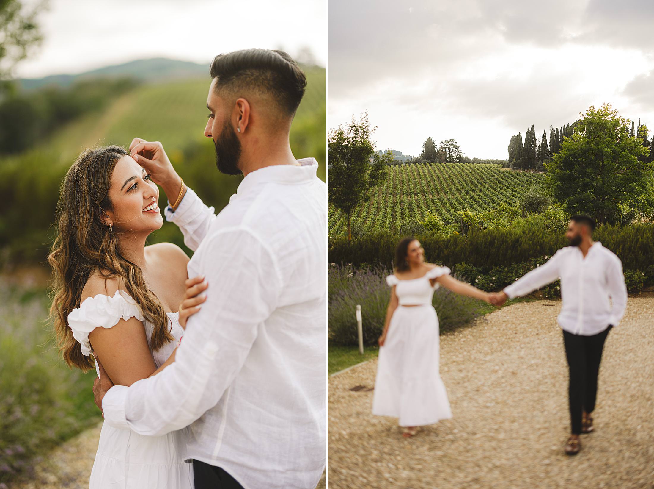 The story of the secret wedding proposal of Rahul to his now fiancée Ridhie echoed through the captivating landscapes of Borgo del Cabreo, on that day and forever thanks to the photographs we shot.