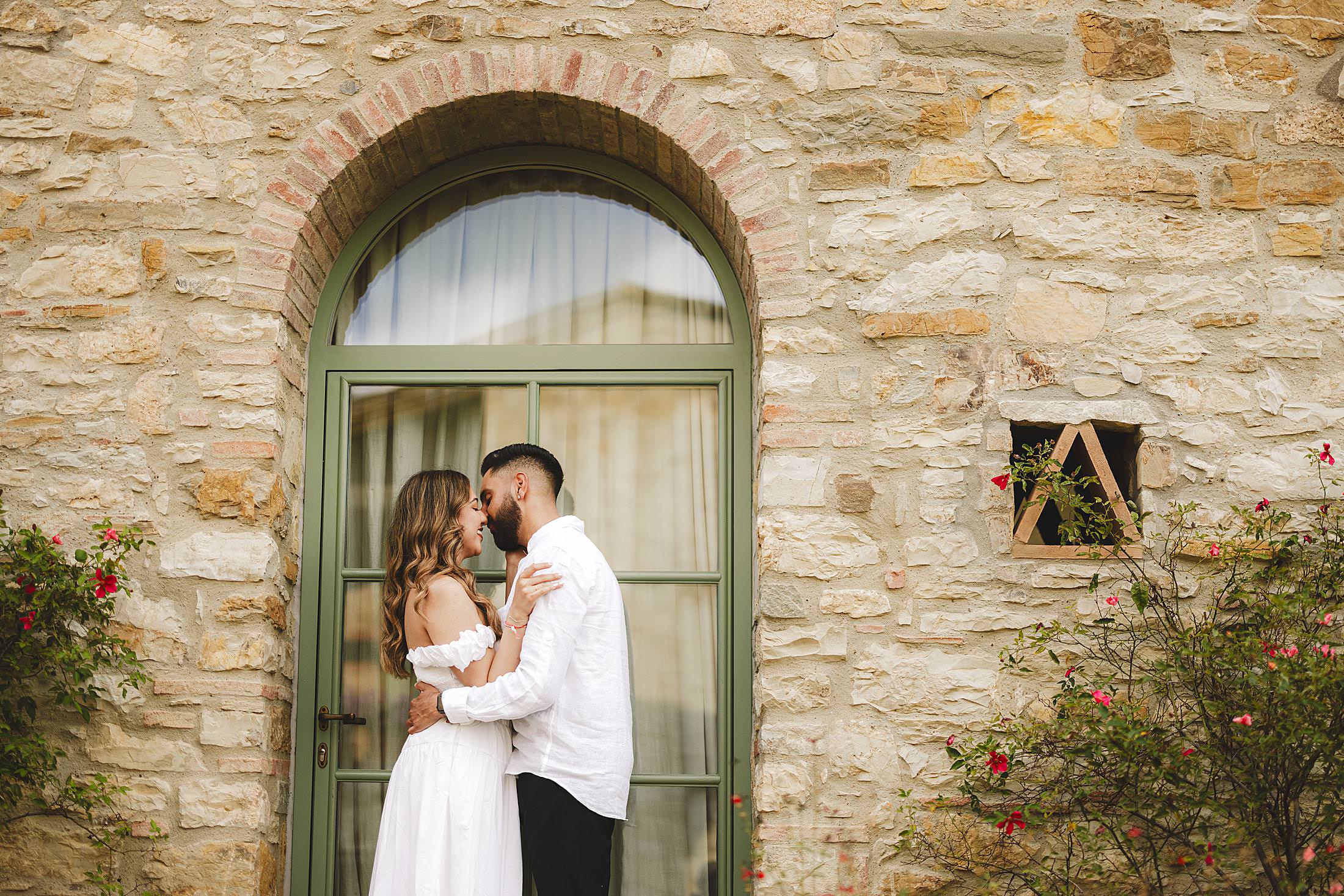 Romantic and lovely couple engagement session at Borgo del Cabreo charming venue. Photo by the Italian elegant creative and modern engagement photographer in Tuscany based Florence Gabriele Fani