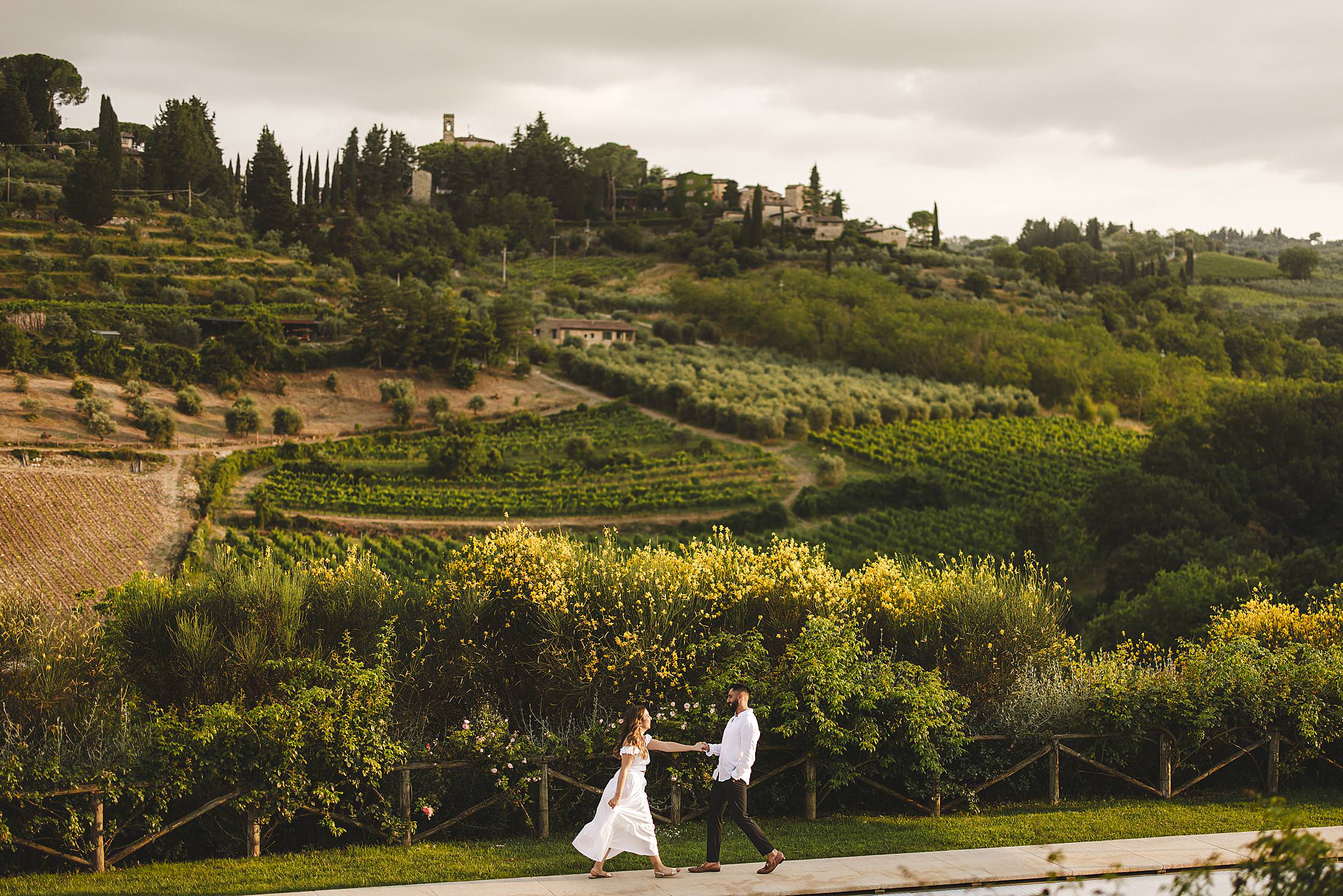 Fun couple portraits photo tour at Borgo del Cabreo in the Chianti area. Photo by the Italian elegant creative and modern engagement photographer in Tuscany based Florence Gabriele Fani