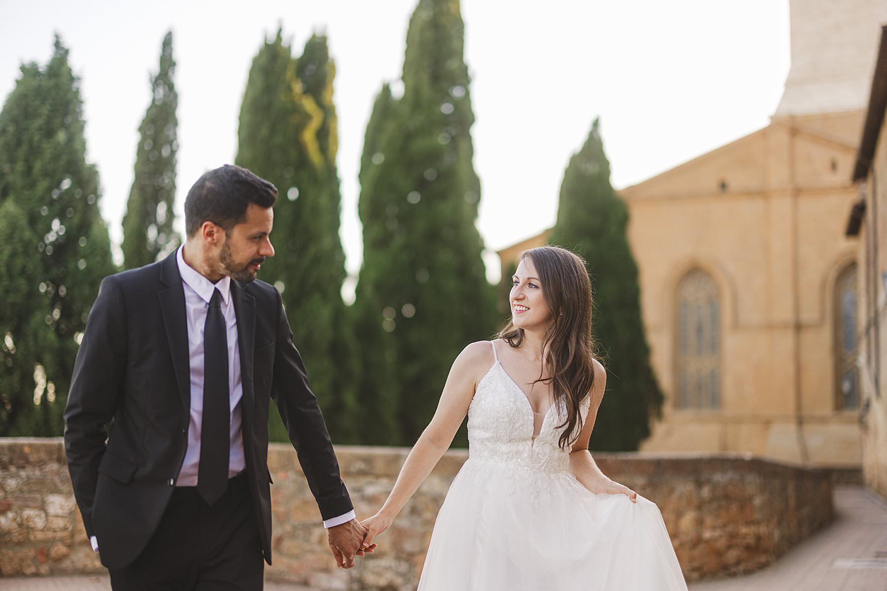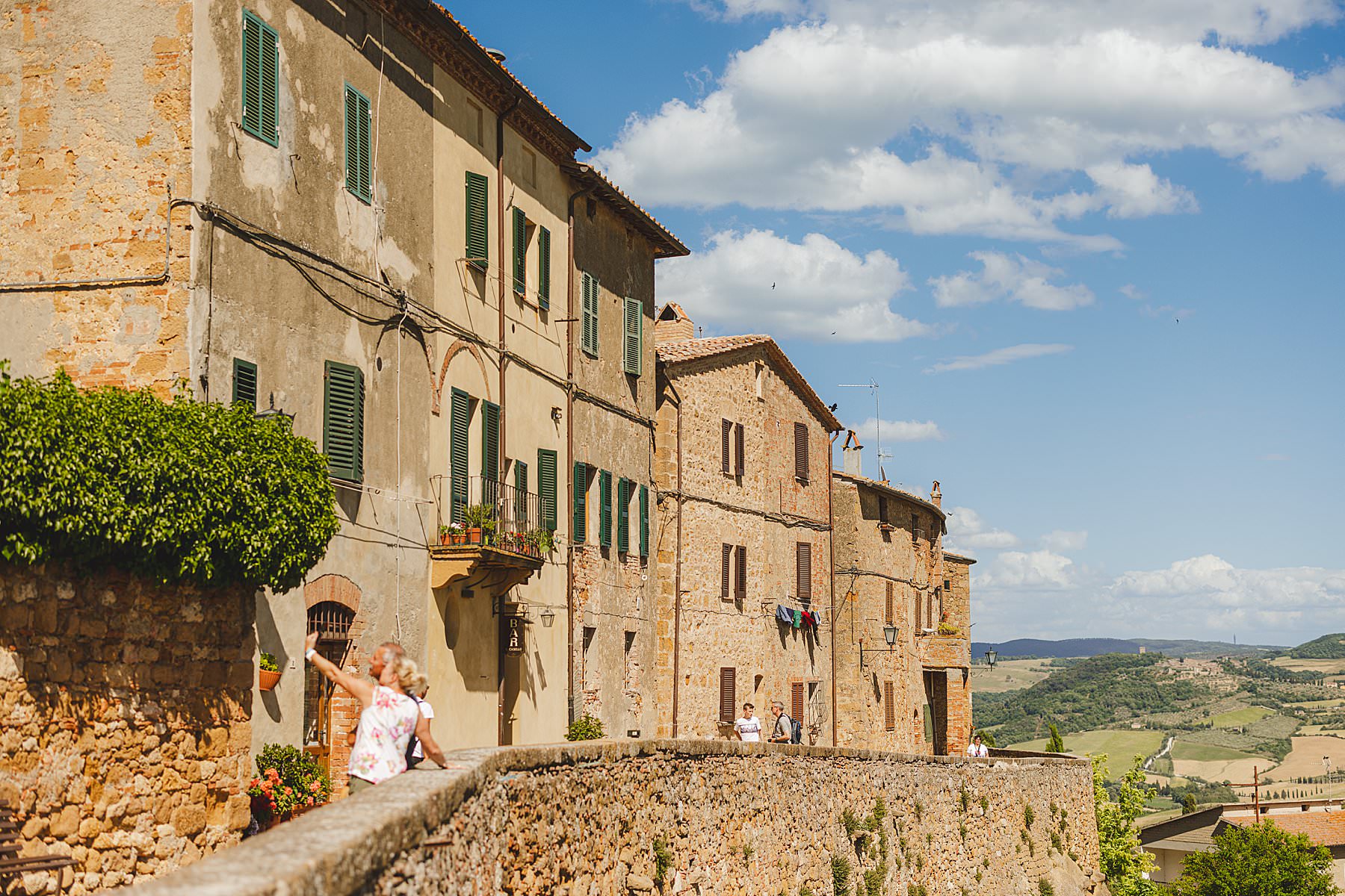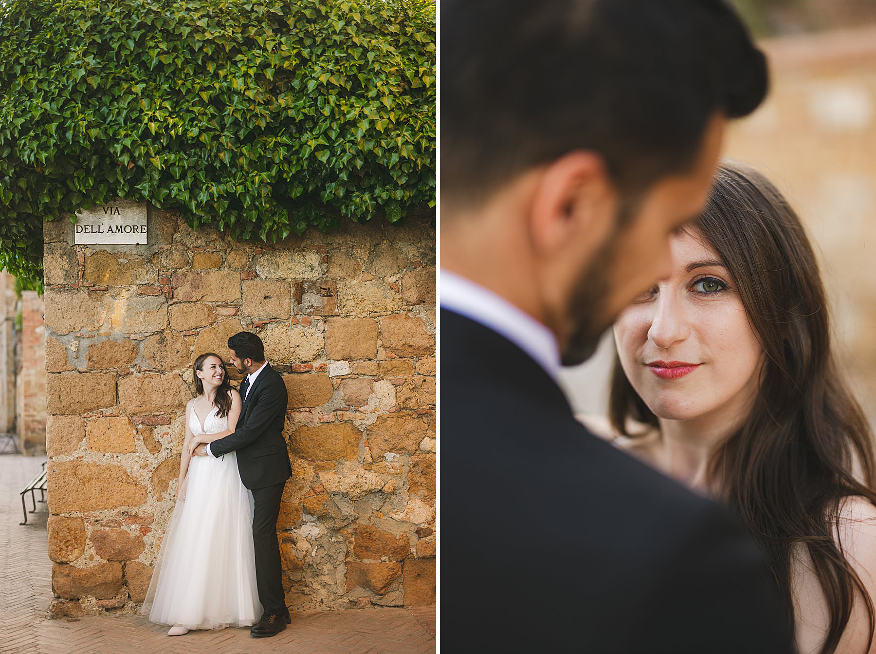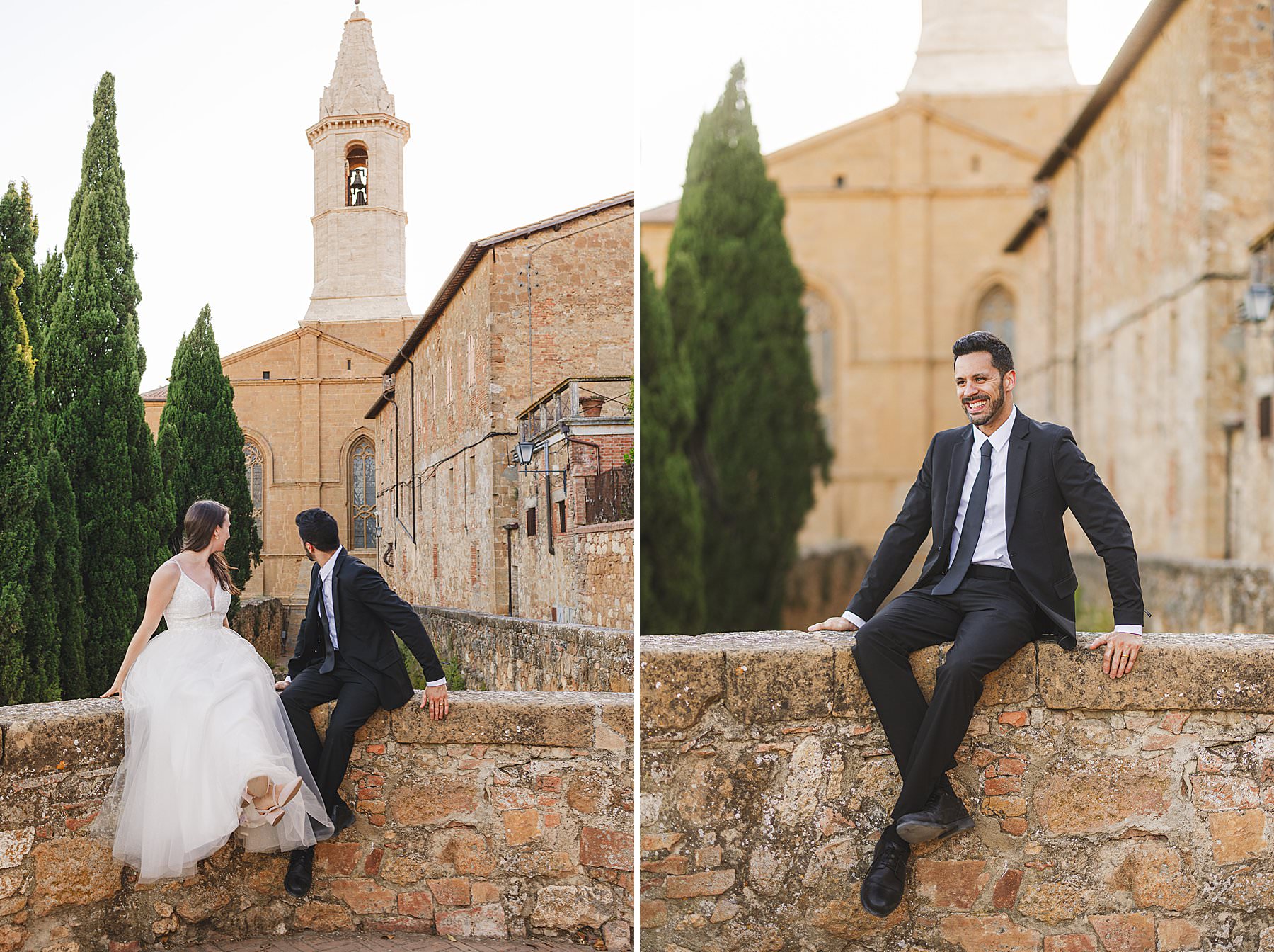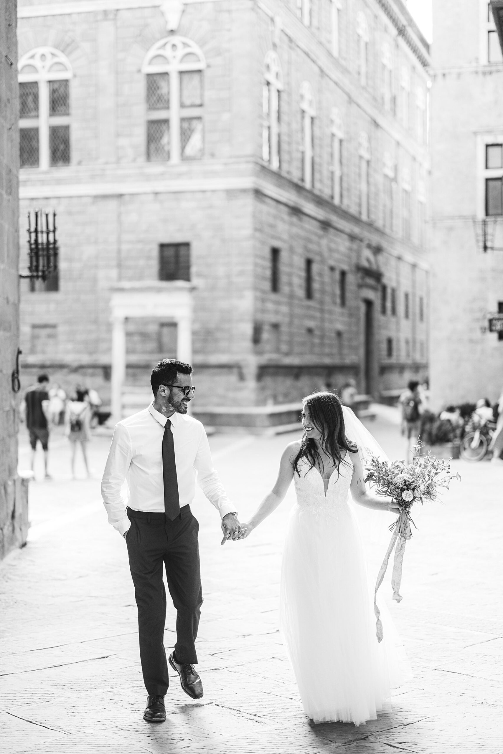 Exciting wedding photo in Pienza the heart of Val d’Orcia for intimate destination elopement. Photo by the Italian elegant wedding photographer in Tuscany based Florence Gabriele Fani