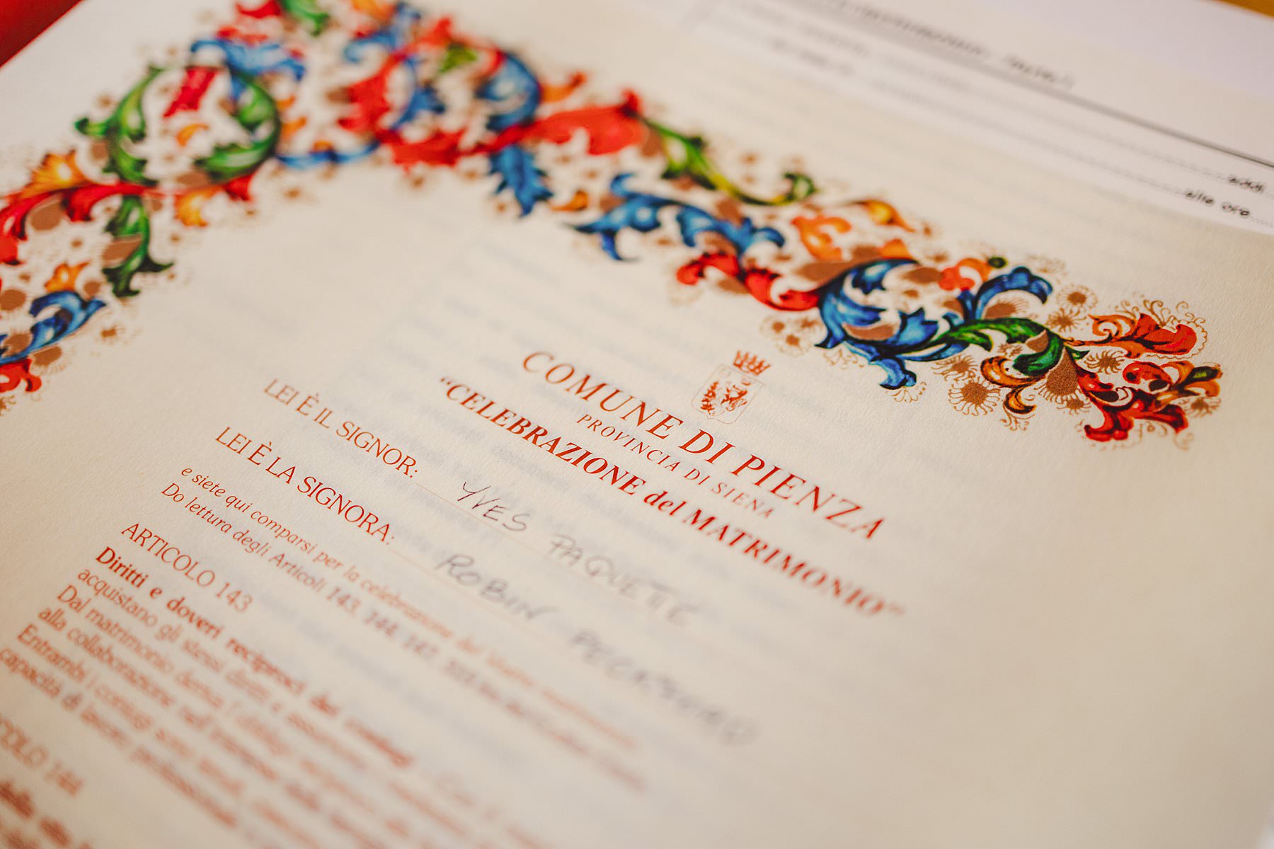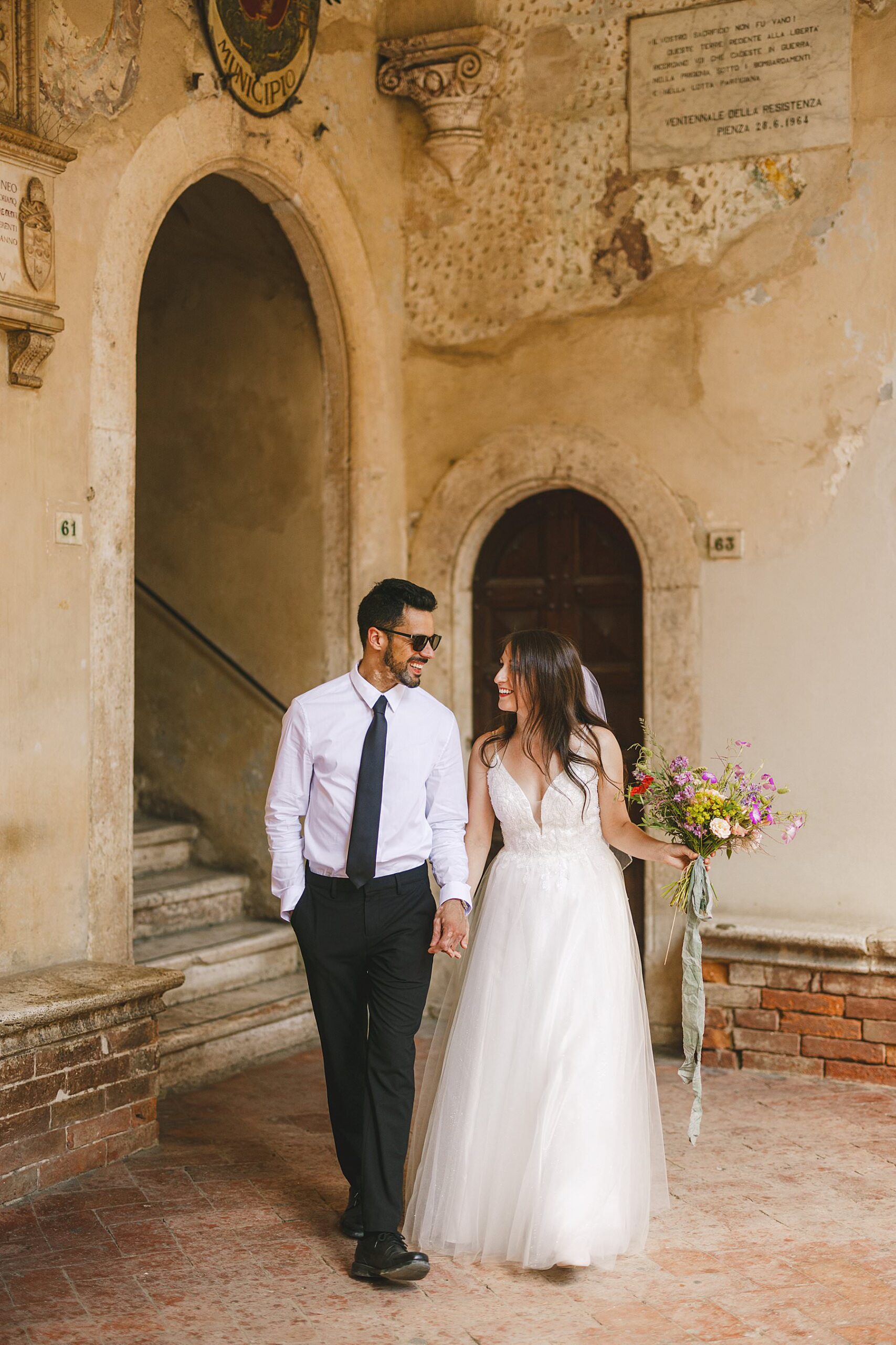 This smiling and positive couple from Canada decided to get married in Italy with a civil wedding at the Town Hall of Pienza, a picturesque village tucked in the Tuscan hills. They didn’t wish for a big ceremony: in fact, it was just the two of them and two Italian friends as witnesses. A truly intimate and romantic elopement, without a doubt!