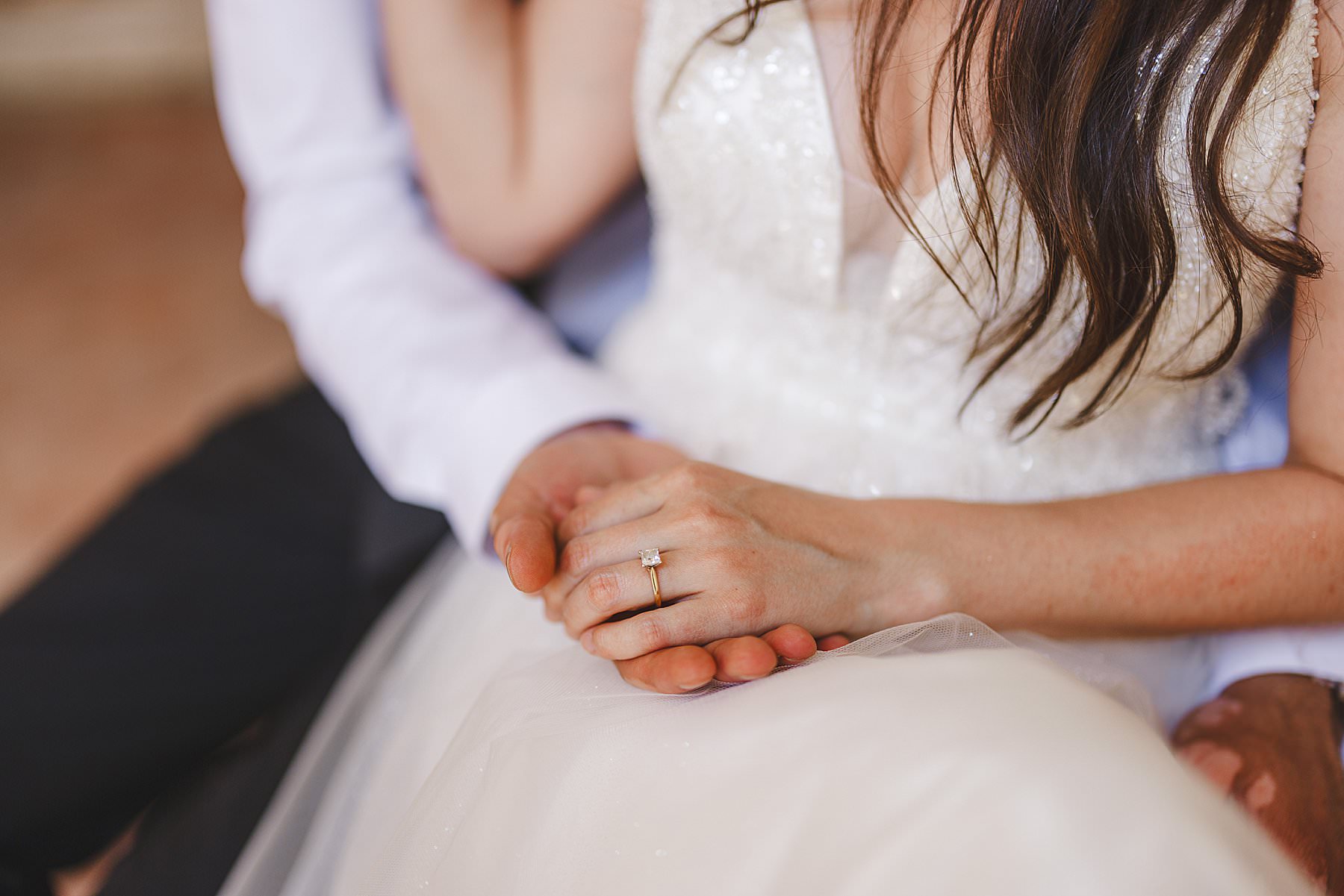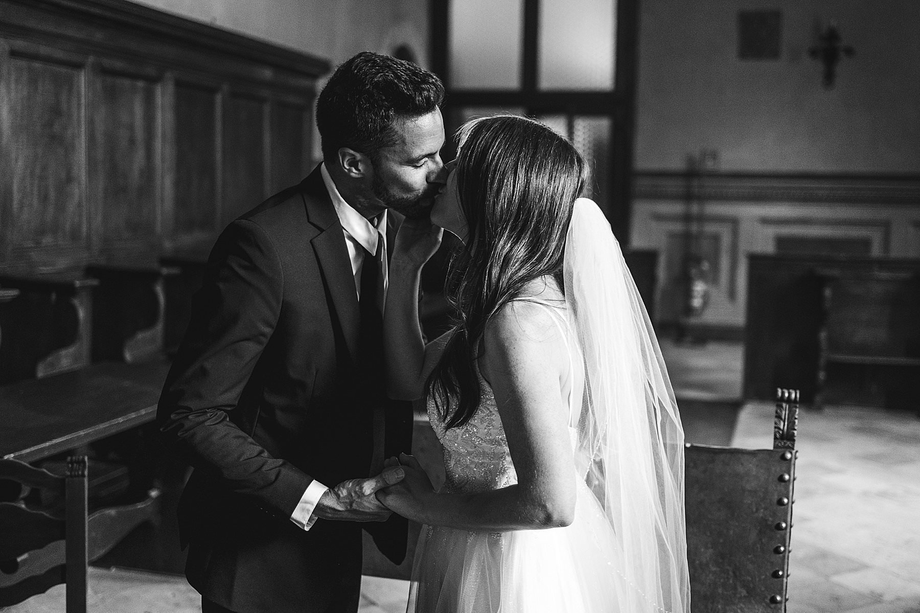 After a pit stop for some food, we got to the second part of the romantic elopement – and of its photo shooting – that took place on the rolling hills of Val d’Orcia, at the little Chapel of the Madonna di Vitaleta. This is an iconic tiny church and UNESCO World Heritage Site in the province of Siena, surrounded by fields and nature: a stunning background for an emotional moment.