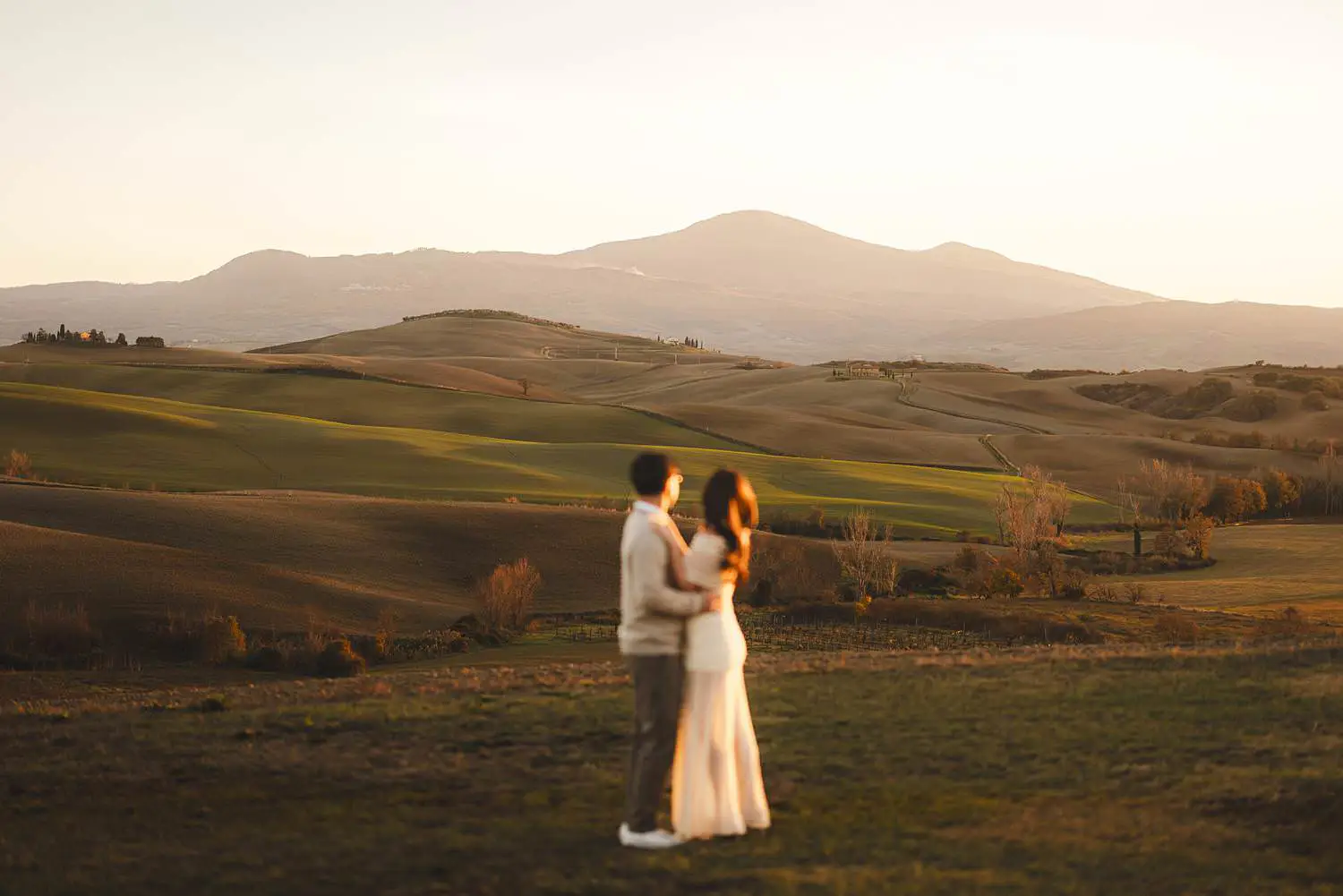 The golden hour in Val d’Orcia created a cinematic atmosphere, turning every frame into something timeless and deeply emotional. It was the perfect ending to a day that felt both intimate and extraordinary.