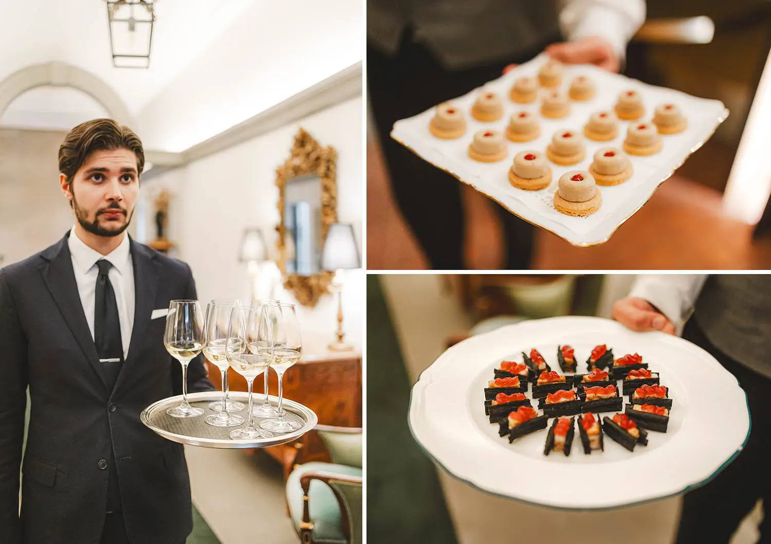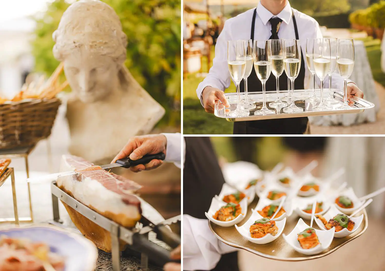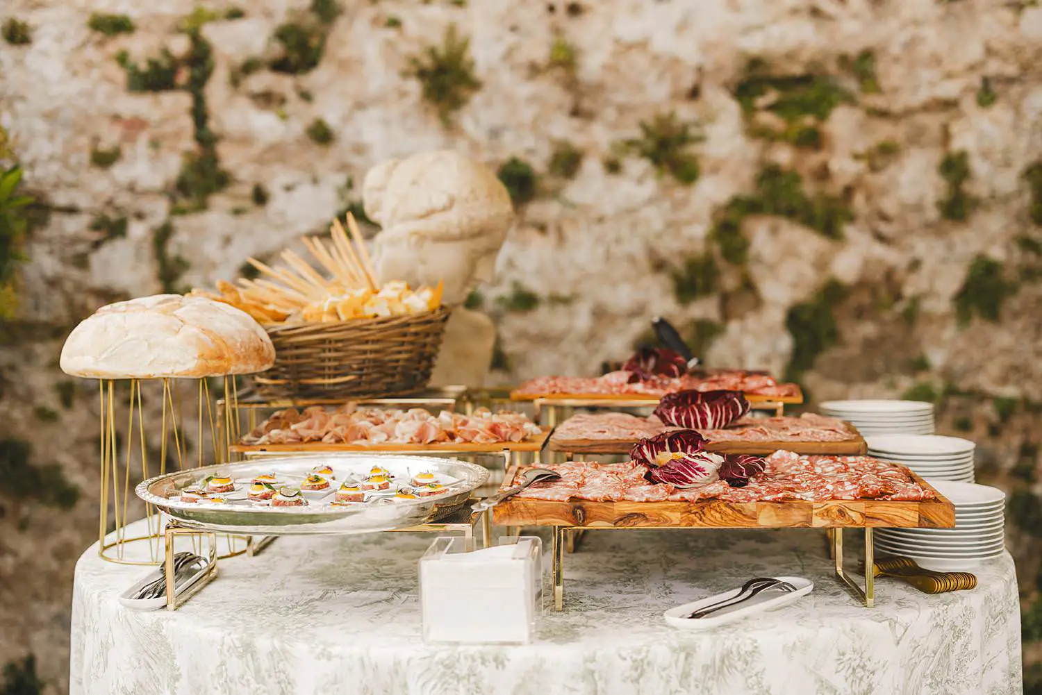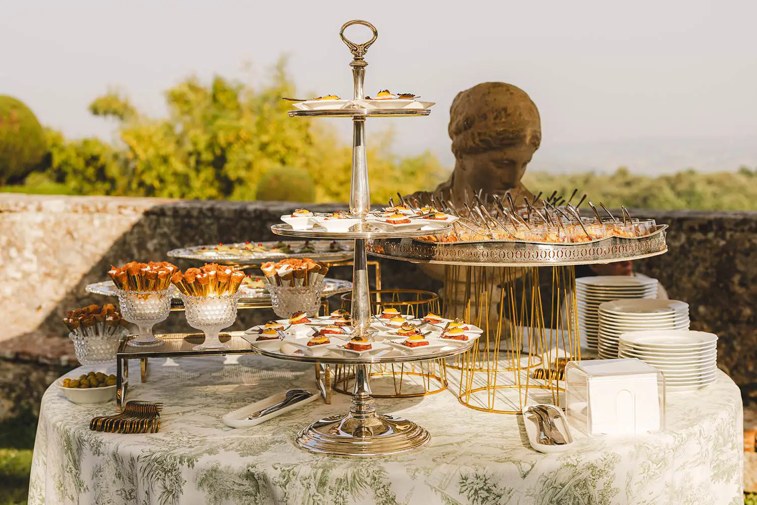 Delicious Italian food for wedding reception cocktail at Castello di Celsa in Tuscany. Photo by the Italian elegant wedding photographer in Tuscany Gabriele Fani