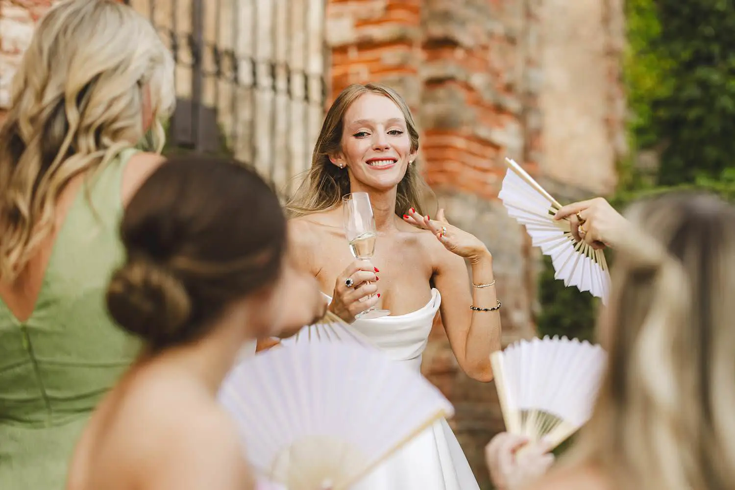 Bridal party fun moment at luxury Castello di Celsa wedding in Tuscany. Photo by the Italian elegant wedding photographer in Tuscany Gabriele Fani