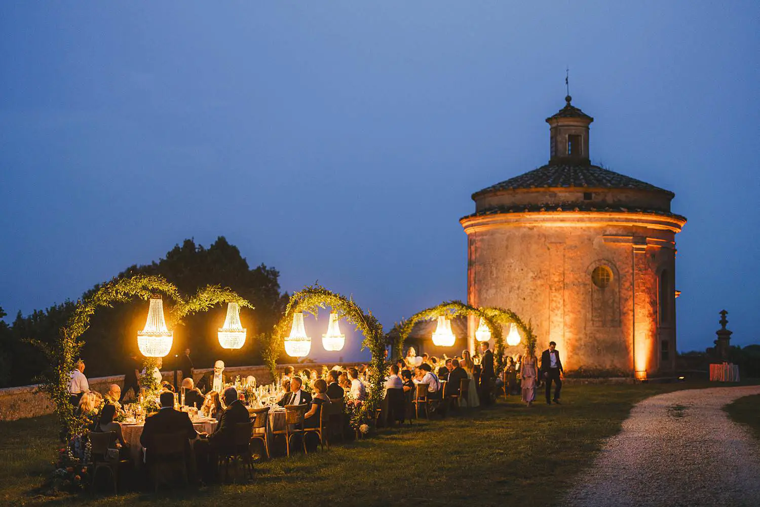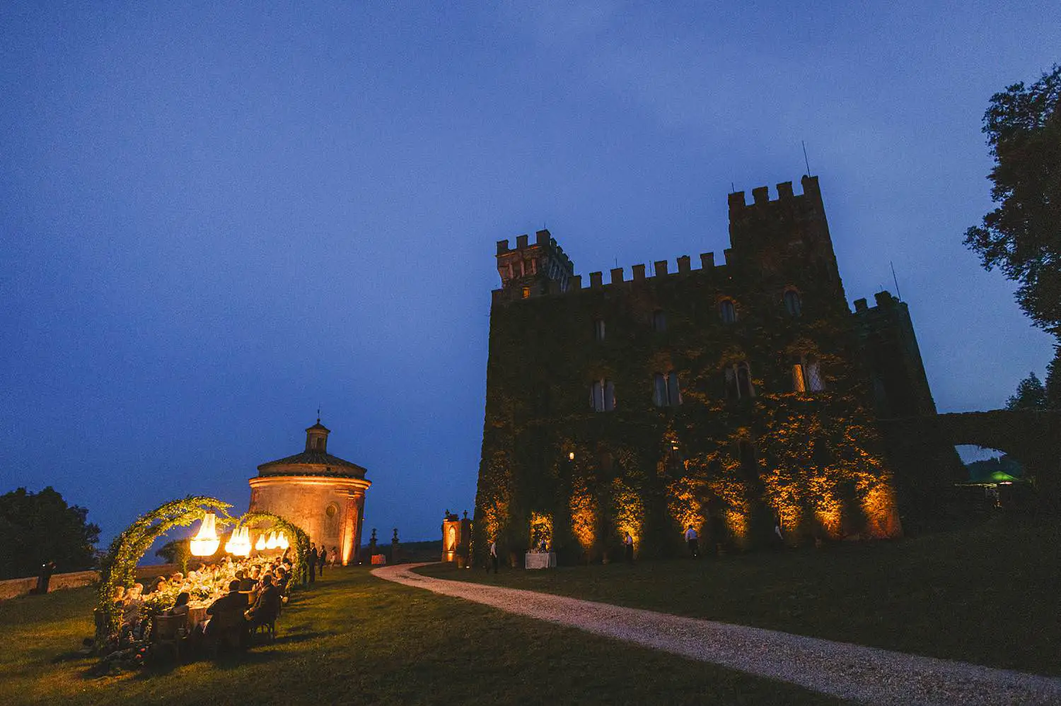 Unforgettable and dreamy wedding dinner recaption at luxury Castello di Celsa venue in Tuscany. Photo by the Italian elegant wedding photographer in Tuscany Gabriele Fani