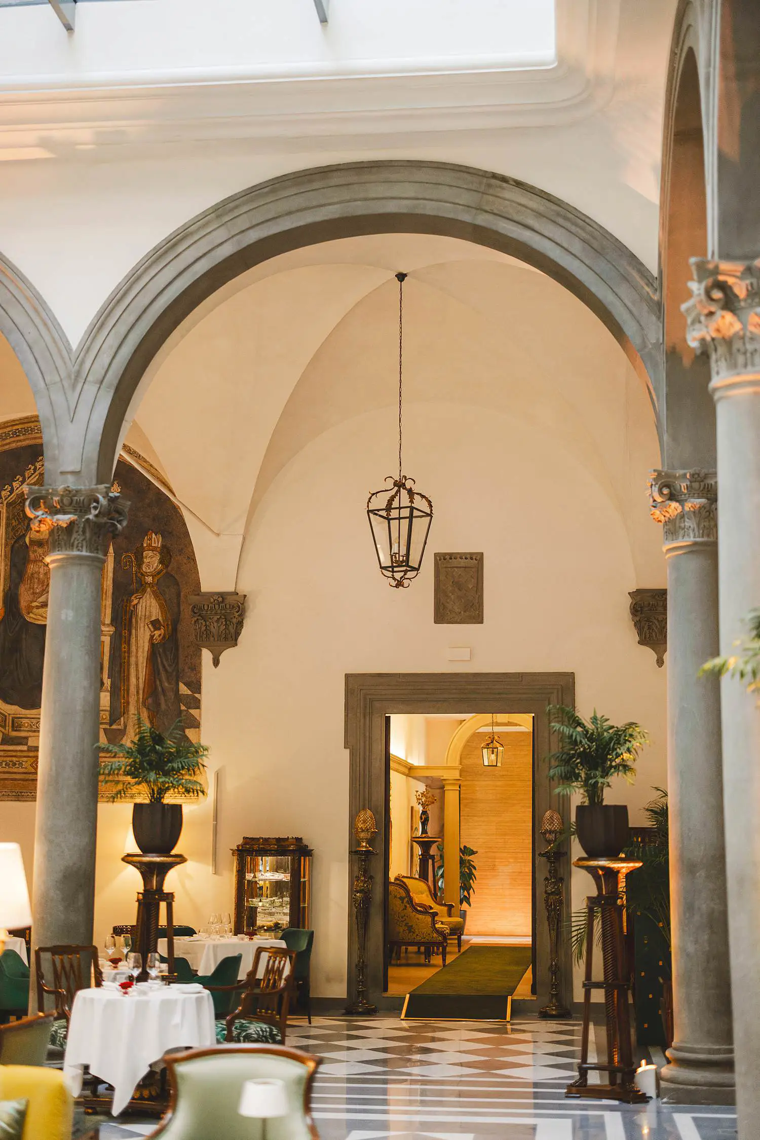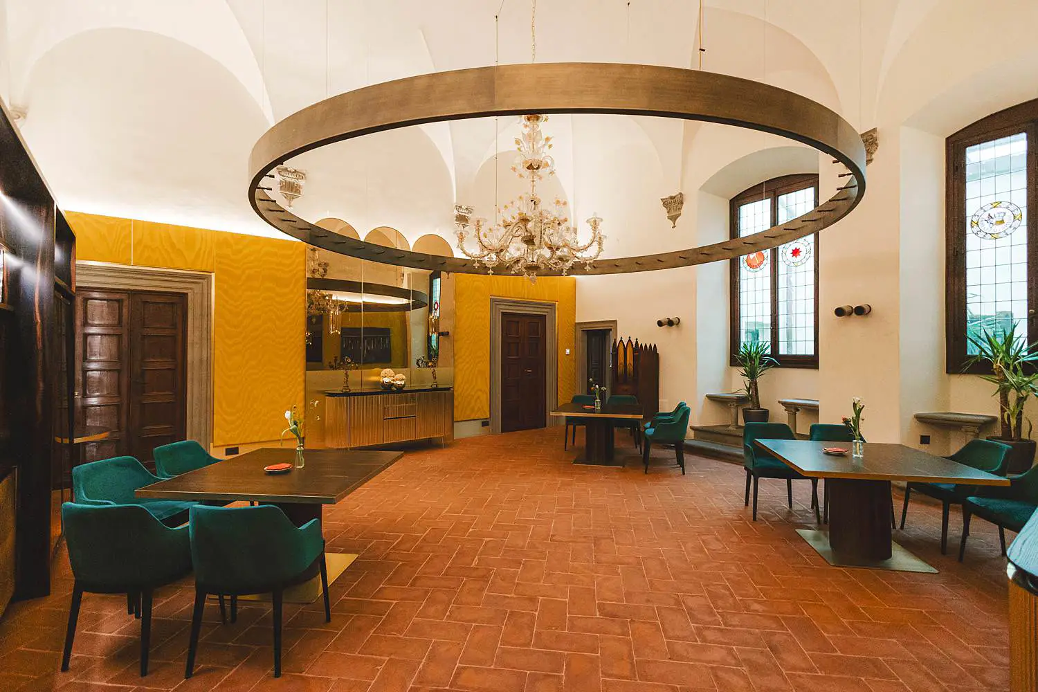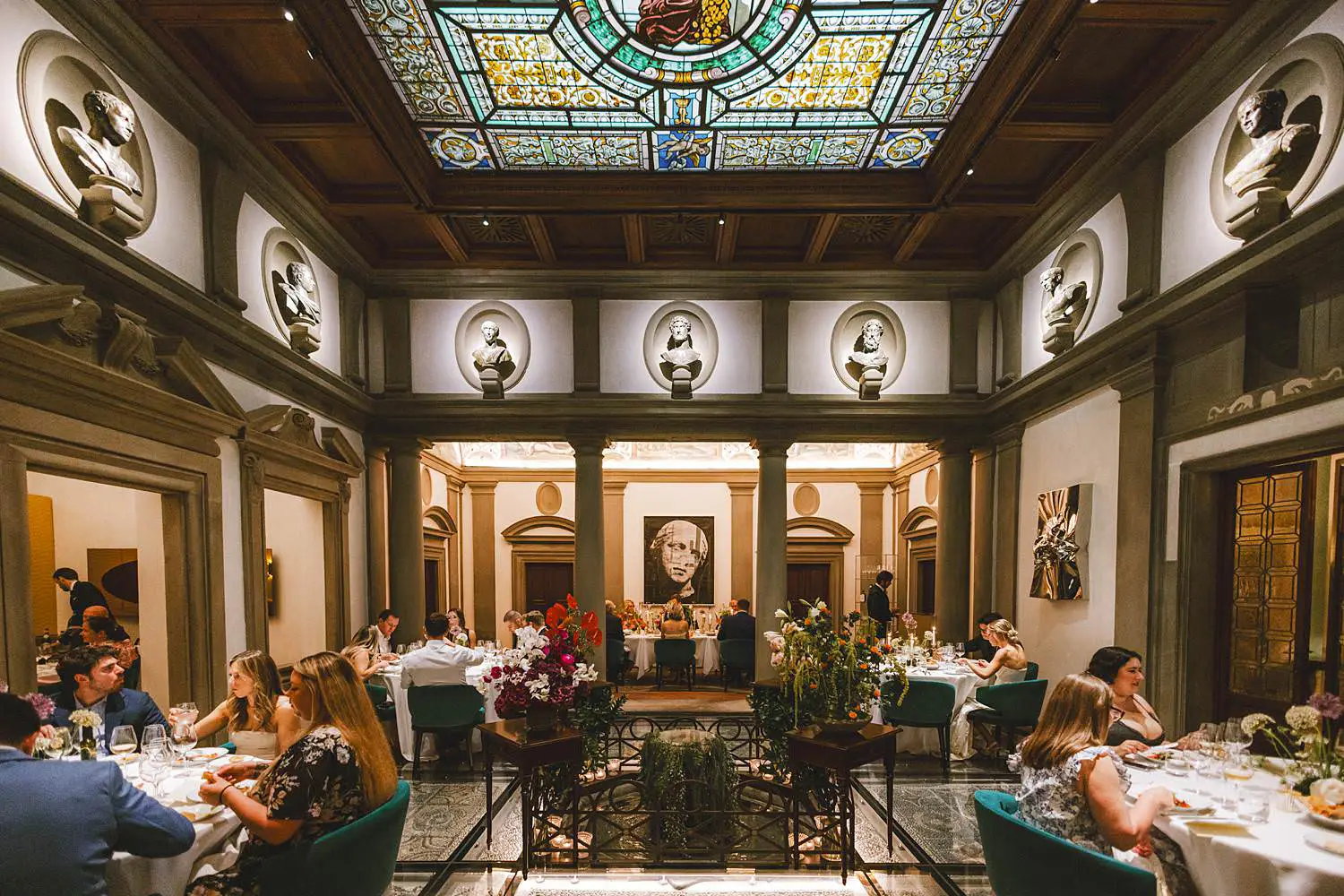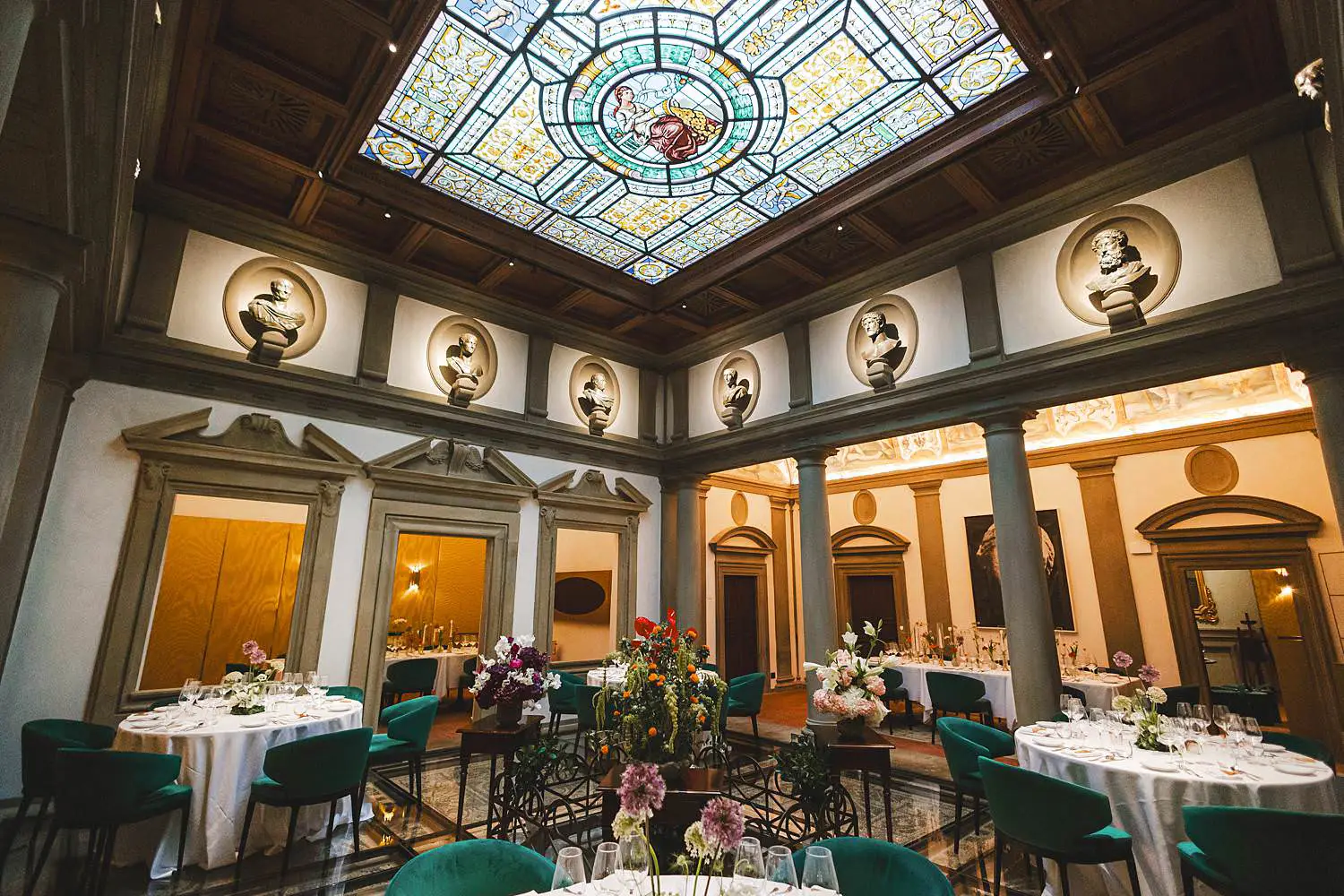 The beauty and elegance of Atto di Vito Mollica stellar restaurant in Palazzo Portinari Salviati in Florence a perfect place for a wedding welcome dinner. Photo by the Italian wedding photographer in Tuscany based in Florence Gabriele Fani