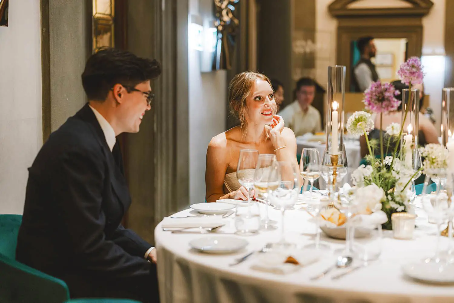 Two days before their wedding, Kate and Cameron hosted an intimate welcome dinner at the Michelin-starred restaurant Atto di Vito Mollica, located inside the luxurious Palazzo Portinari Salviati in the heart of Florence. The evening set the tone for their Tuscan celebration, offering guests a refined and elegant experience in a historic setting. With its opulent interiors and attentive service, the Palazzo provided the perfect backdrop for a luxury pre-wedding dinner, creating an exclusive and unforgettable evening that celebrated the couple and welcomed their loved ones to Italy in style.