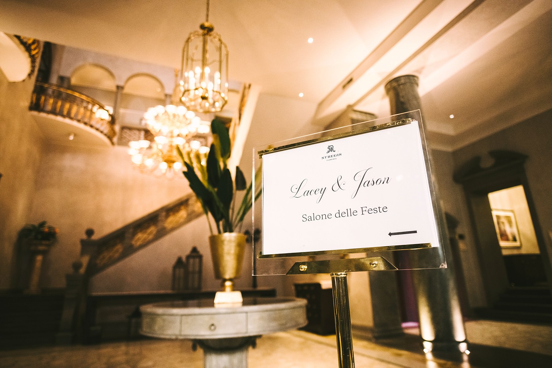 After deciding the destination for their small wedding, they chose a very special venue where to celebrate it: the exclusive St. Regis in Florence – specifically, the majestic Salone delle Feste.