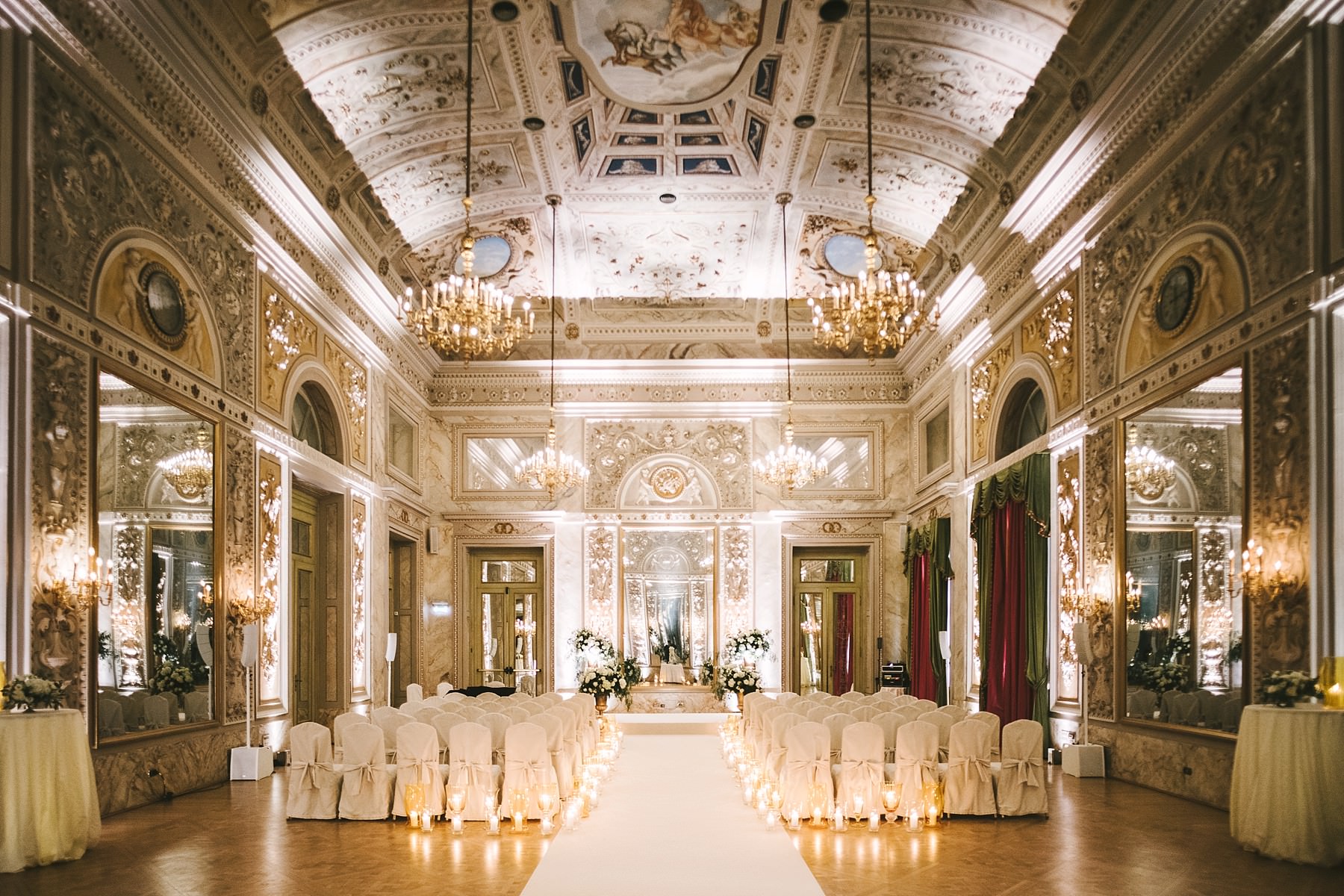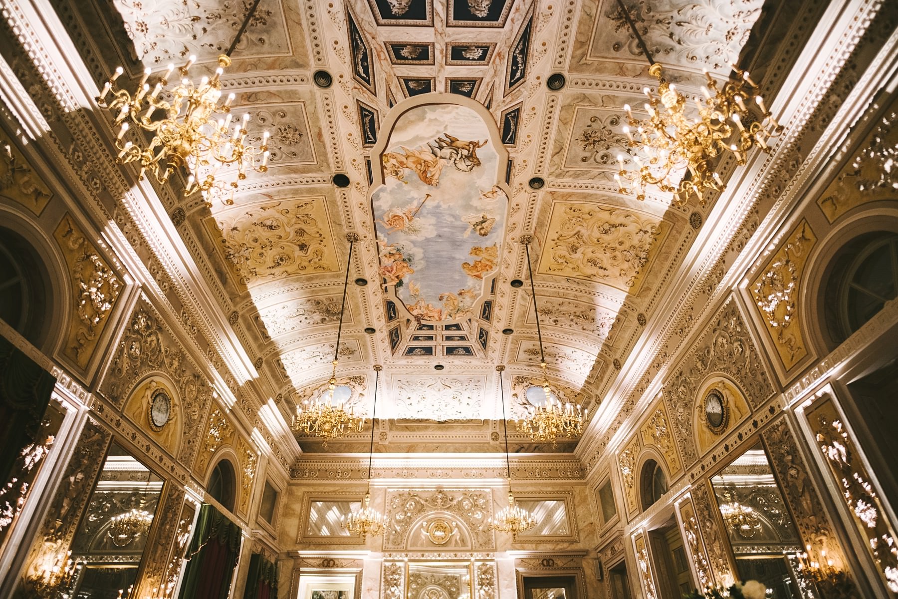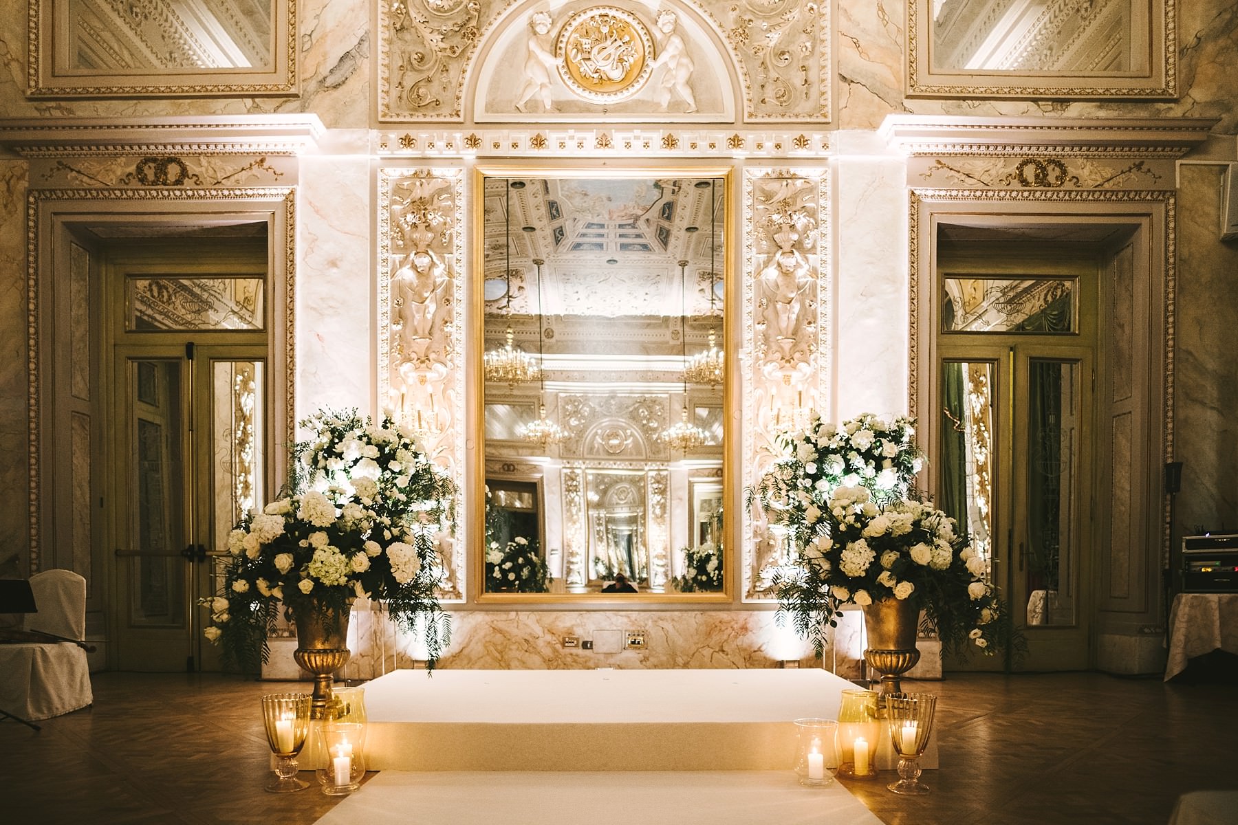 Unbelievable luxury destination wedding Sala delle Feste ballroom in Hotel St. Regis Florence. Photo by the Italian elegant and modern wedding photographer in Tuscany based Florence Gabriele Fani