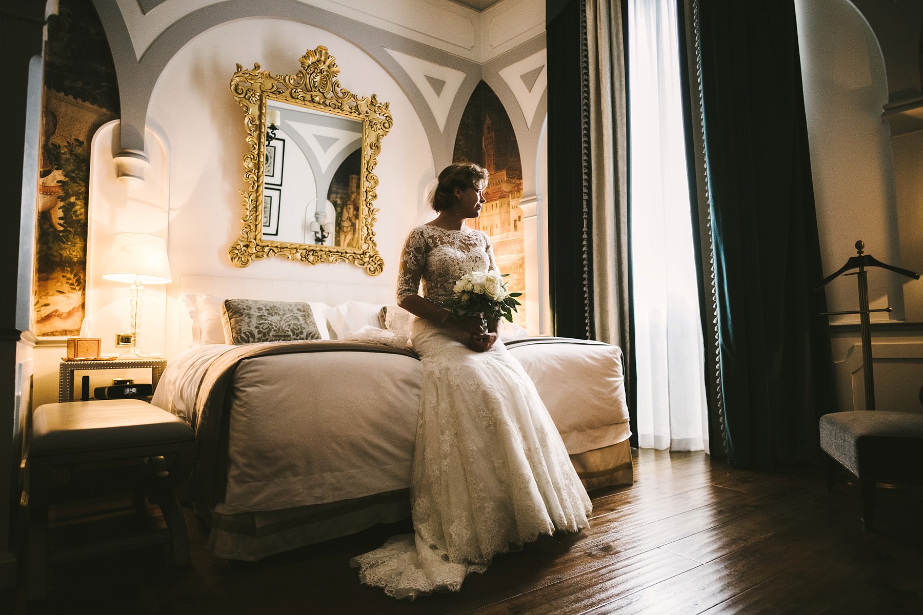 Bridal dress in St. Regis Florence. Destination wedding in Florence. Photo by the Italian elegant and modern wedding photographer in Tuscany based Florence Gabriele Fani