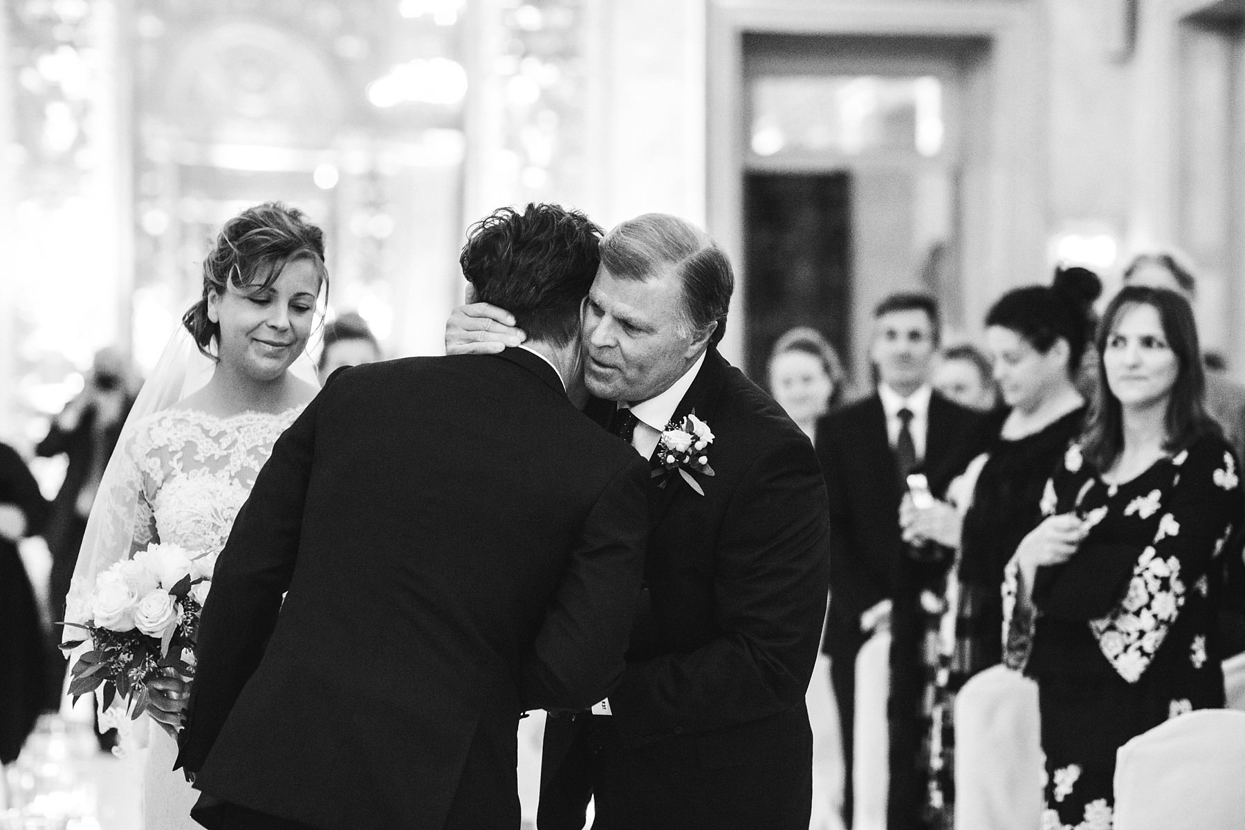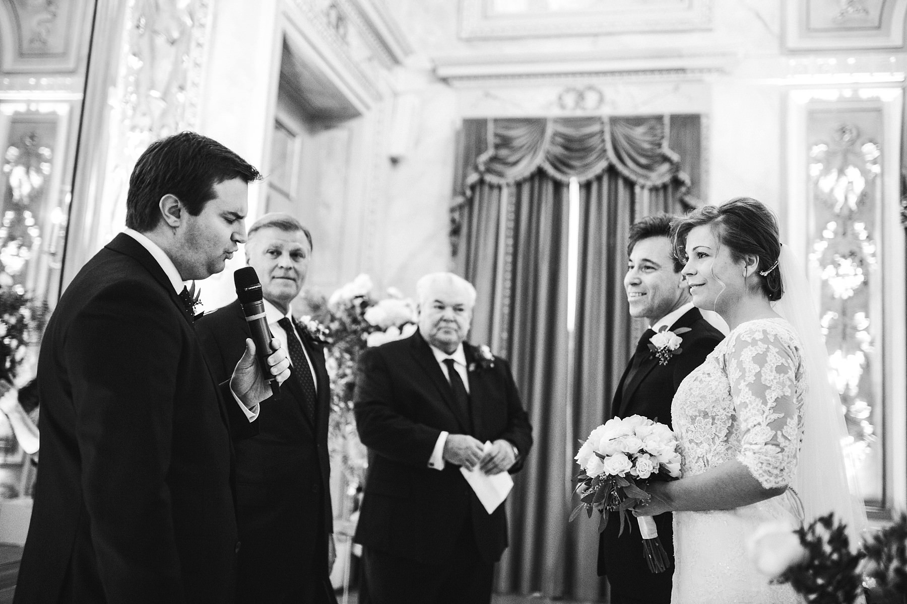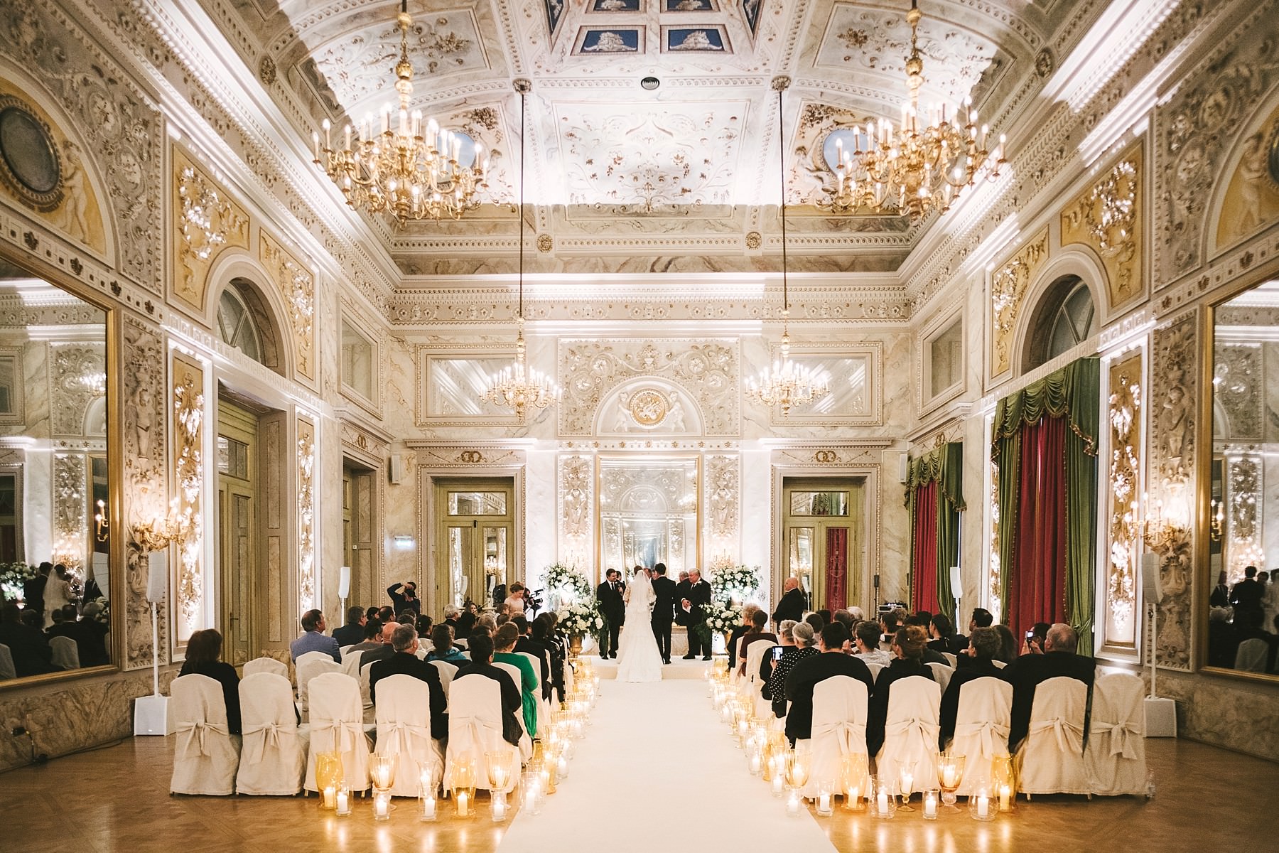 Lovely destination wedding ceremony at luxury hotel St. Regis Florence into Sala delle Feste ballroom. Photo by the Italian elegant and modern wedding photographer in Tuscany based Florence Gabriele Fani