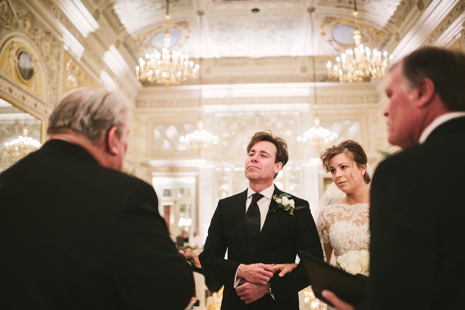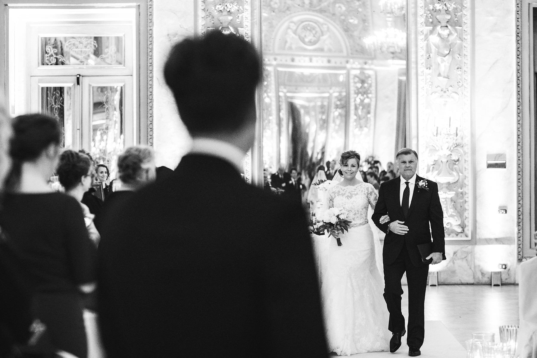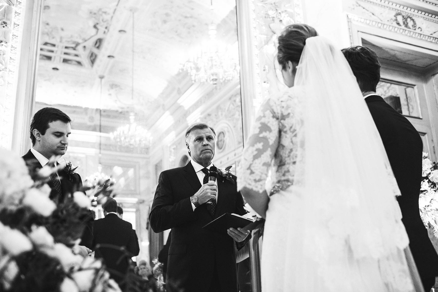 Lovely destination wedding ceremony at luxury hotel St. Regis Florence into Sala delle Feste ballroom. Photo by the Italian elegant and modern wedding photographer in Tuscany based Florence Gabriele Fani