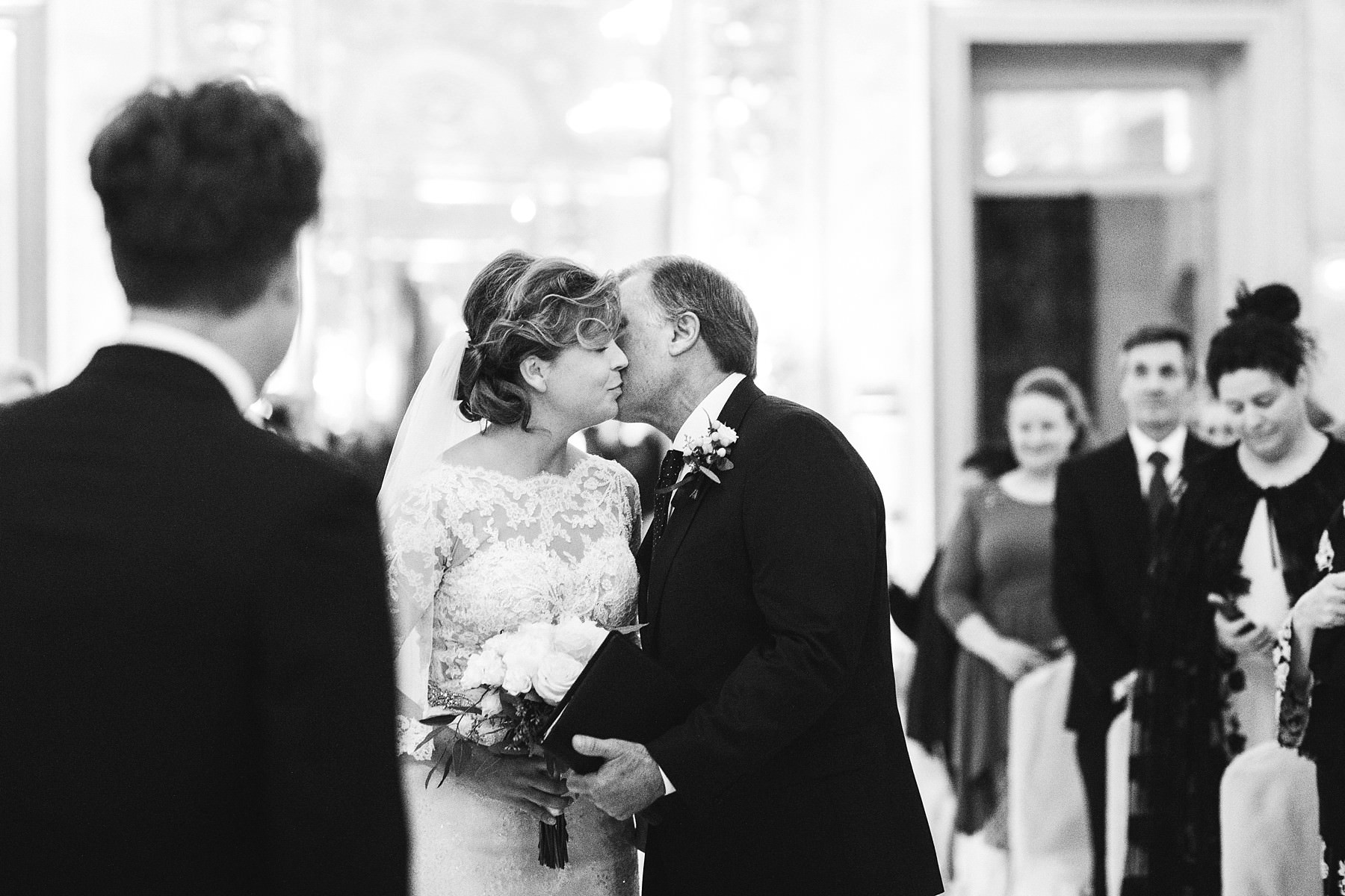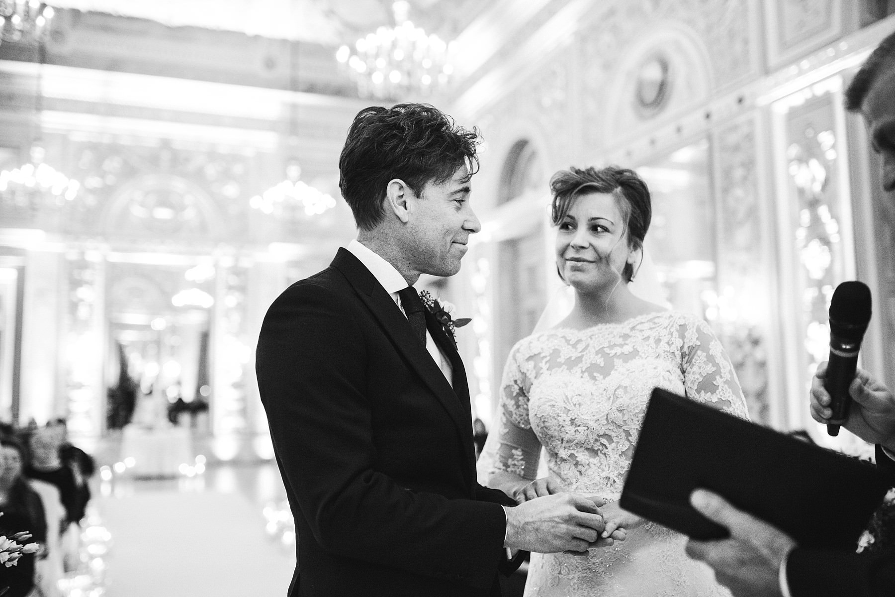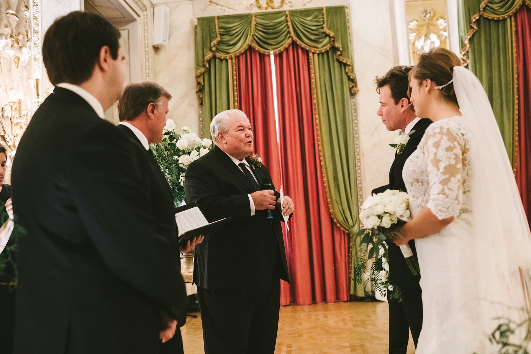 Gorgeous intimate destination wedding ceremony in Florence at Hotel St. Regis at Sala delle Feste ballroom. Photo by the Italian elegant and modern wedding photographer in Tuscany based Florence Gabriele Fani