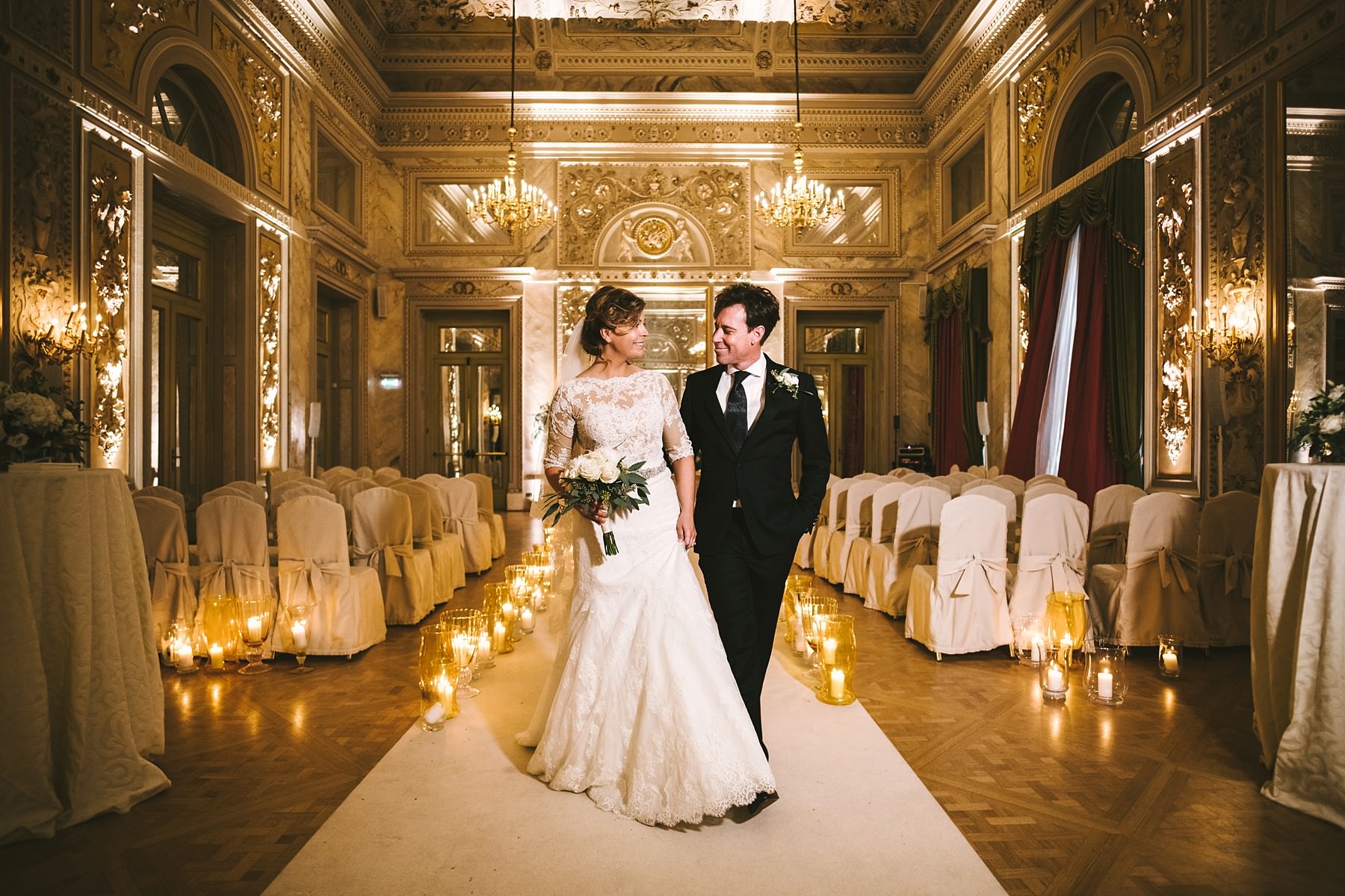 Bride and groom wedding photo into luxury hotel St. Regis Florence at Sala delle Feste Ballroom. Photo by the Italian elegant and modern wedding photographer in Tuscany based Florence Gabriele Fani