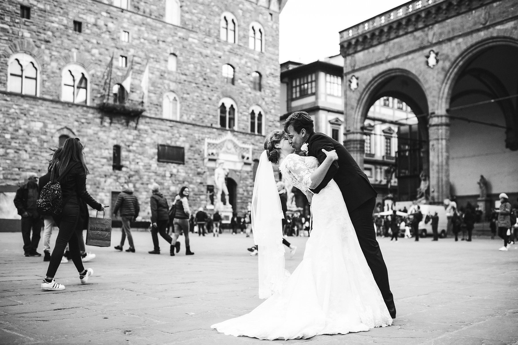 Lacey had seen my previous photos online, so she knew exactly where she wanted the pictures of her wedding day to be shot. We moved to the heart of the city and we used its best spots as a background for gorgeous photographs: the Uffizi Gallery, Ponte Vecchio and Palazzo Vecchio – everything the bride asked for!