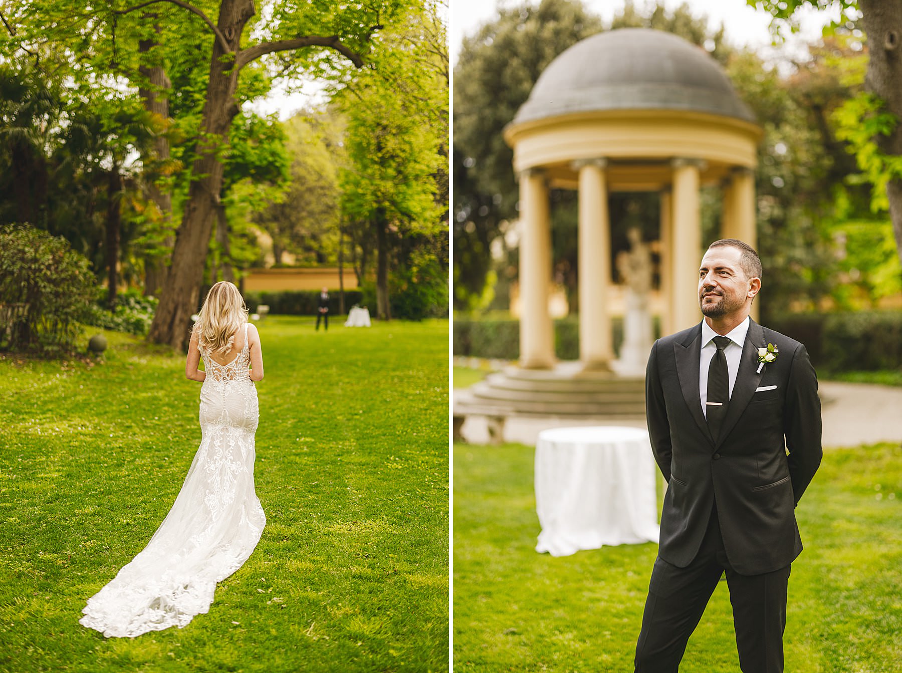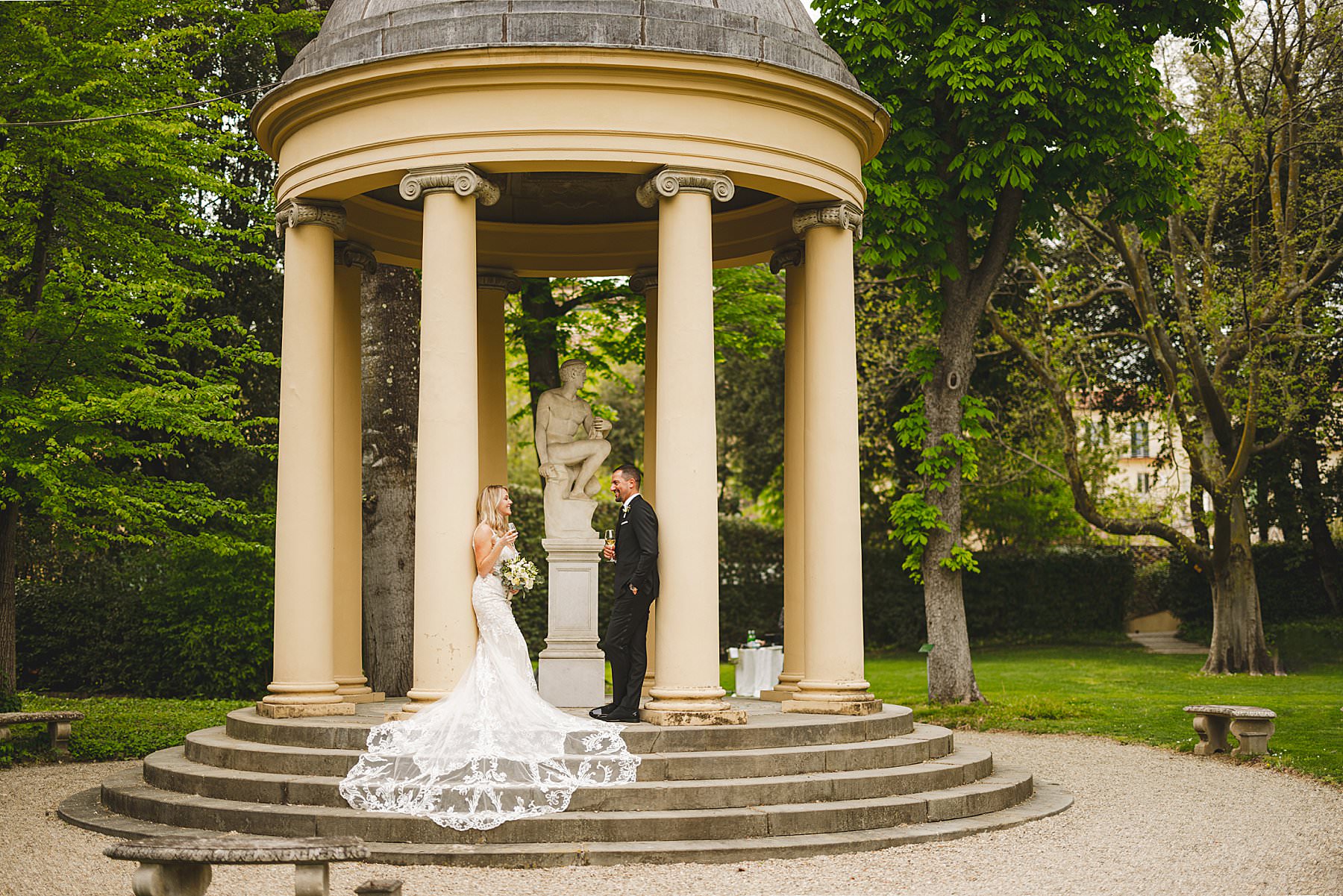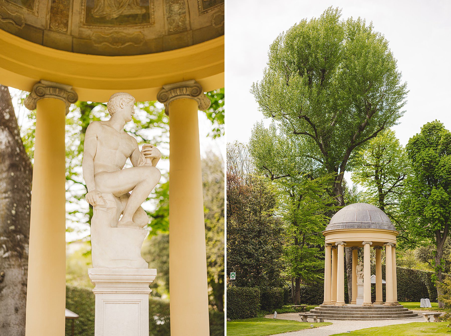 We started our photo shooting right before the ceremony, with some portraits at the Tempio Lawn, with its little and picturesque temple surrounded by lush greenery and centuries-old trees.