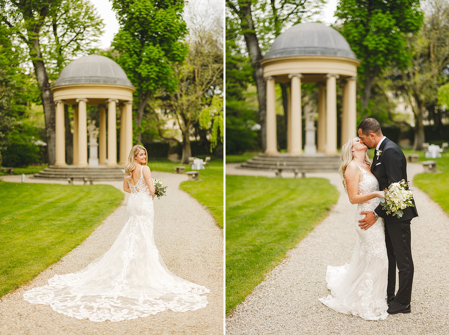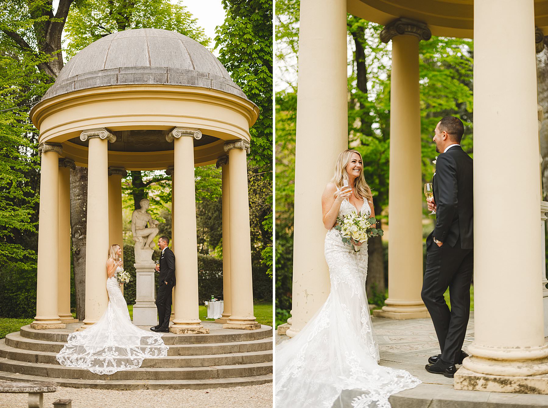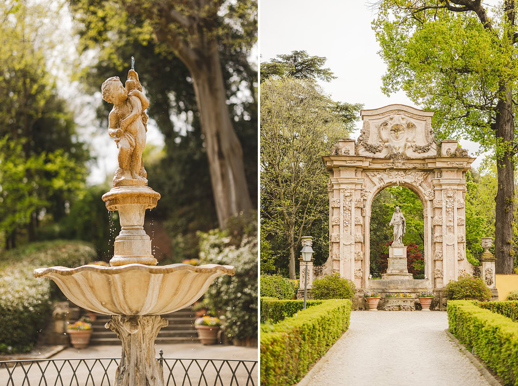 We started our photo shooting right before the ceremony, with some portraits at the Tempio Lawn, with its little and picturesque temple surrounded by lush greenery and centuries-old trees.