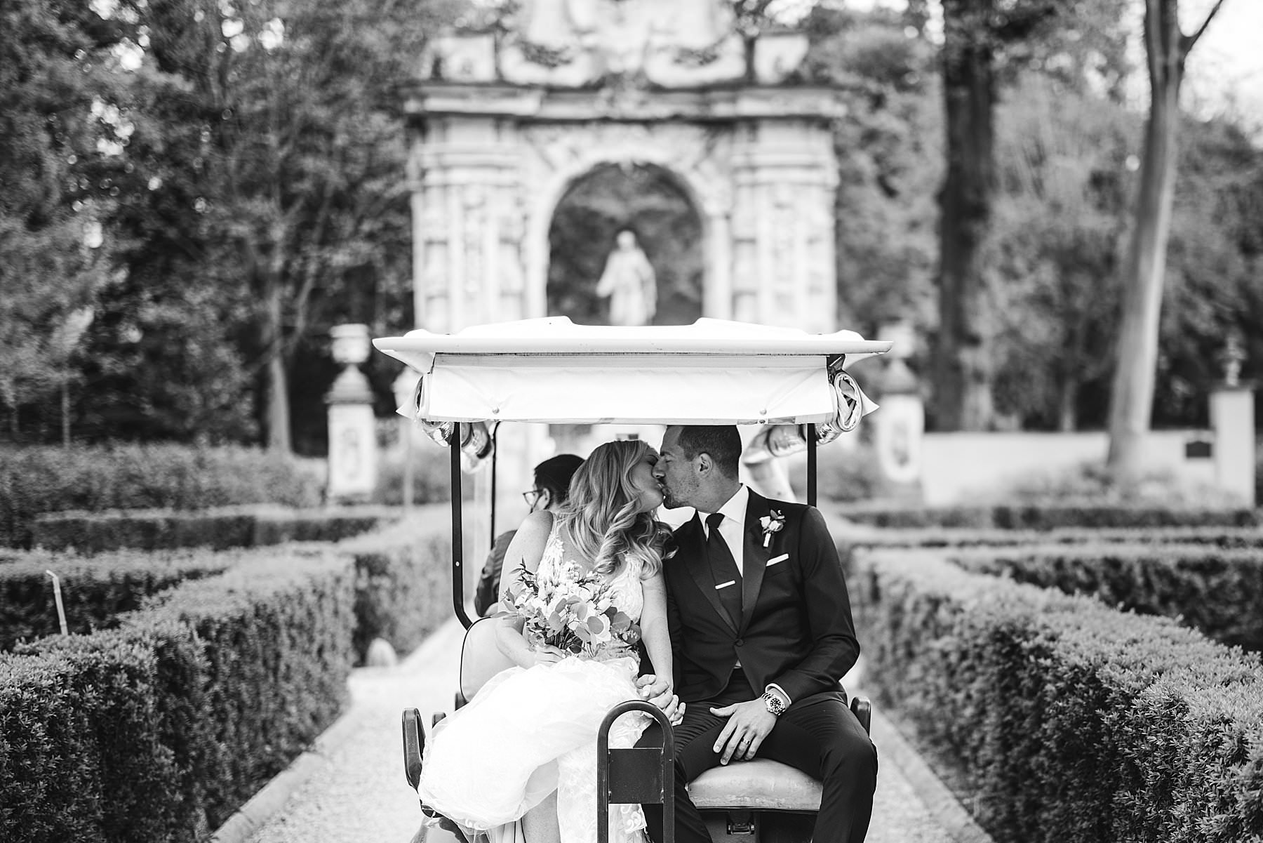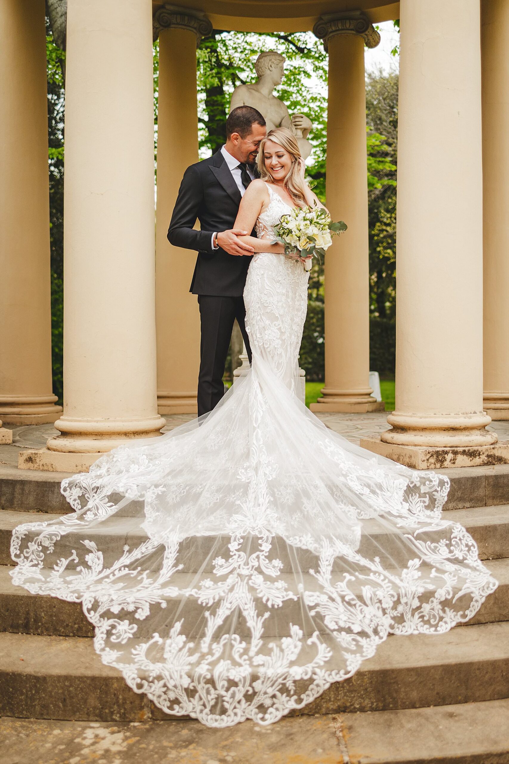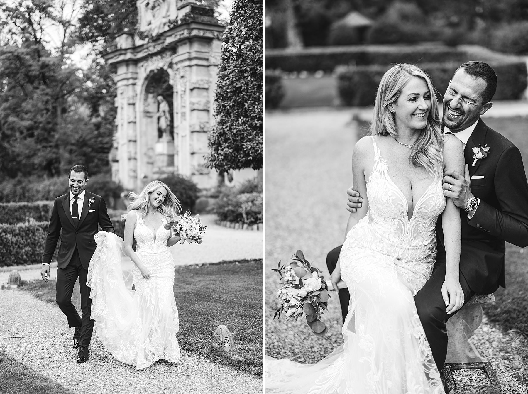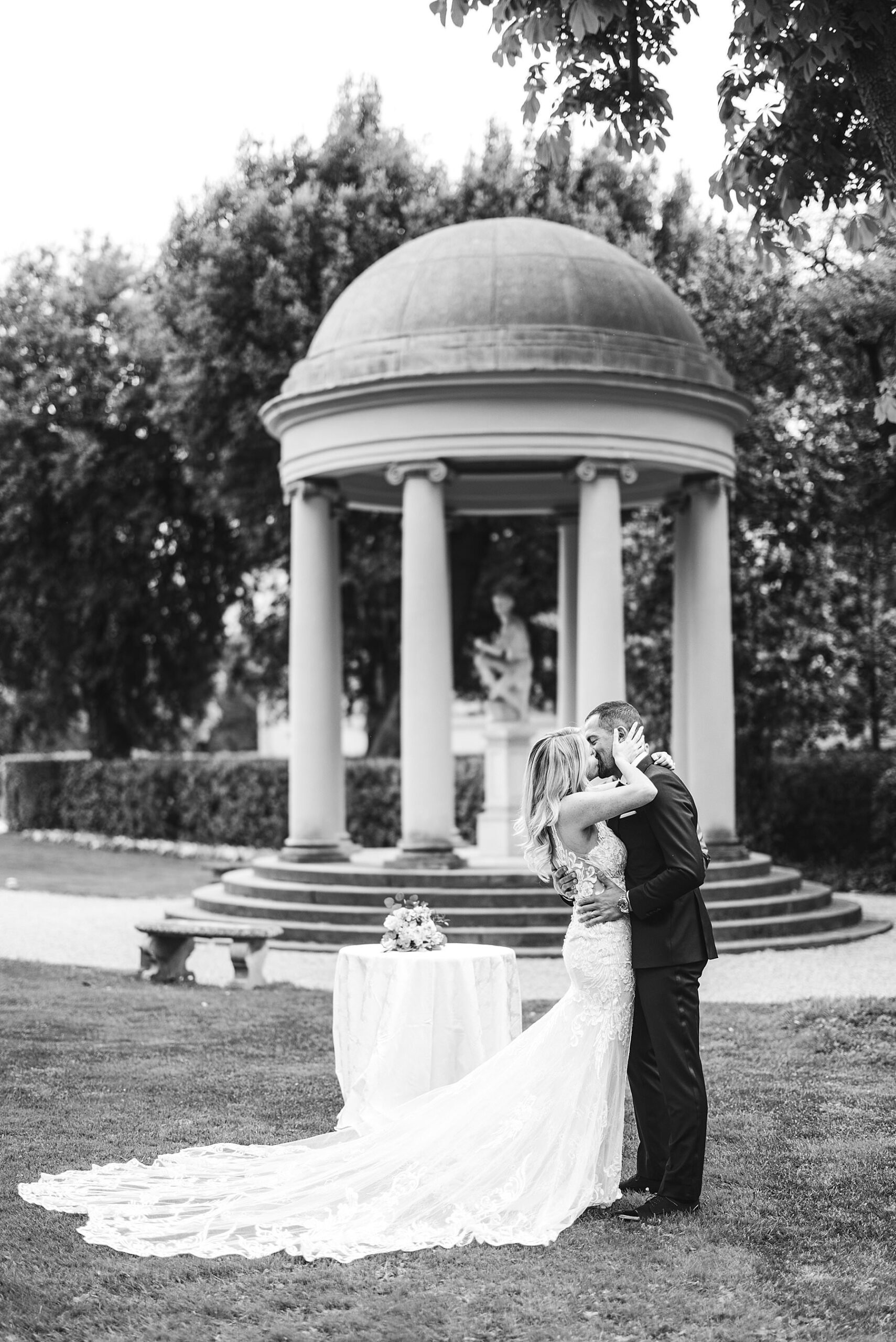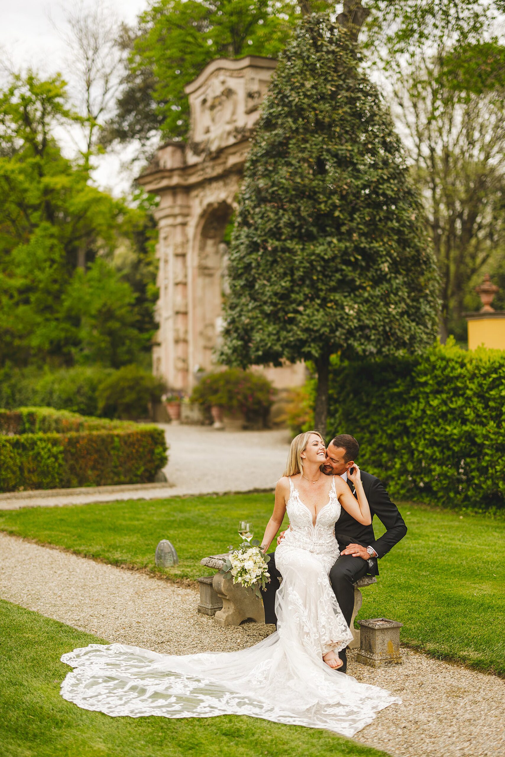 Bride and groom wedding photo from the romantic park of Four Seasons Florence. Photo by the Italian elopement photographer in Tuscany based Florence Gabriele Fani.