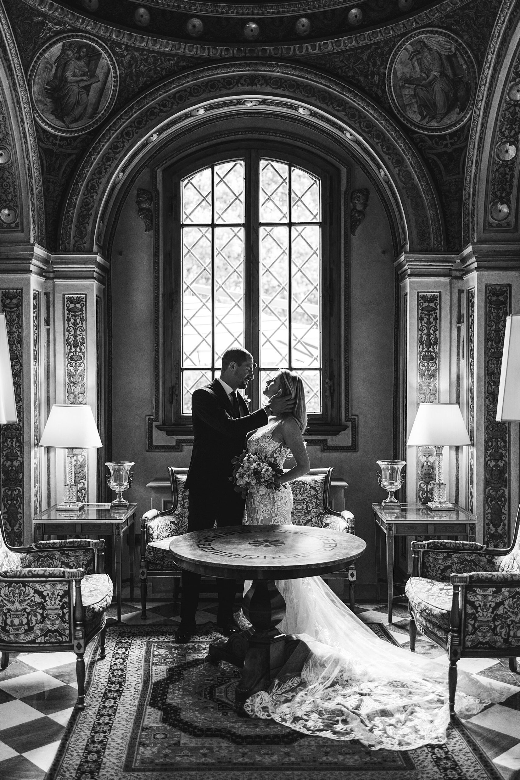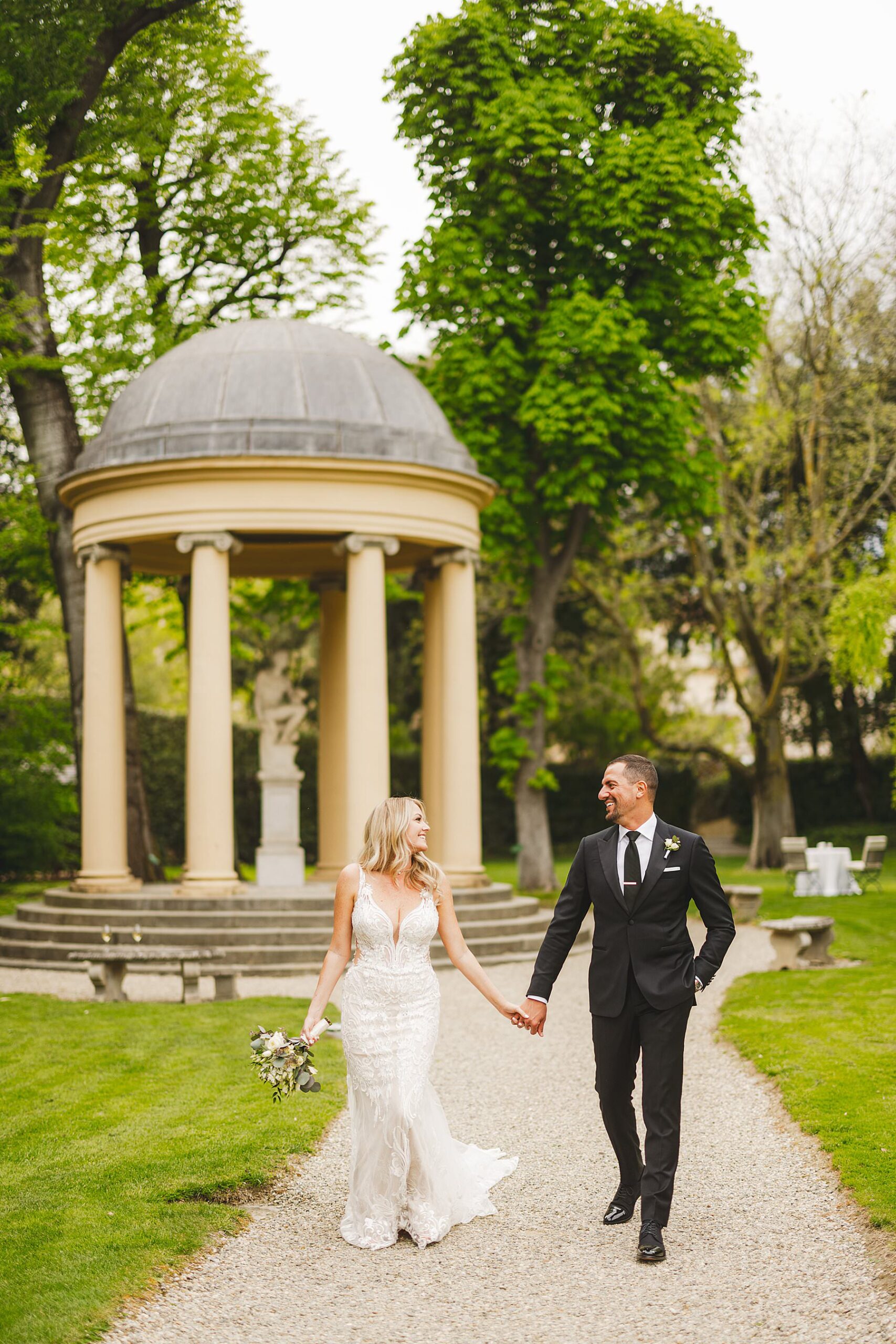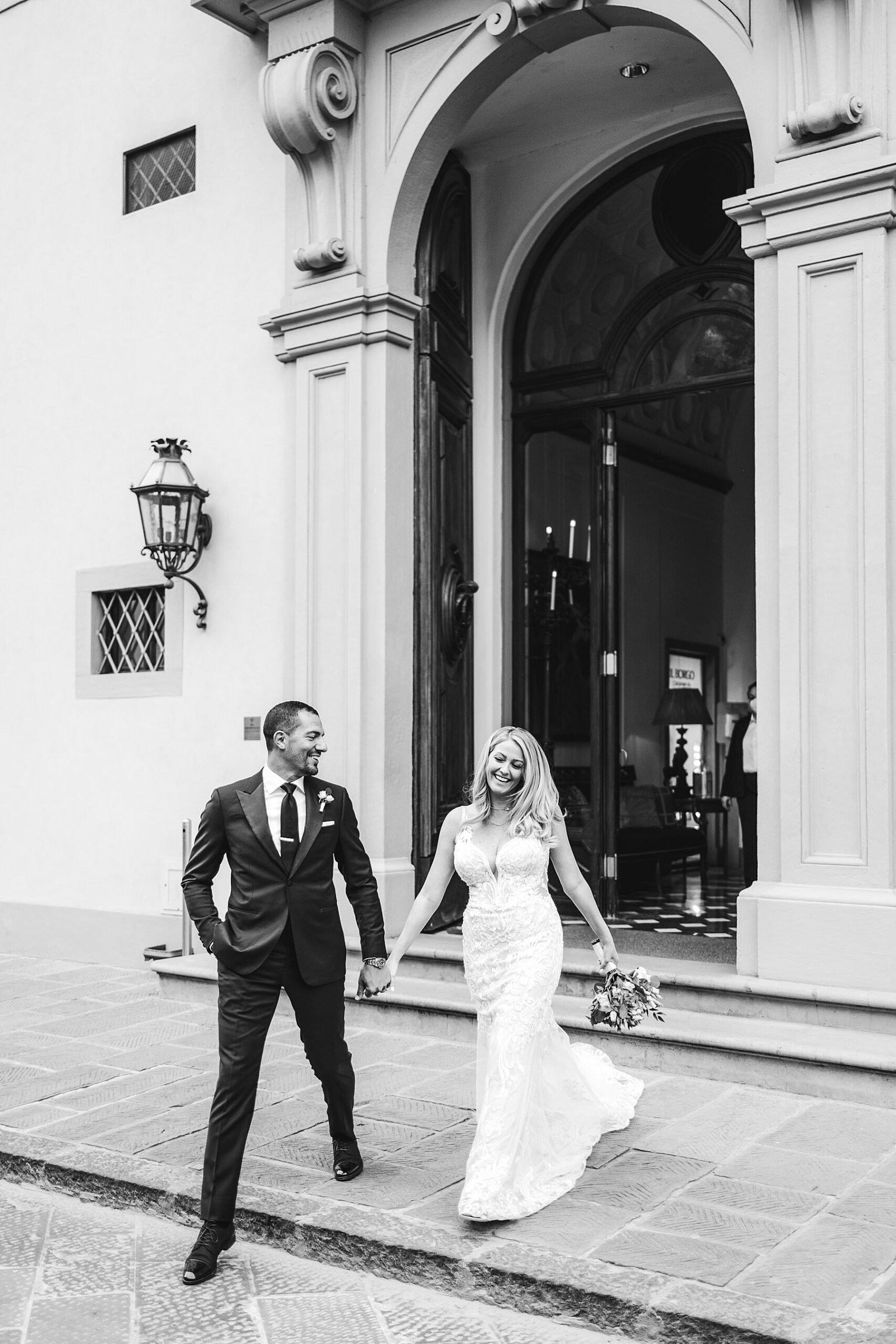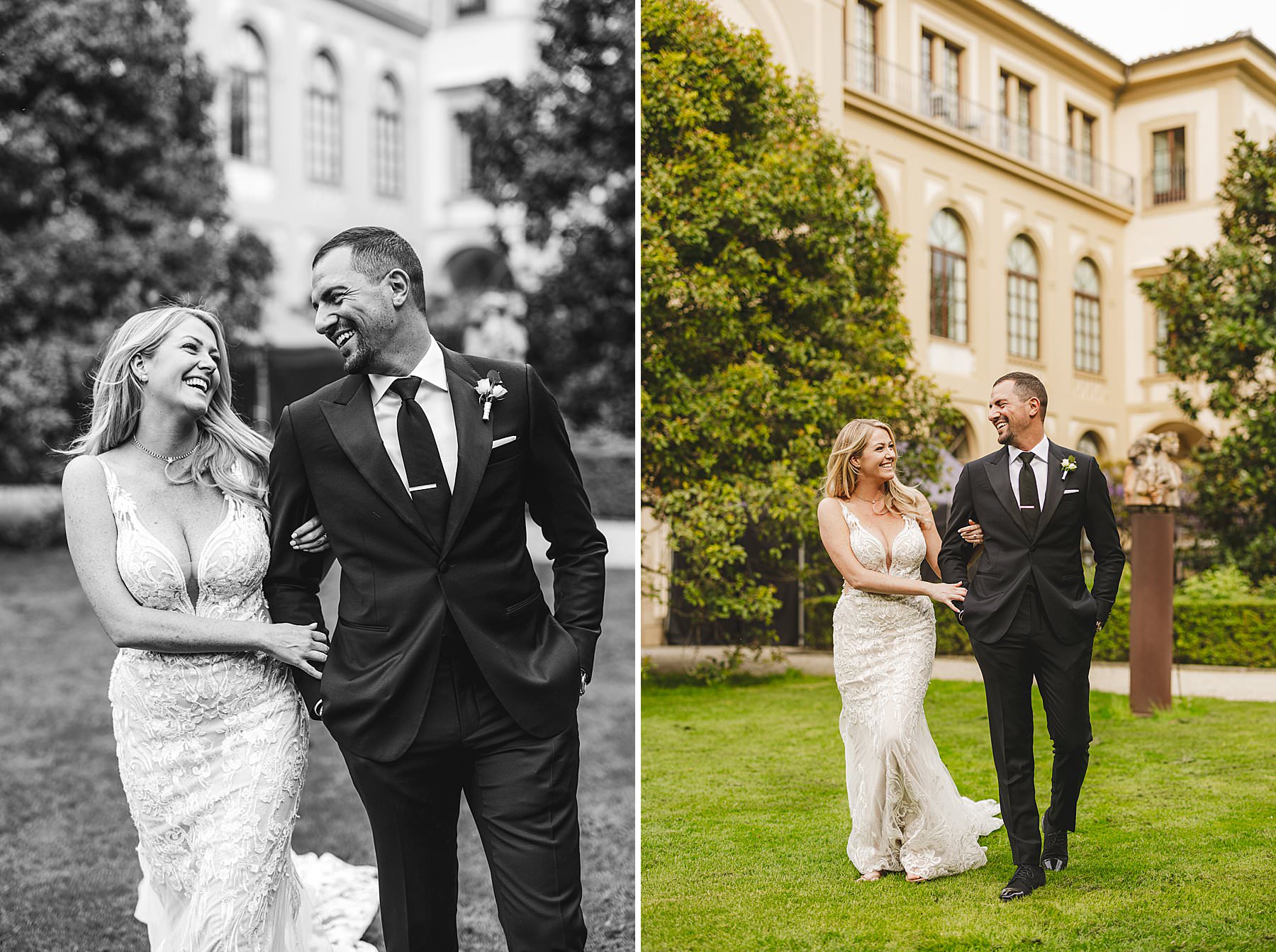 After the short but touching ritual, the newlyweds honored their love with a toast. Then their wedding at the Four Season continued with a sequence of photographs shot all around the property – which offers countless different scenarios. From the romantic park to the little chapel in the lobby of the Palace, from the lavish Gherardesca Ballroom to the refined foyer. Everything, at the Four Seasons Florence, speaks about Renaissance, and both the interiors and outdoor spaces convey an unparalleled touch to the pictures set in such a precious venue.