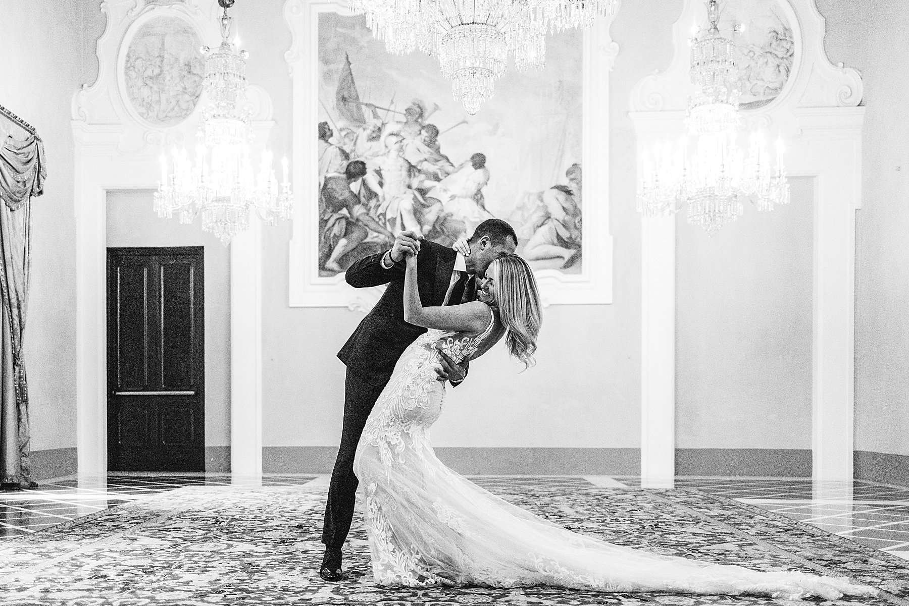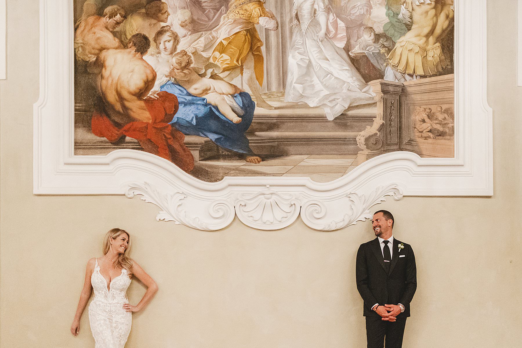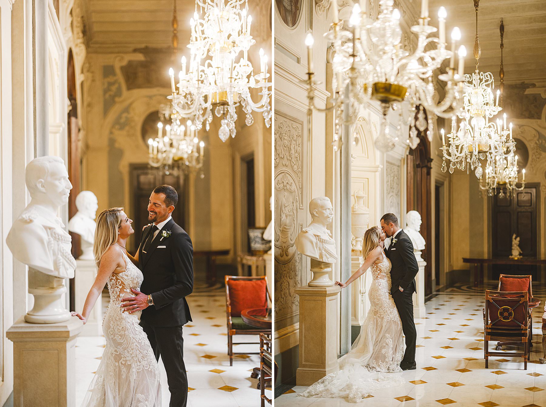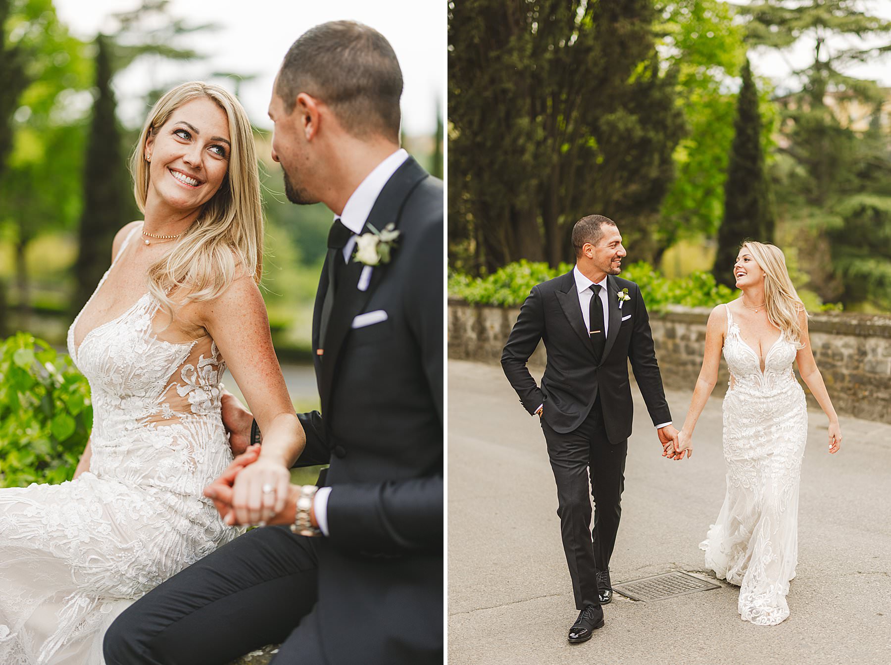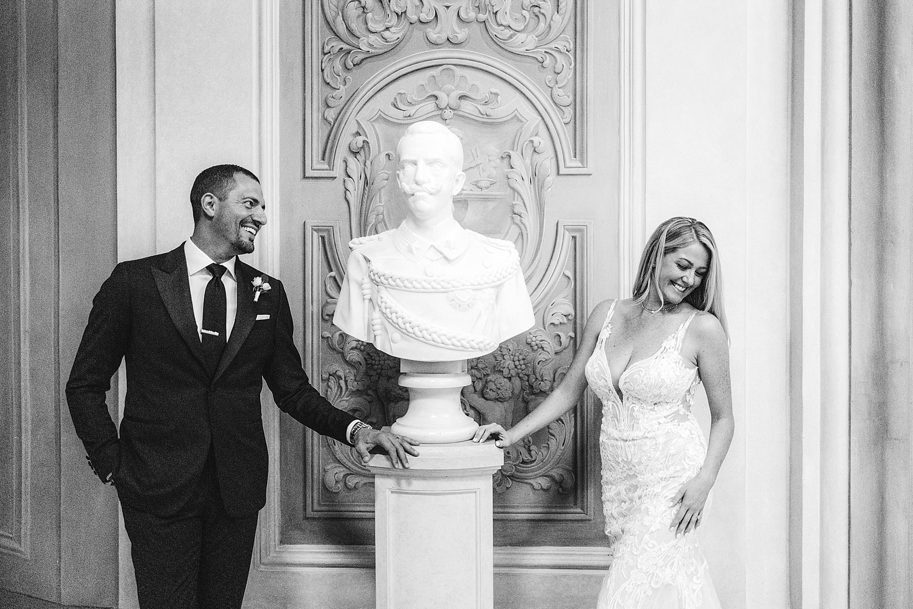 After the short but touching ritual, the newlyweds honored their love with a toast. Then their wedding at the Four Season continued with a sequence of photographs shot all around the property – which offers countless different scenarios. From the romantic park to the little chapel in the lobby of the Palace, from the lavish Gherardesca Ballroom to the refined foyer. Everything, at the Four Seasons Florence, speaks about Renaissance, and both the interiors and outdoor spaces convey an unparalleled touch to the pictures set in such a precious venue.