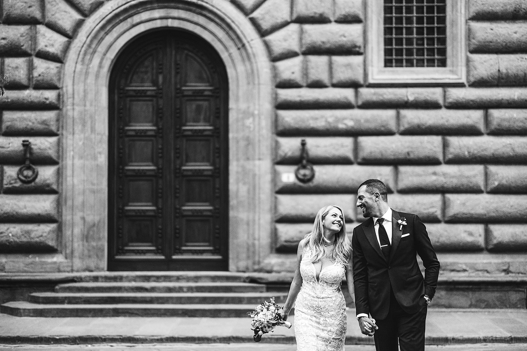 Elegant candid bride and groom elopement photo in the heart of Florence. Photo by the Italian elopement photographer in Tuscany based Florence Gabriele Fani.