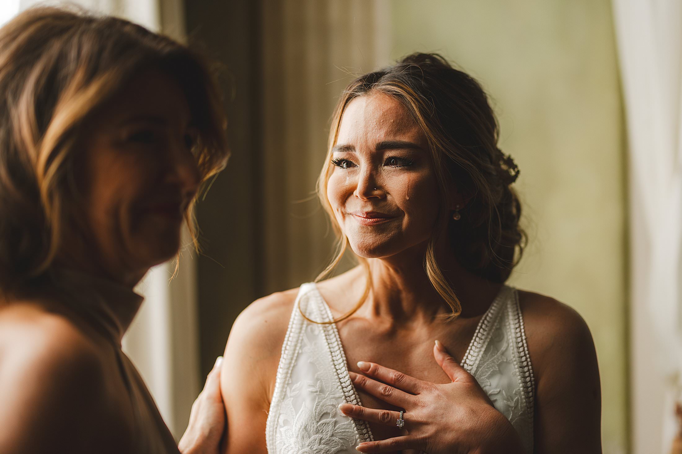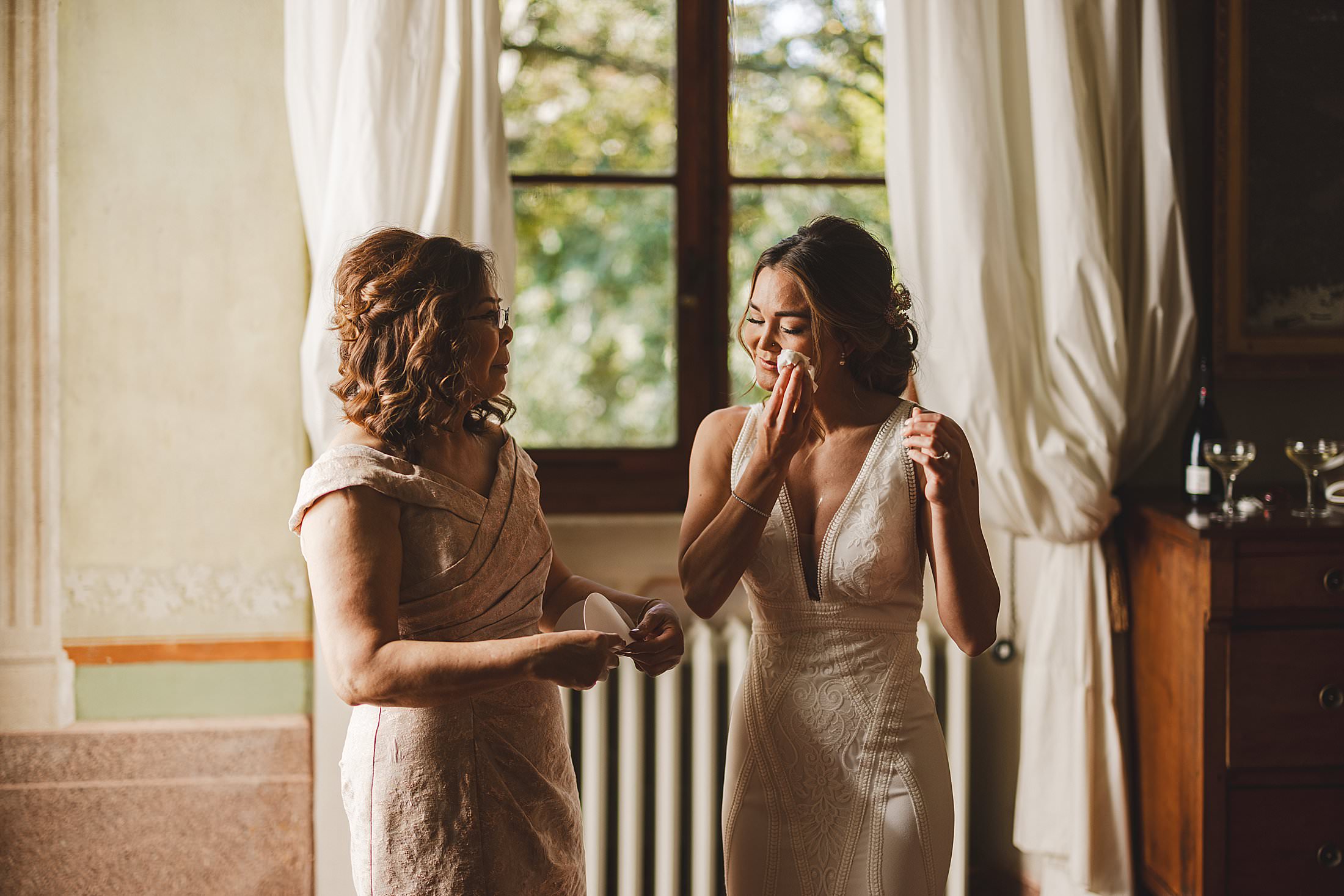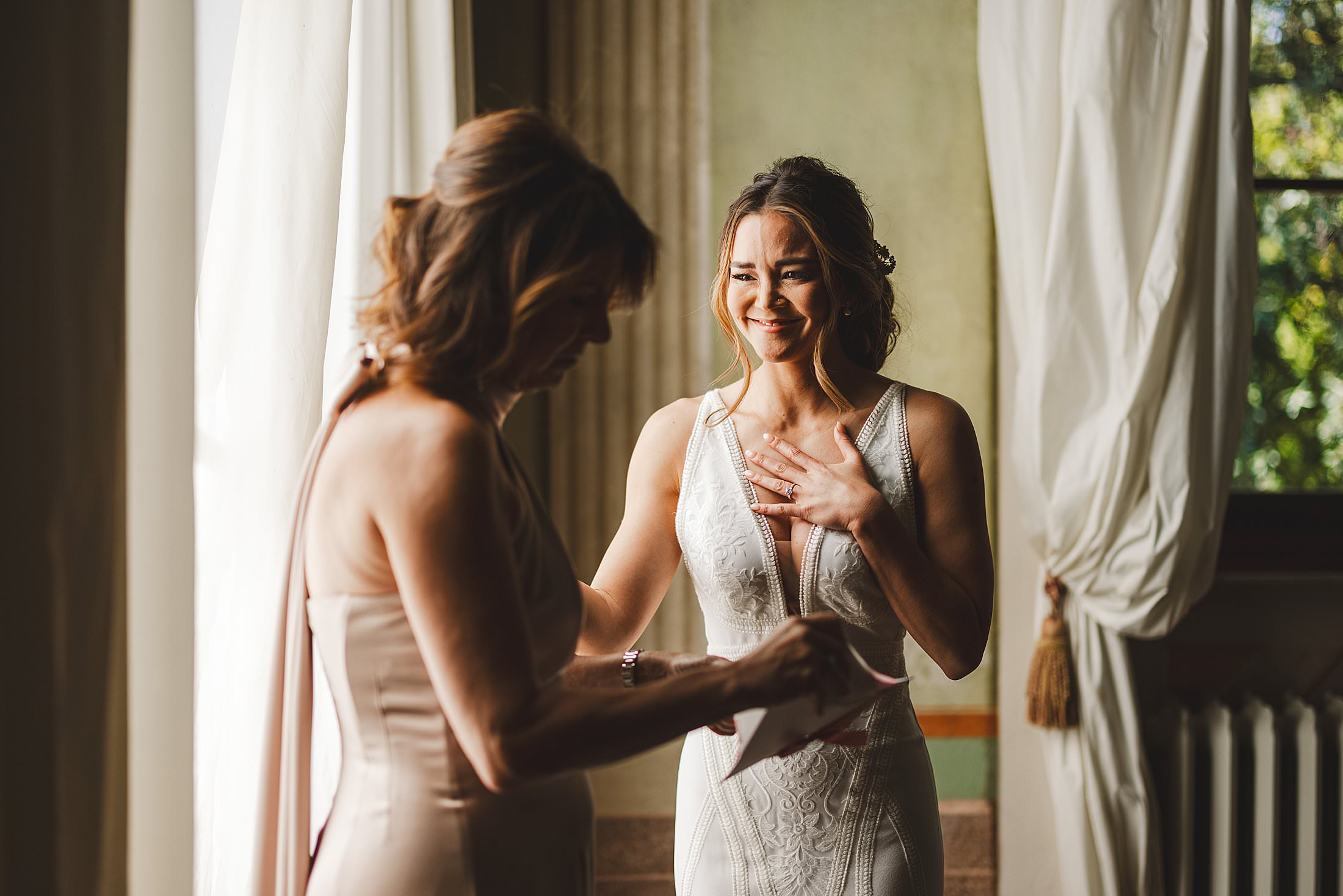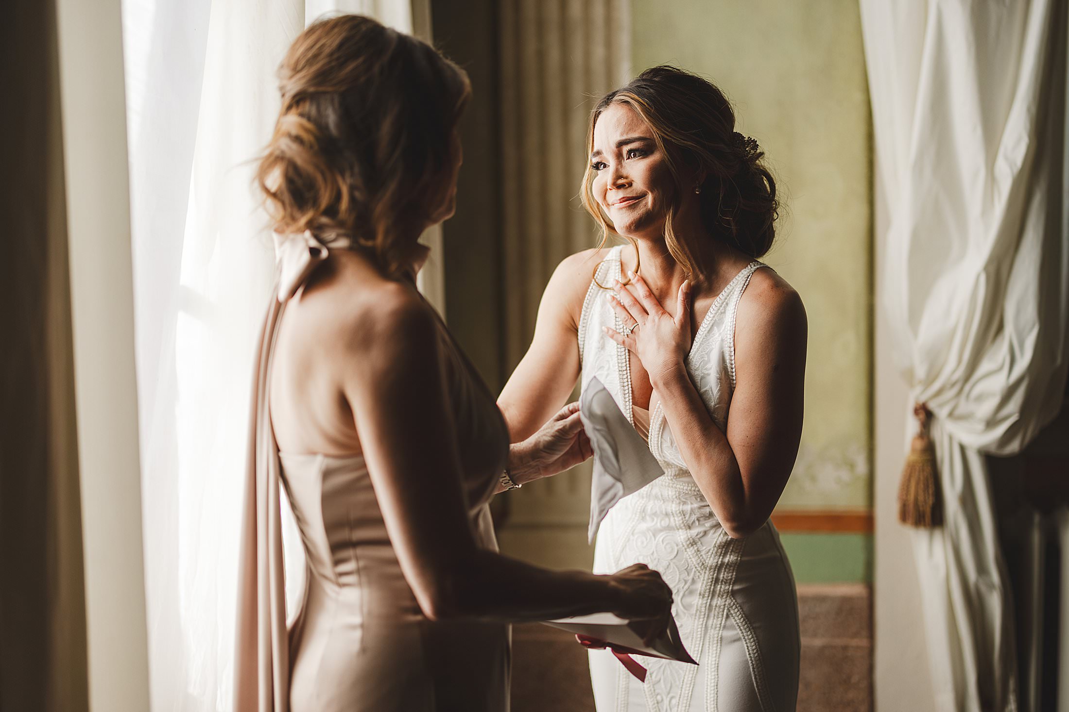 Lovely and emotional moment during a gift exchange with bride couldn’t hold back the tears with her mom. A moment of love and emotion that tells the profound connection between mother and daughter on this special day. Photo by the elegant wedding photographer in Tuscany based Florence Gabriele Fani.