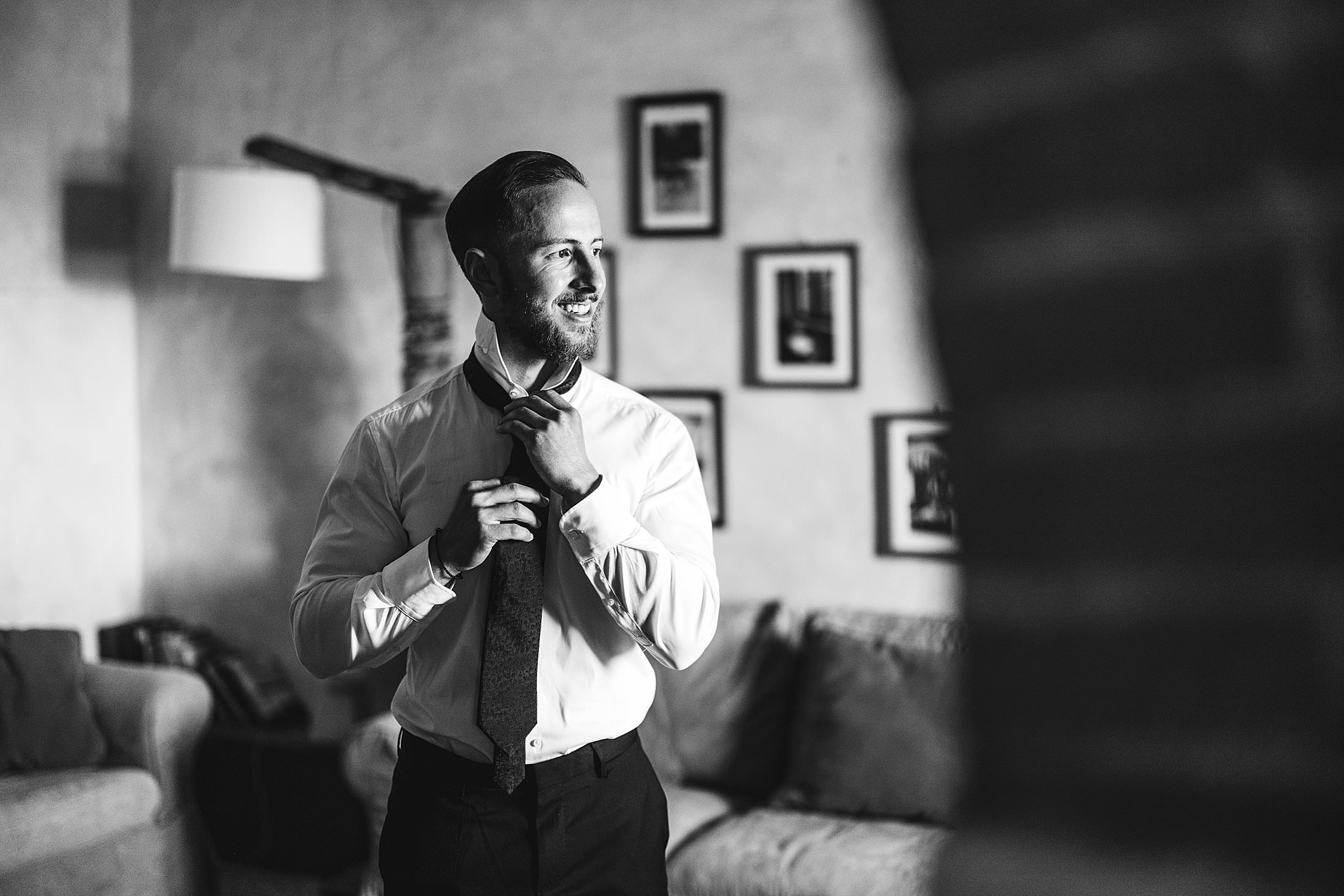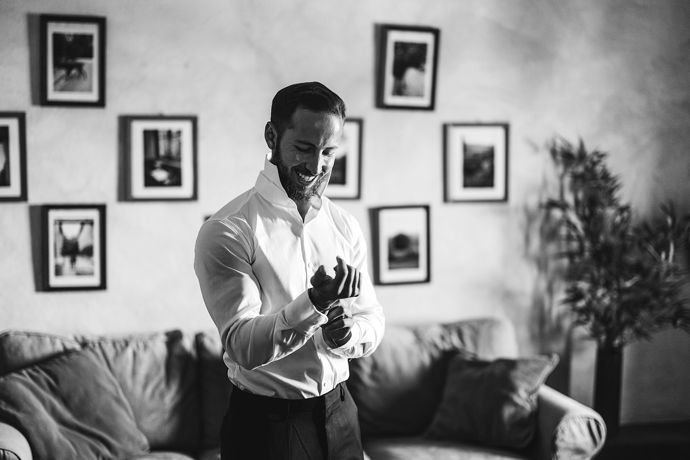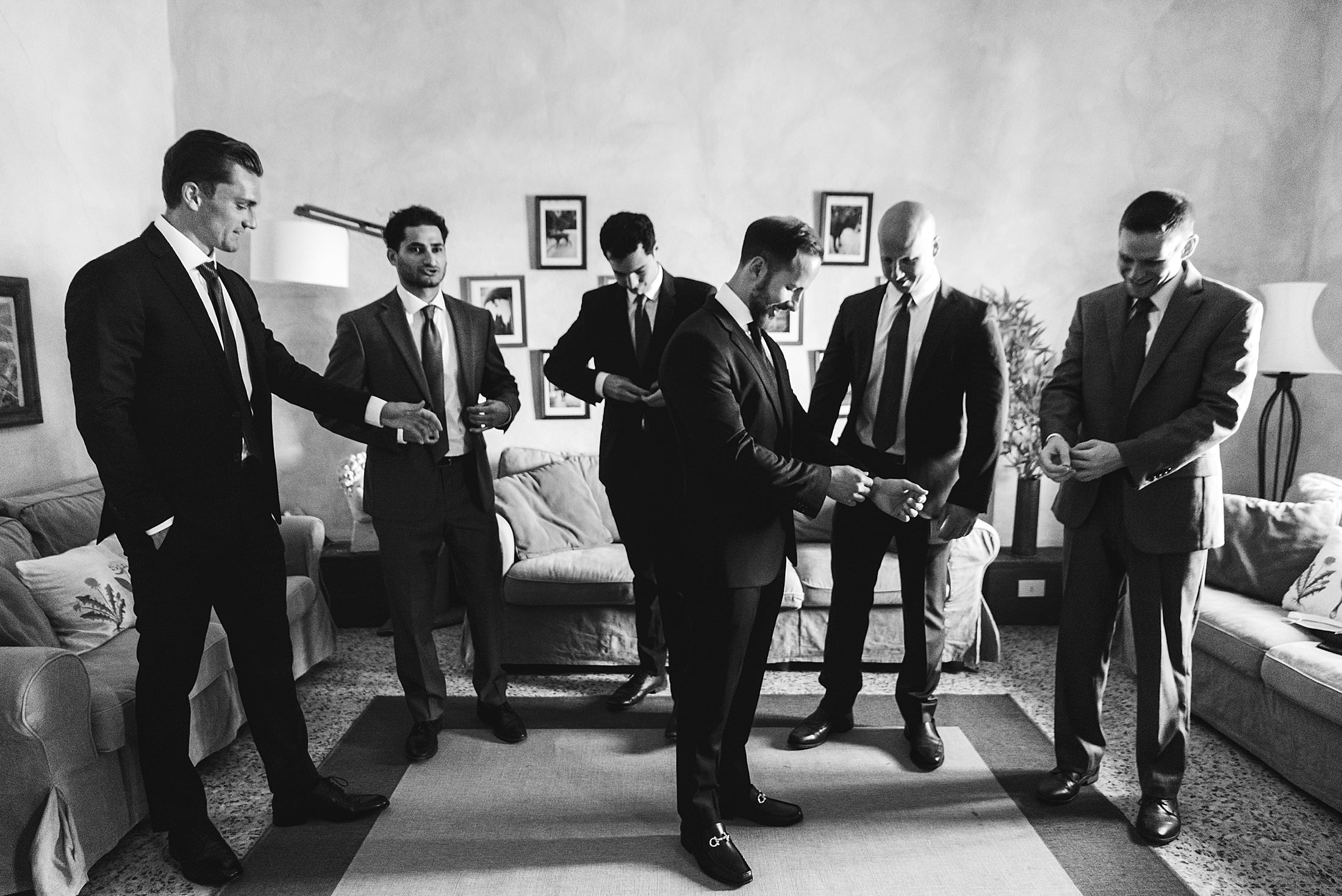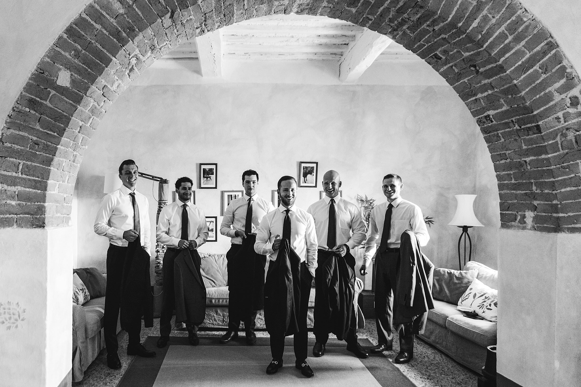 Groom with groomsmens got ready before the ceremony at Borgo Stomennano real wedding. Photo by the elegant wedding photographer in Tuscany based Florence Gabriele Fani.