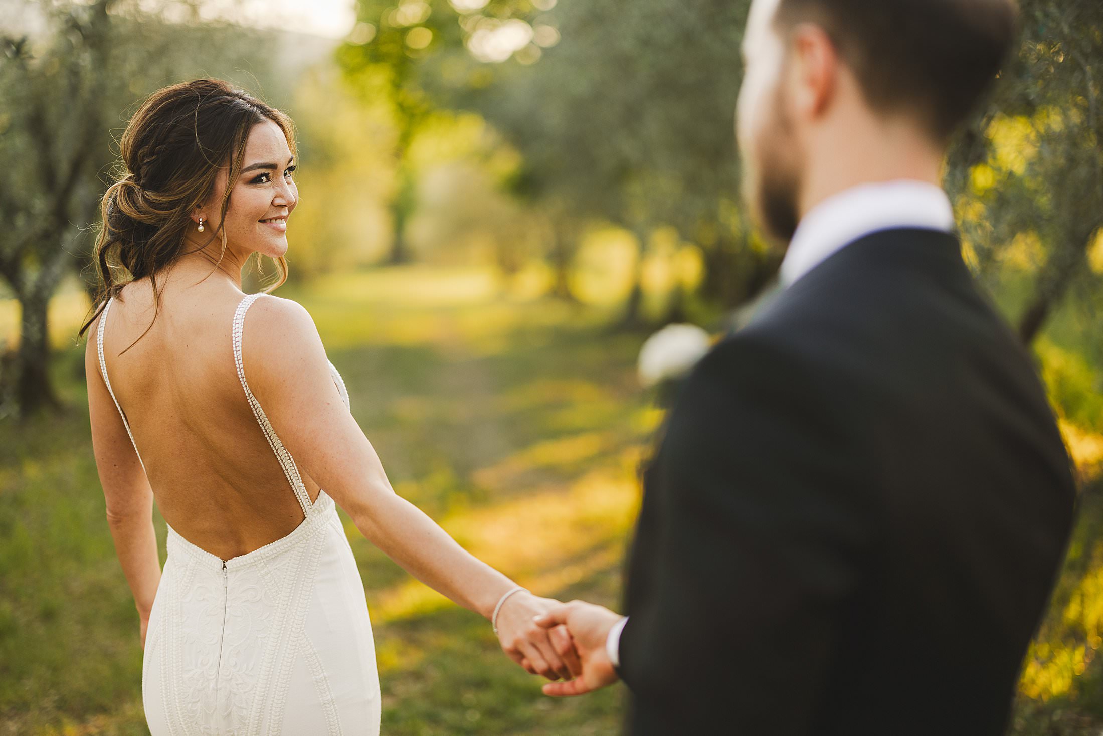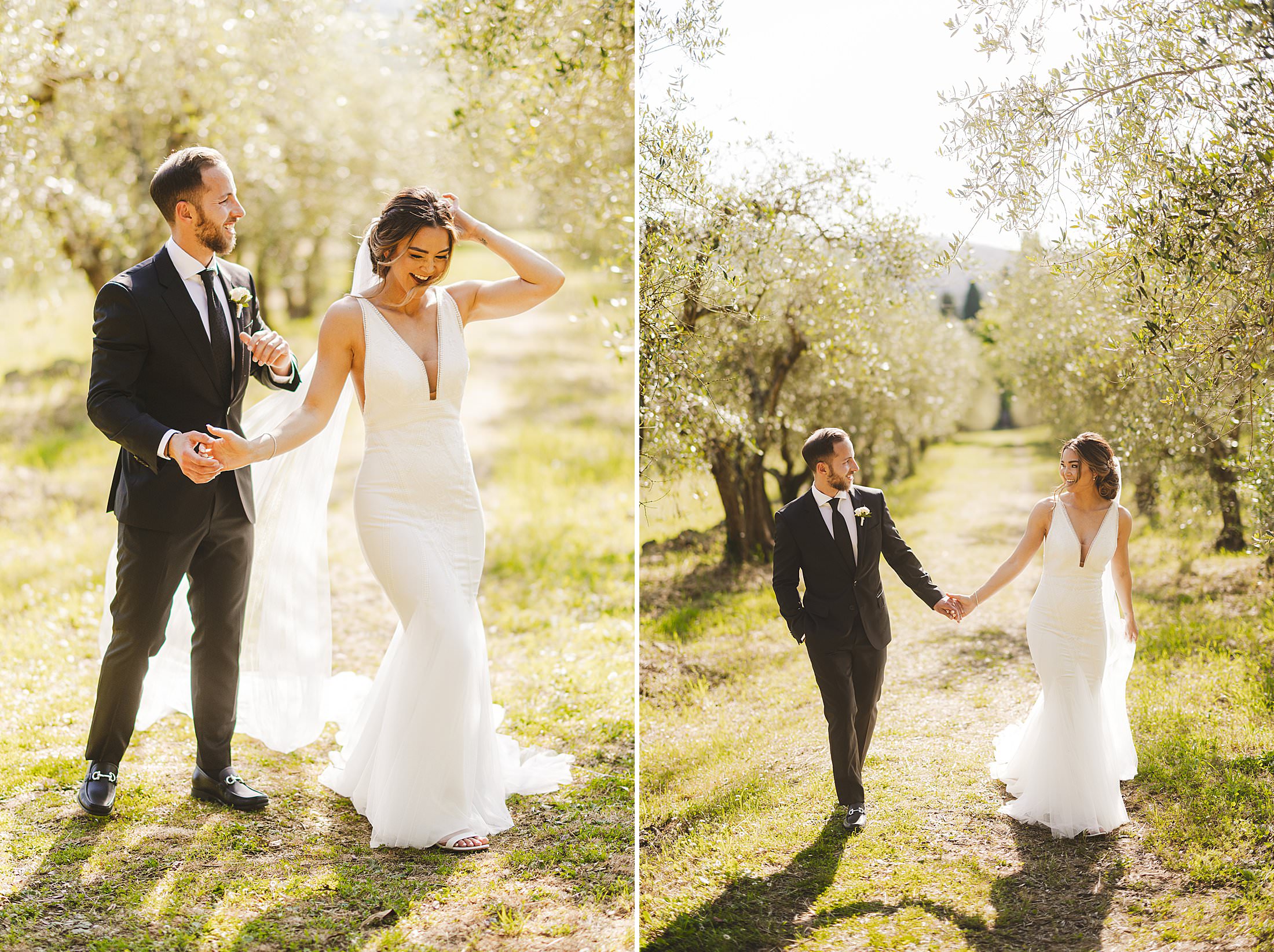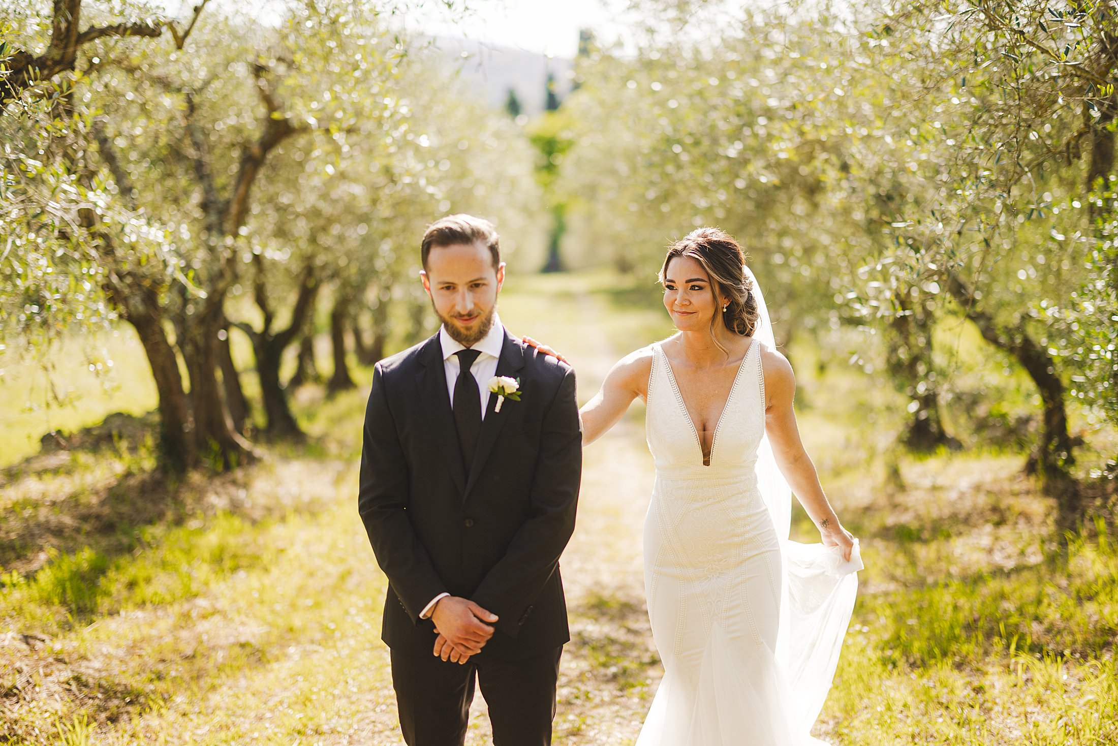 Elegant and unforgettable wedding photo shoot in enchanting olive groves of Borgo Stomennano in the heart of Tuscany. Photo by the elegant wedding photographer in Tuscany based Florence Gabriele Fani.