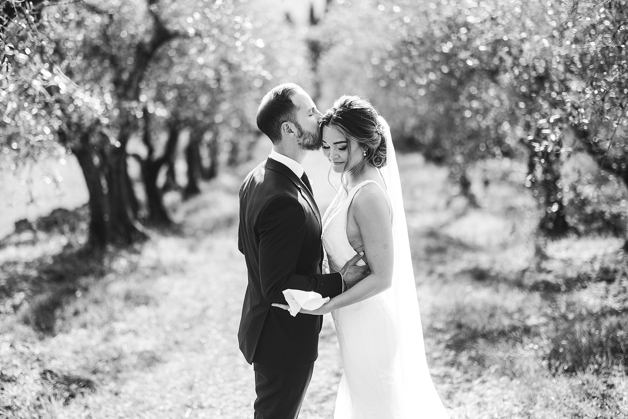 Elegant bride and groom wedding photo in the enchanting olive groves at Borgo Stomennano charming venue. Photo by the elegant wedding photographer in Tuscany based Florence Gabriele Fani.