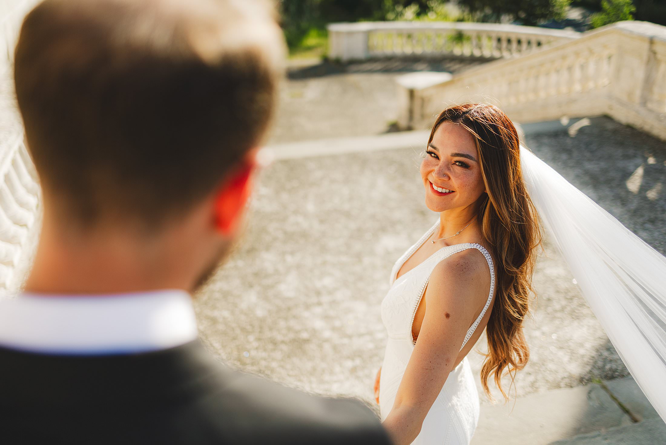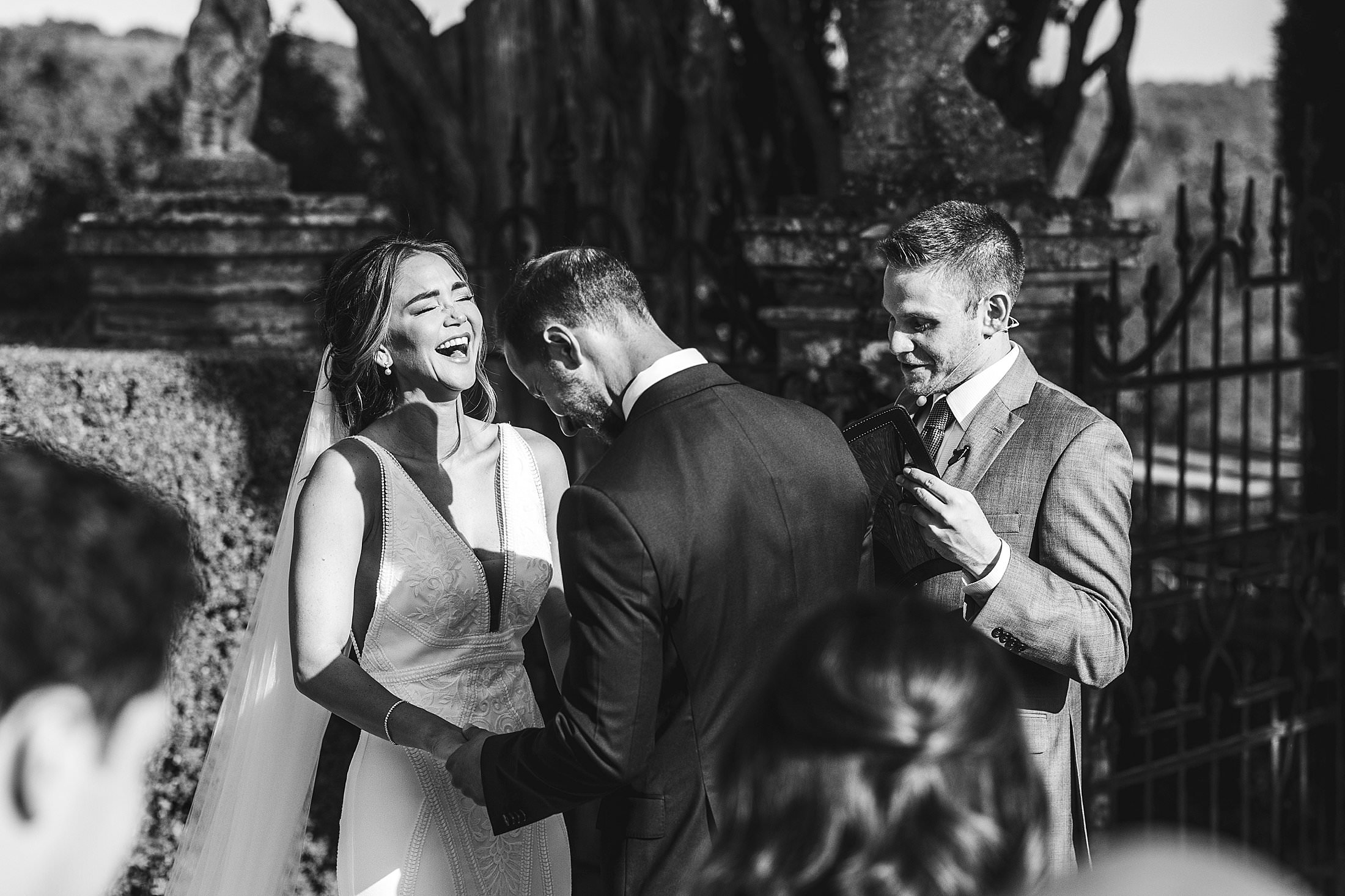 Elegant and exciting bride and groom photo session at Borgo Stomennano destination wedding. Photo by the elegant wedding photographer in Tuscany based Florence Gabriele Fani.
