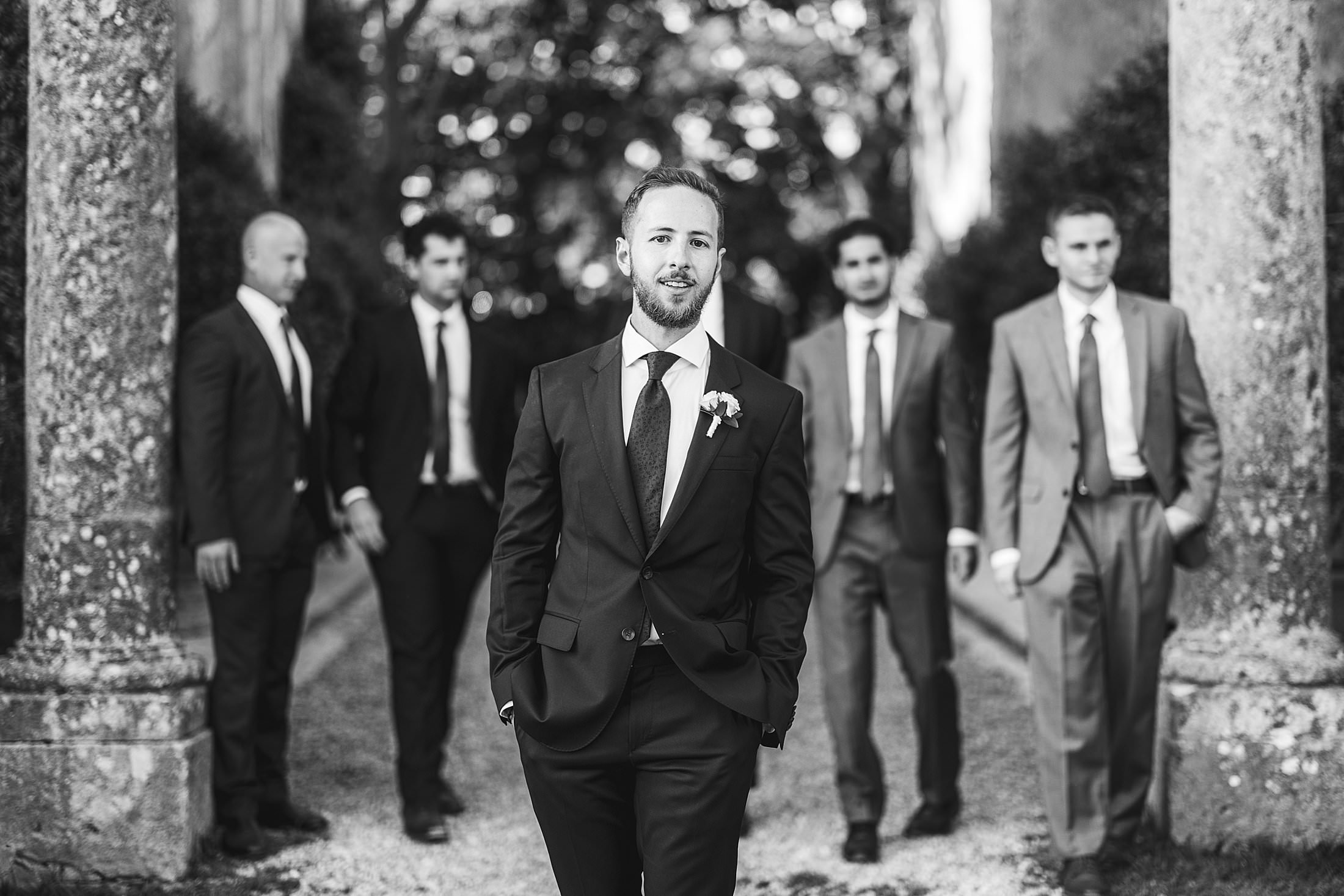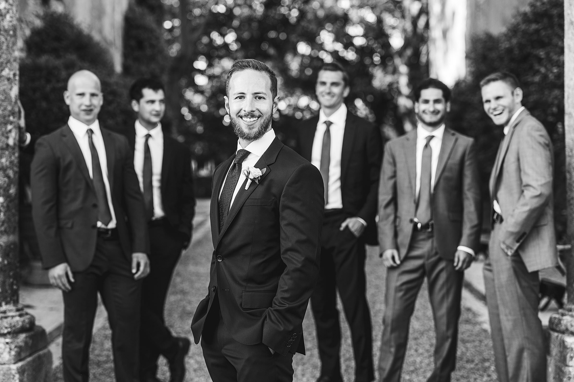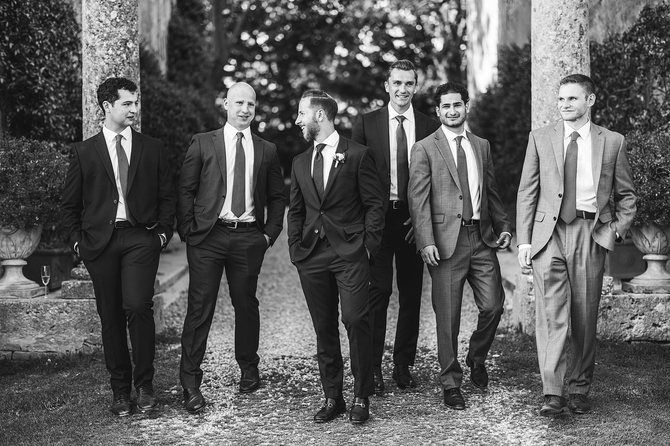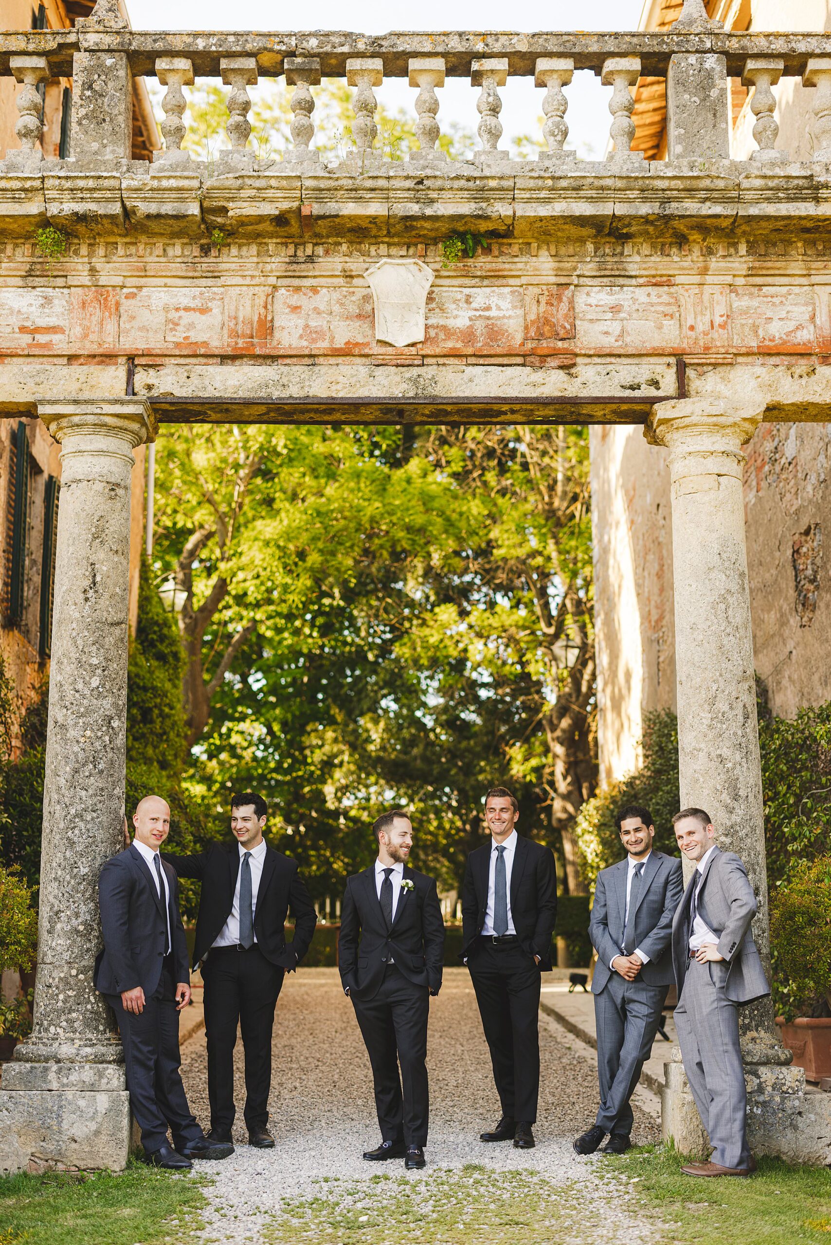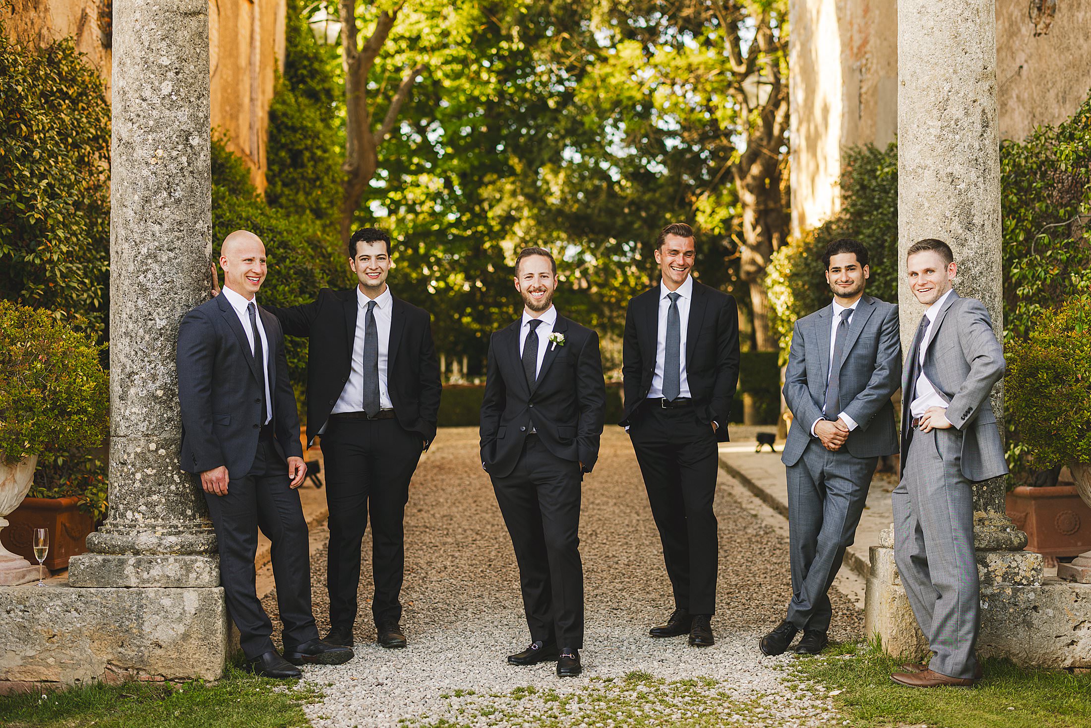 Exciting groom with groomsmens portrait photo at Borgo Stomennano. Photo by the elegant wedding photographer in Tuscany based Florence Gabriele Fani.