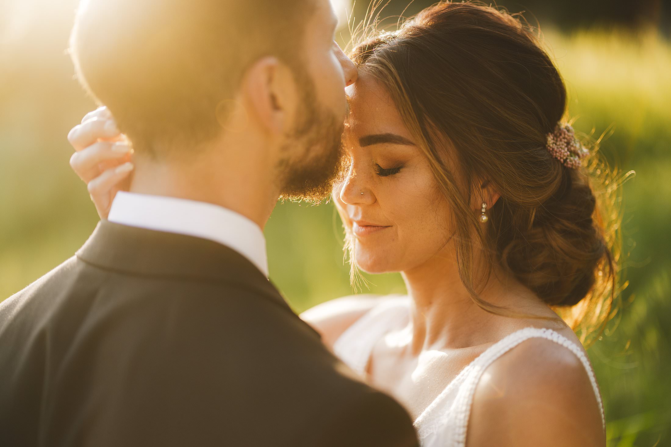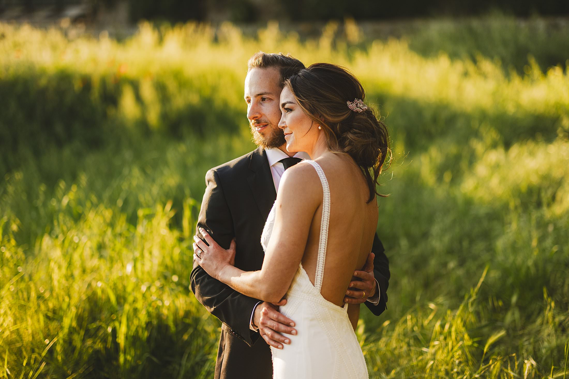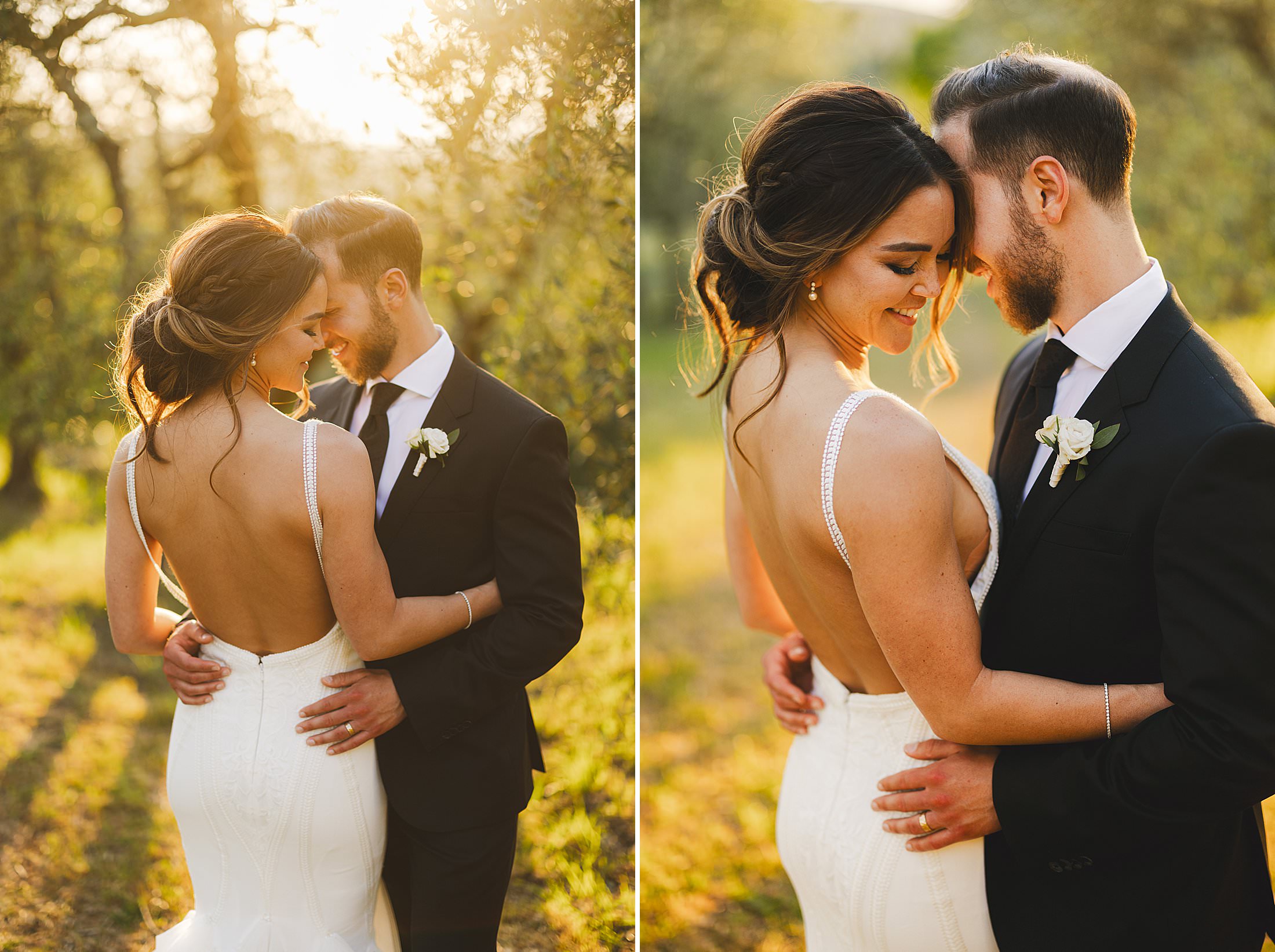 Emotional and spontaneous bride and groom portrait photo at Borgo Stomennano during golden hour. Photo by the elegant wedding photographer in Tuscany based Florence Gabriele Fani.