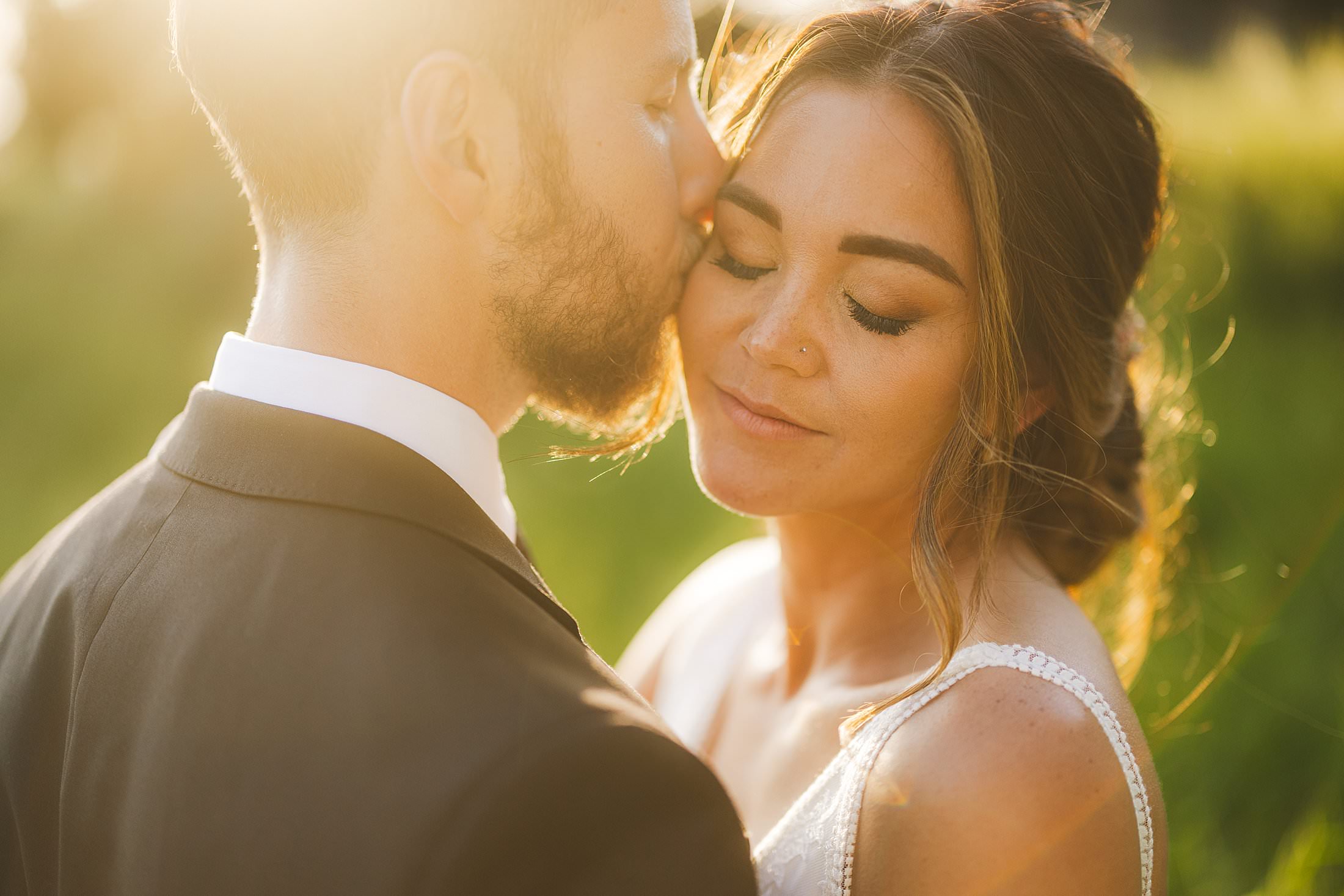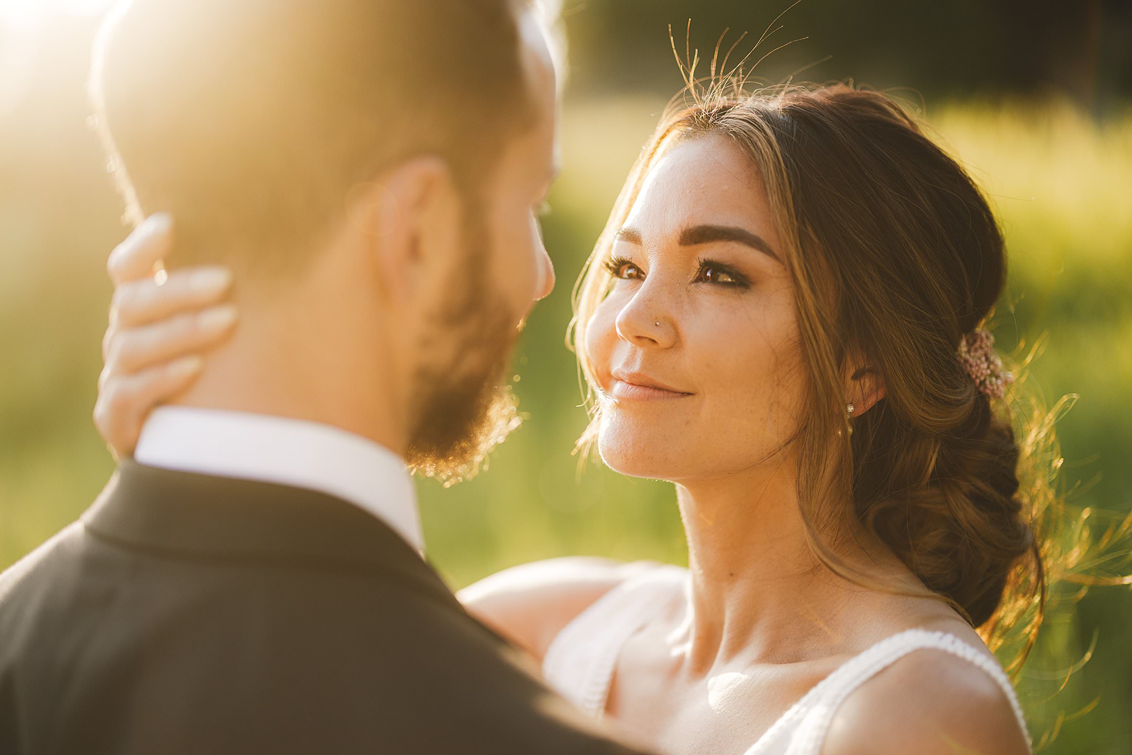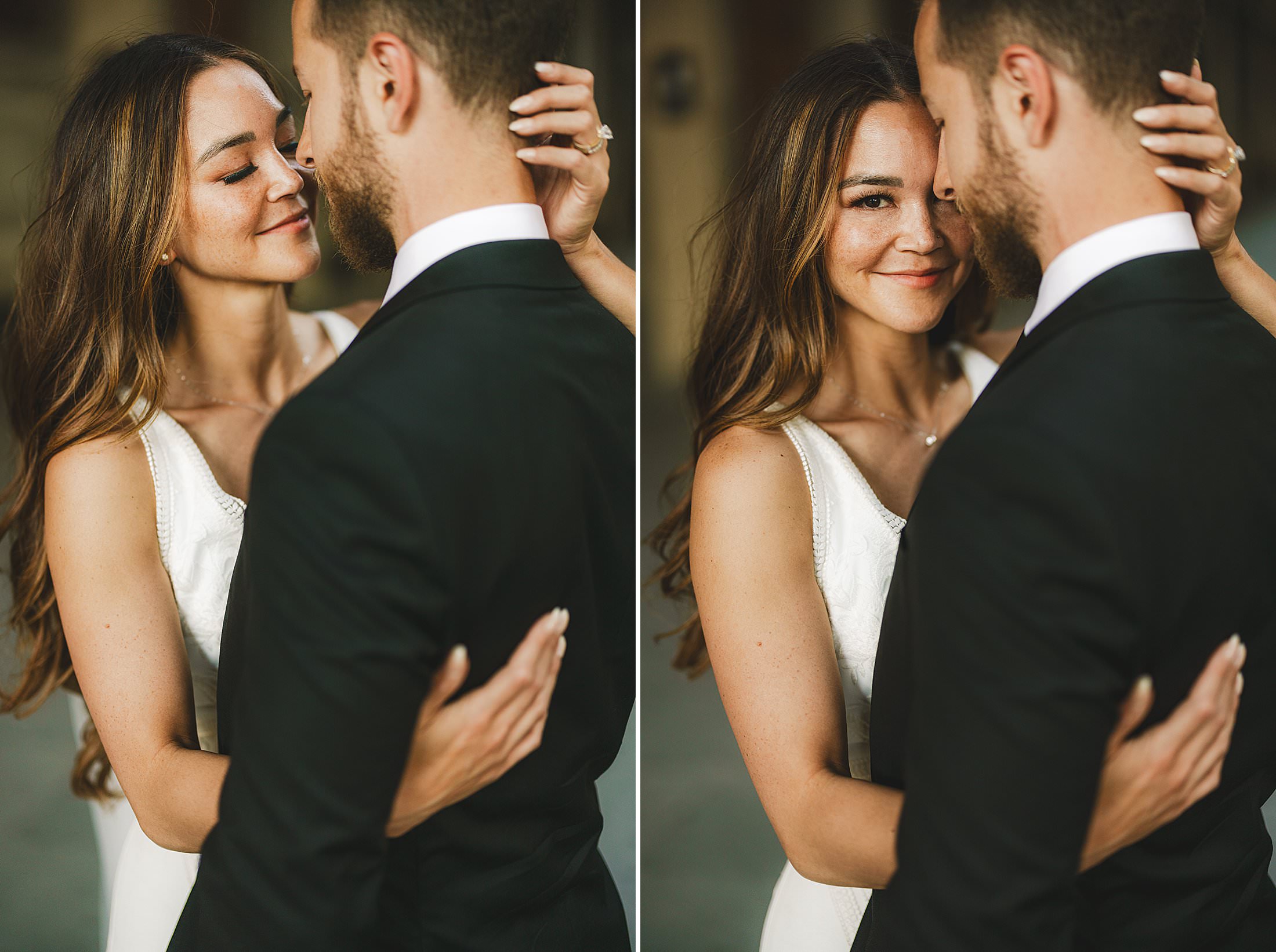 Emotional and spontaneous bride and groom portrait photo at Borgo Stomennano during golden hour. Photo by the elegant wedding photographer in Tuscany based Florence Gabriele Fani.