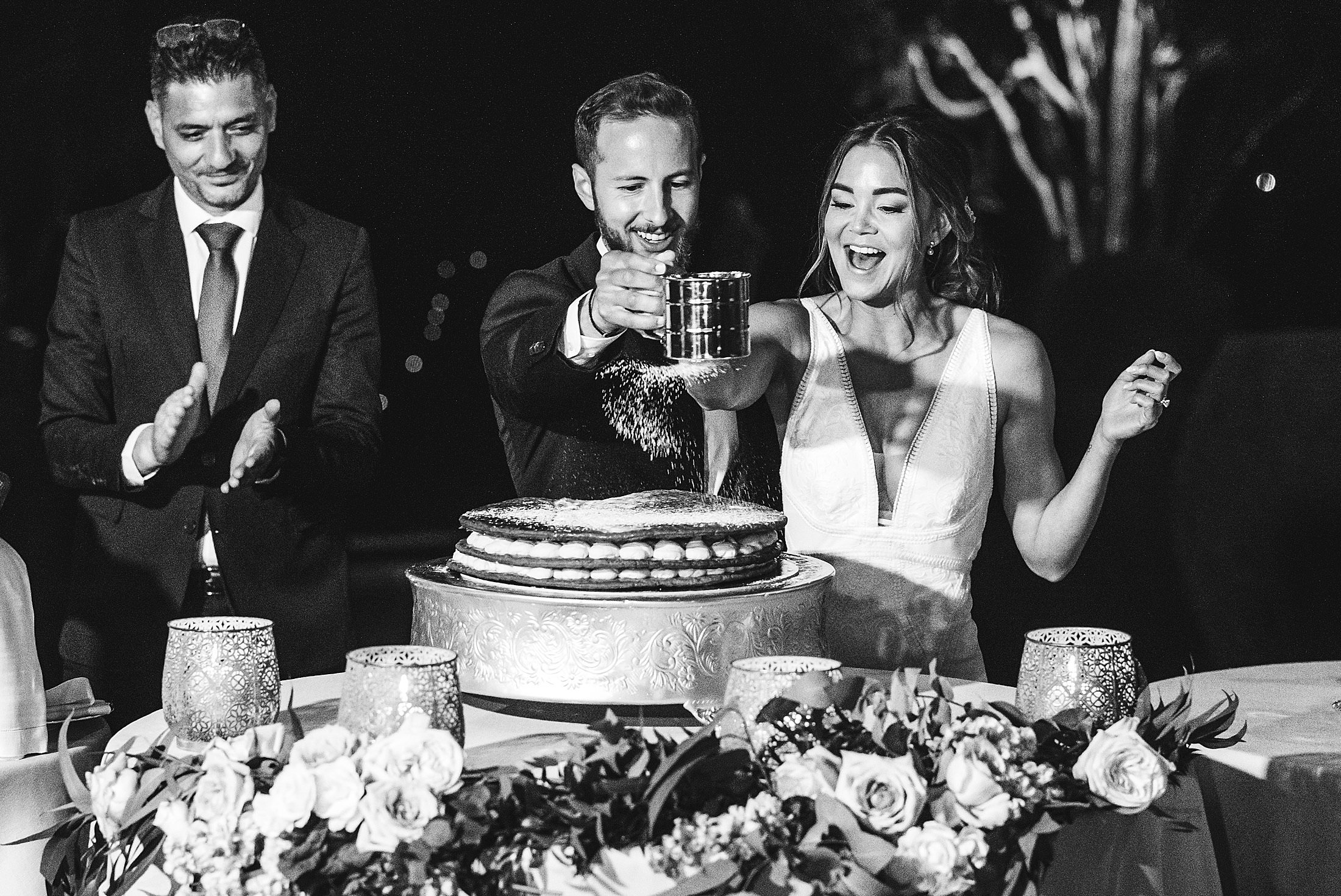 The wedding ceremony took place along the characteristic entrance avenue, offering a picturesque view of cypress trees that stood witness to their union. Surrounded by loved ones, the couple shared tender glances and heartfelt words in an awe-inspiring setting, creating memories that would be treasured forever.