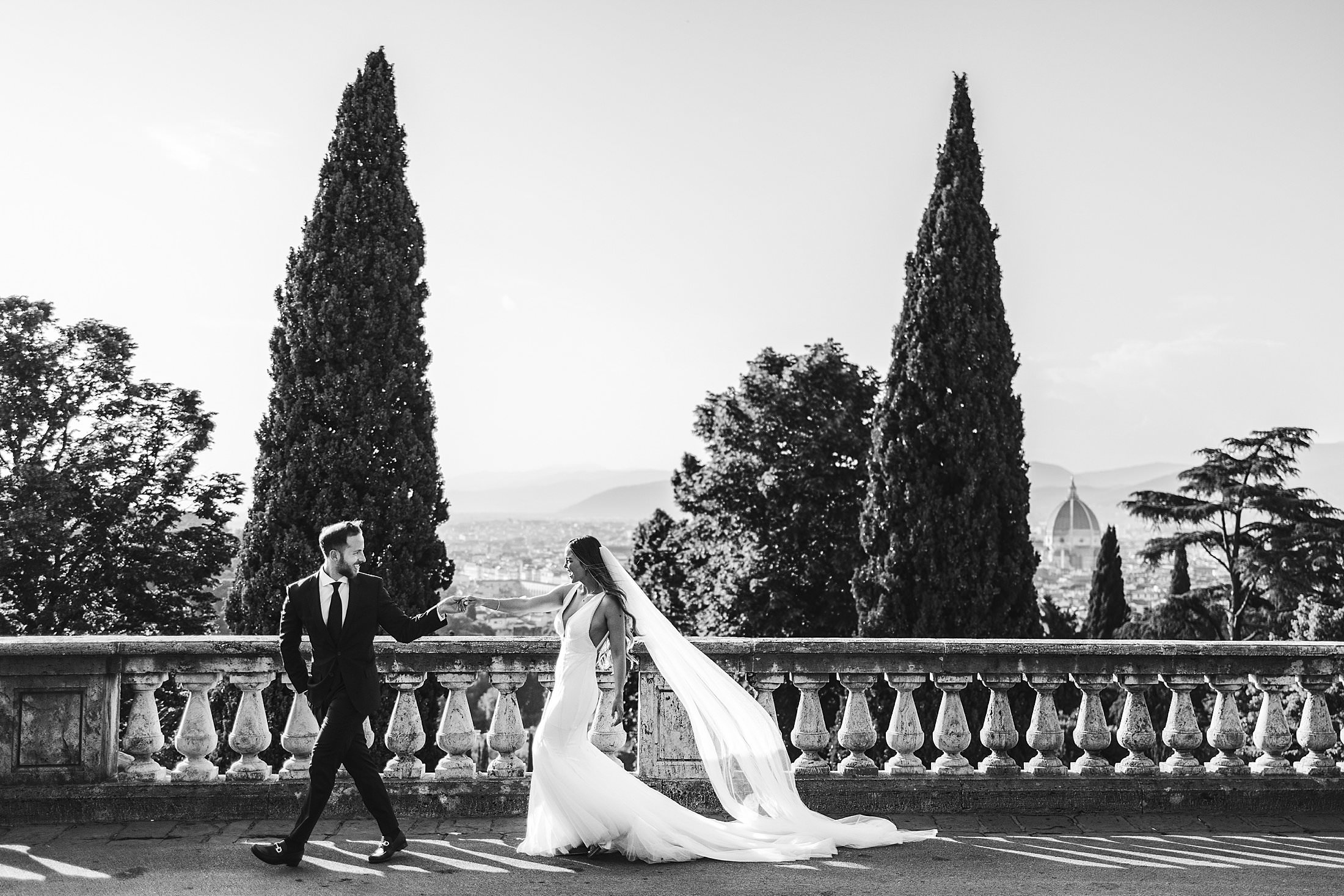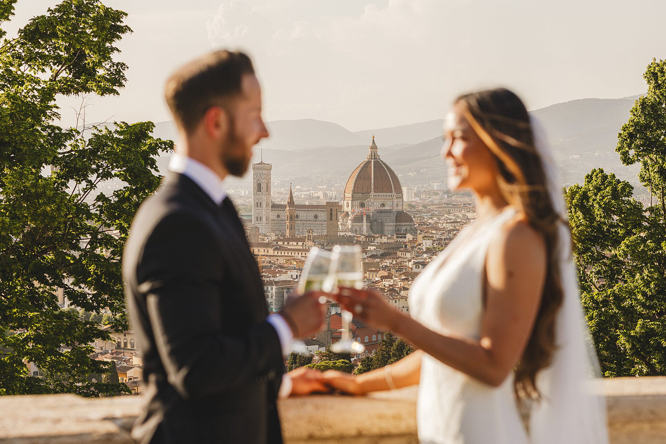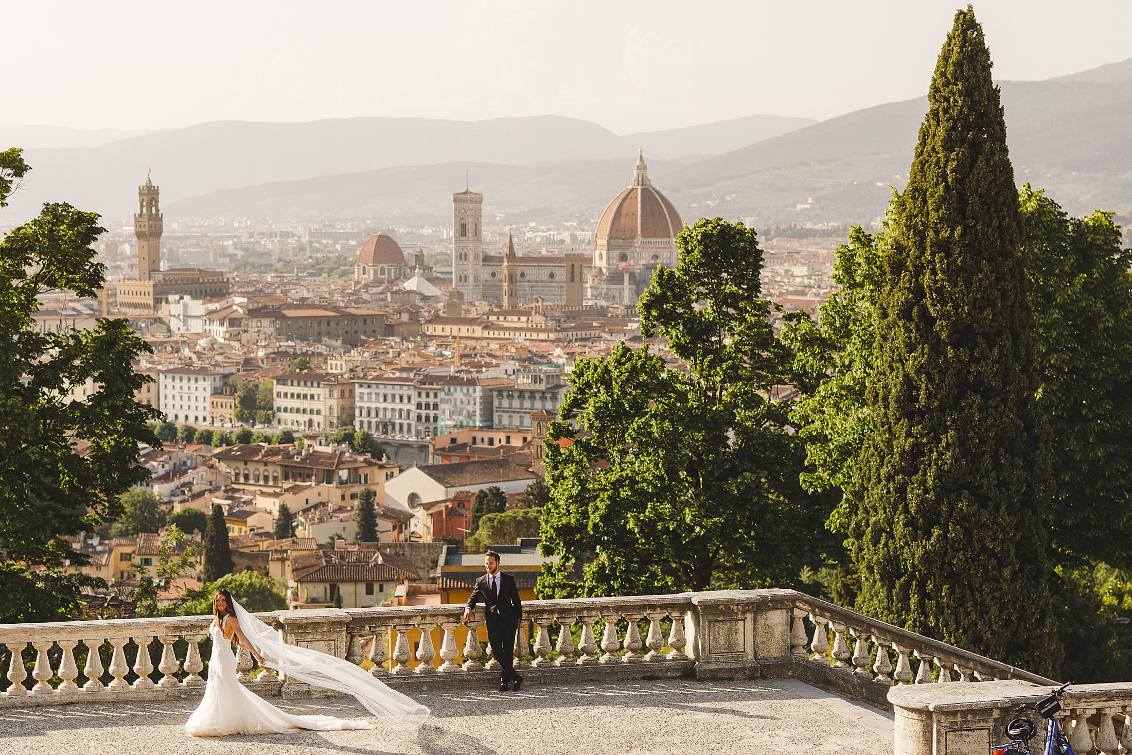Capture the essence of love in a breathtaking post-wedding photo taken in Florence. This panoramic shoot at San Miniato al Monte beautifully encapsulates the romance and timeless beauty of the city. Join us on a journey through the historic streets and iconic landmarks, where every frame tells a tale of passion and devotion. Elevate your post-wedding memories with the enchanting spirit of Florence. Photo by the elegant wedding photographer in Tuscany based Florence Gabriele Fani.