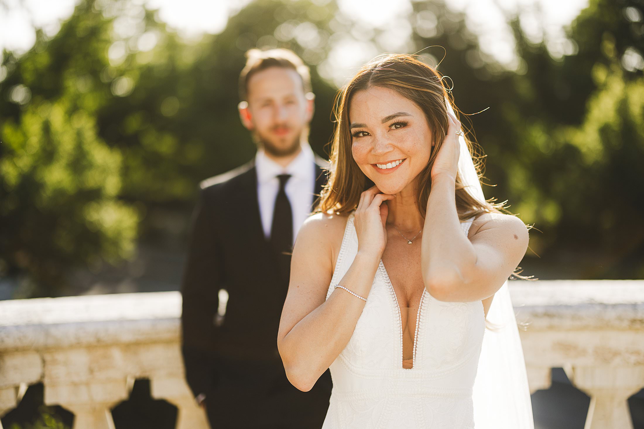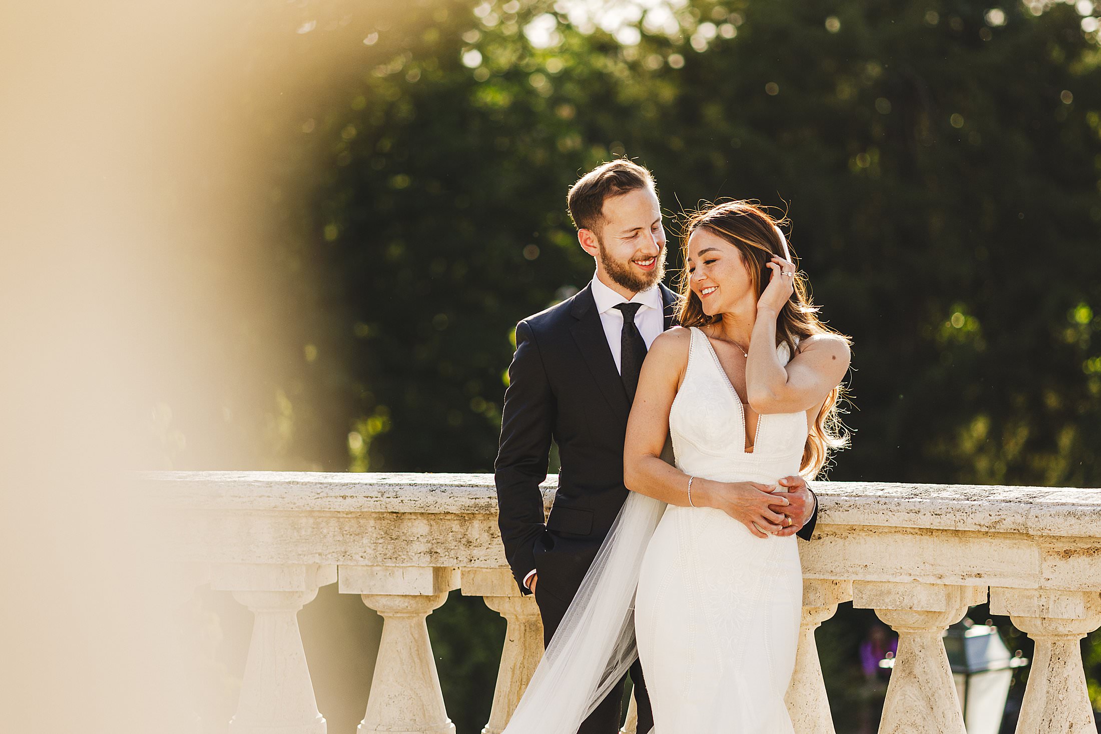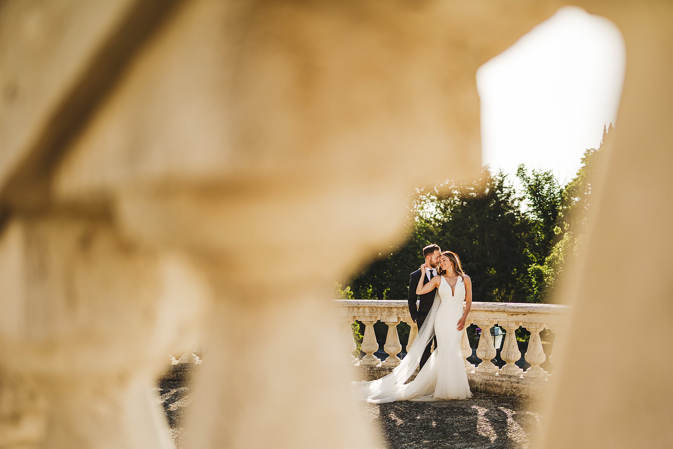 Elegant bride and groom wedding photo shoot at breathtaking Borgo Stomennano during golden hour. Photo by the elegant wedding photographer in Tuscany based Florence Gabriele Fani.
