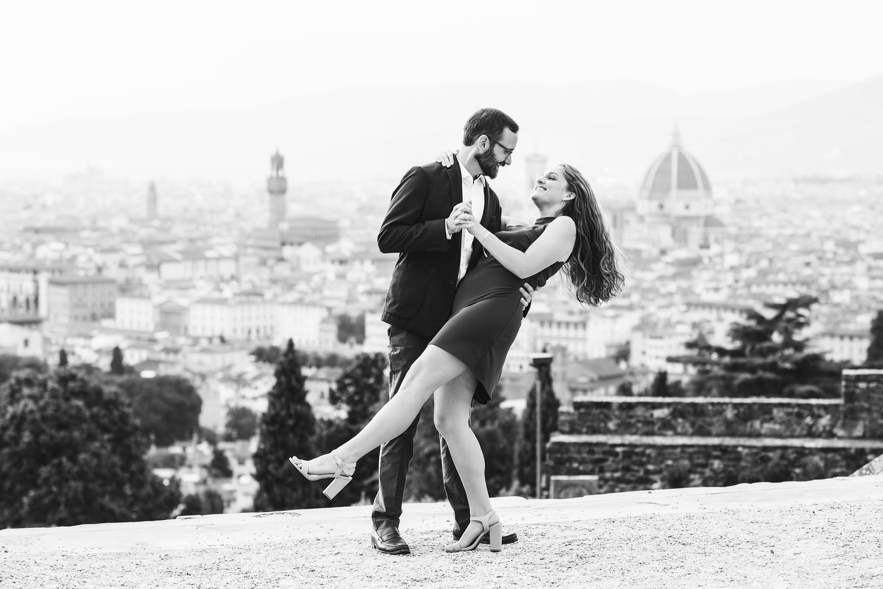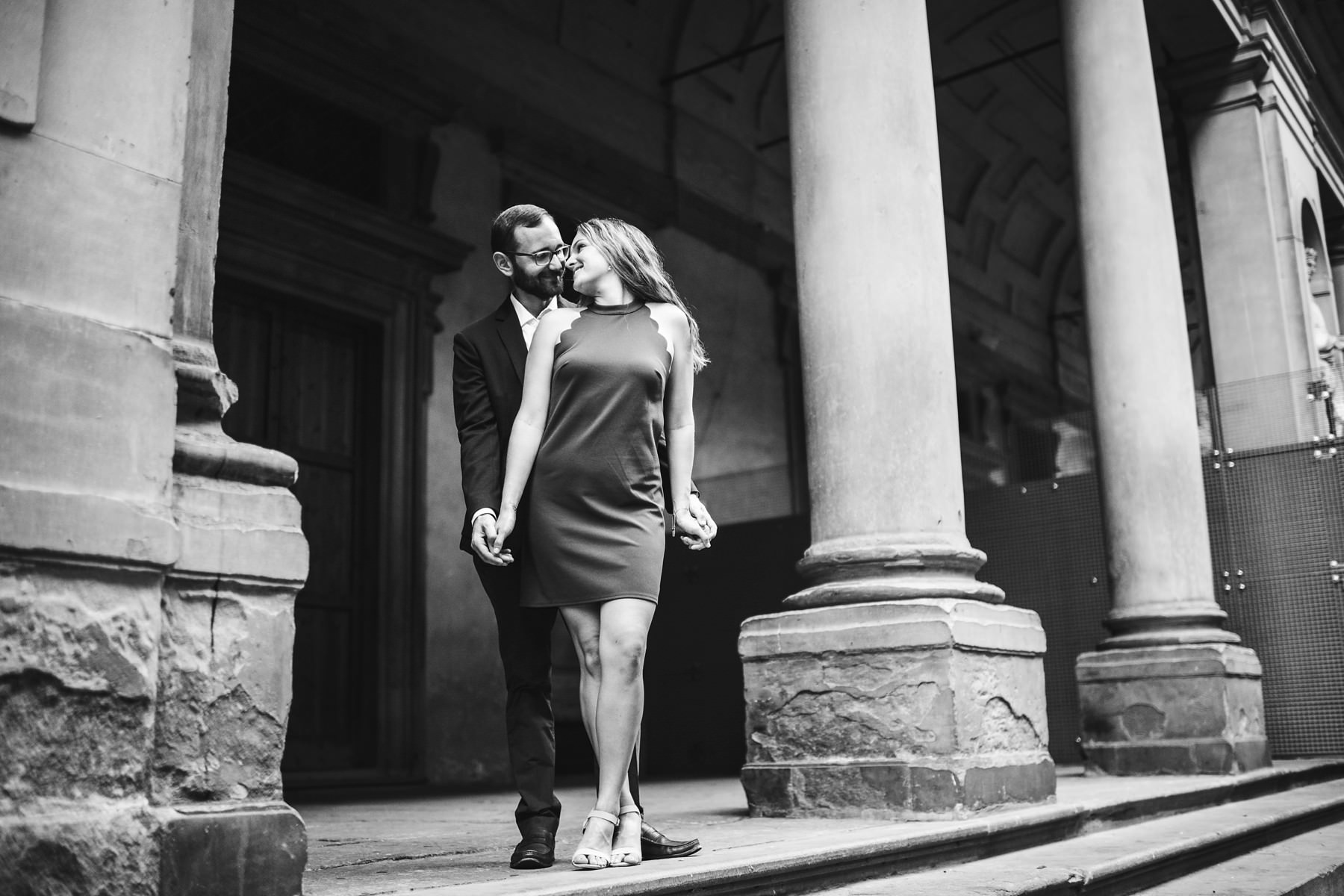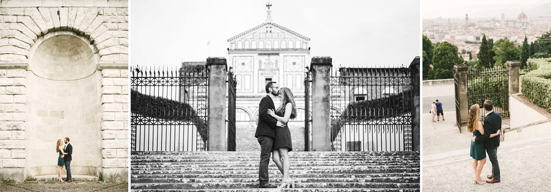We strolled around the streets of the city, touching all the most scenic spots. We shot engagement pictures in the magic San Miniato al Monte, where you can enjoy a wonderful view of Florence, and then we moved to the city center. Piazza della Signoria, Ponte Vecchio and the boulevards all around witnessed the strength of the bond between Tory and Cody – they danced, hugged, smiled at each other and disclosed all of their love.