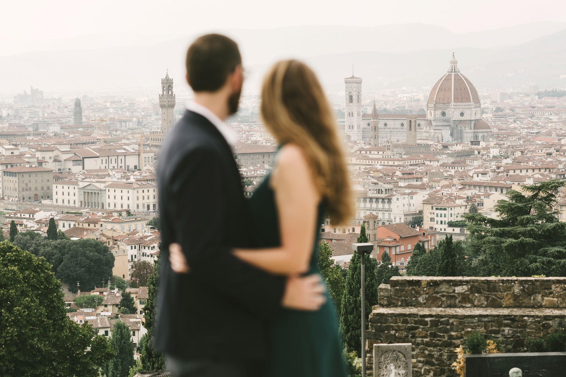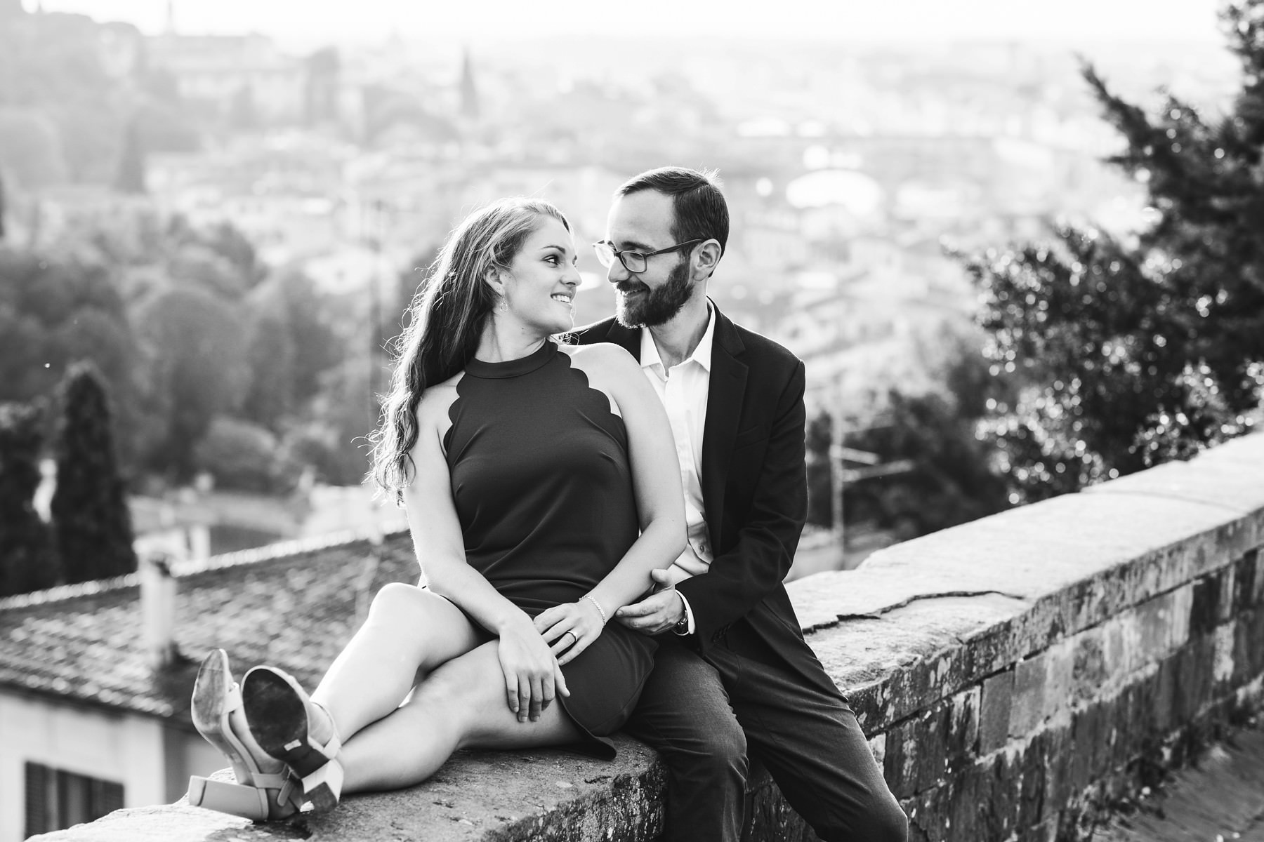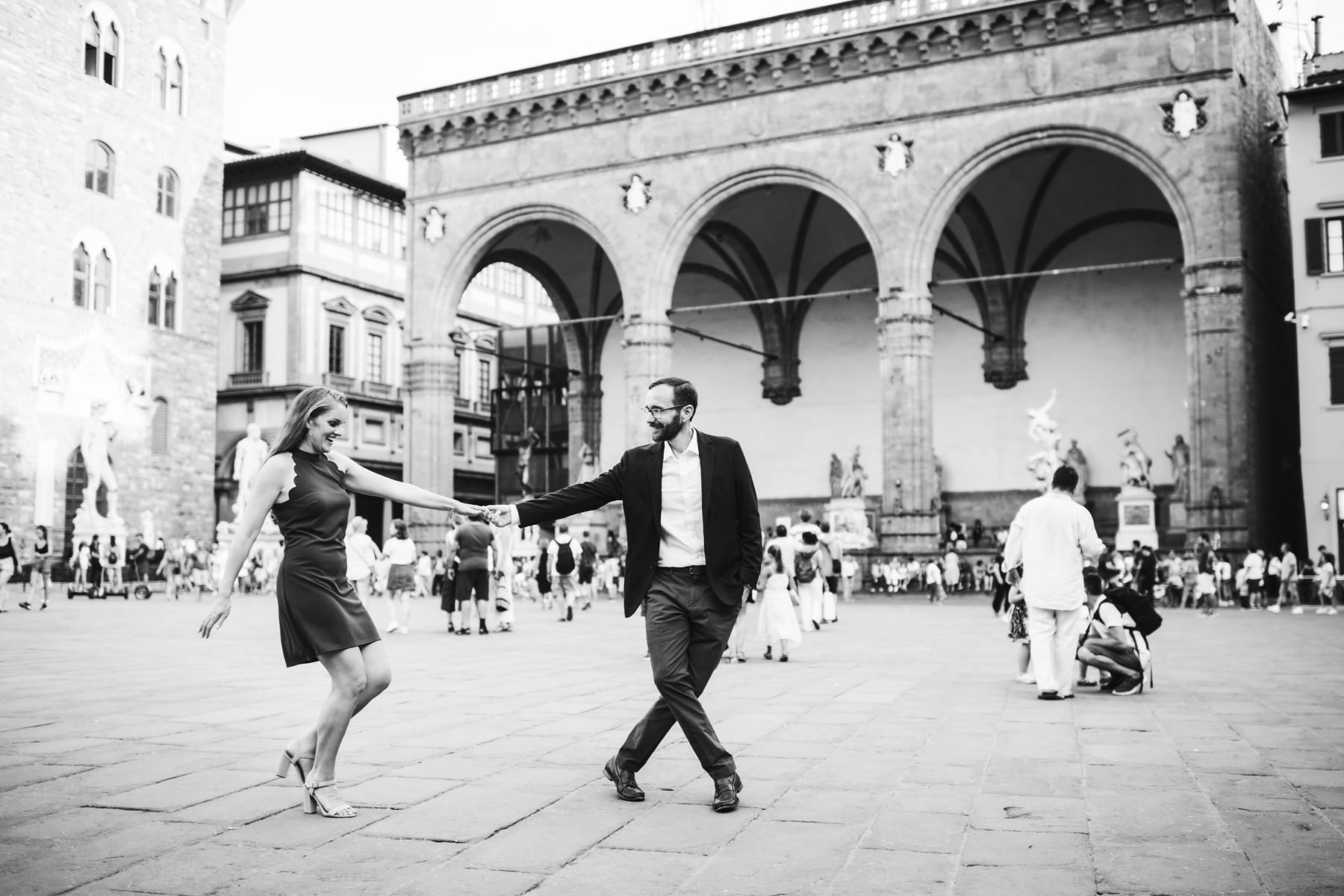 We strolled around the streets of the city, touching all the most scenic spots. We shot engagement pictures in the magic San Miniato al Monte, where you can enjoy a wonderful view of Florence, and then we moved to the city center. Piazza della Signoria, Ponte Vecchio and the boulevards all around witnessed the strength of the bond between Tory and Cody – they danced, hugged, smiled at each other and disclosed all of their love.
