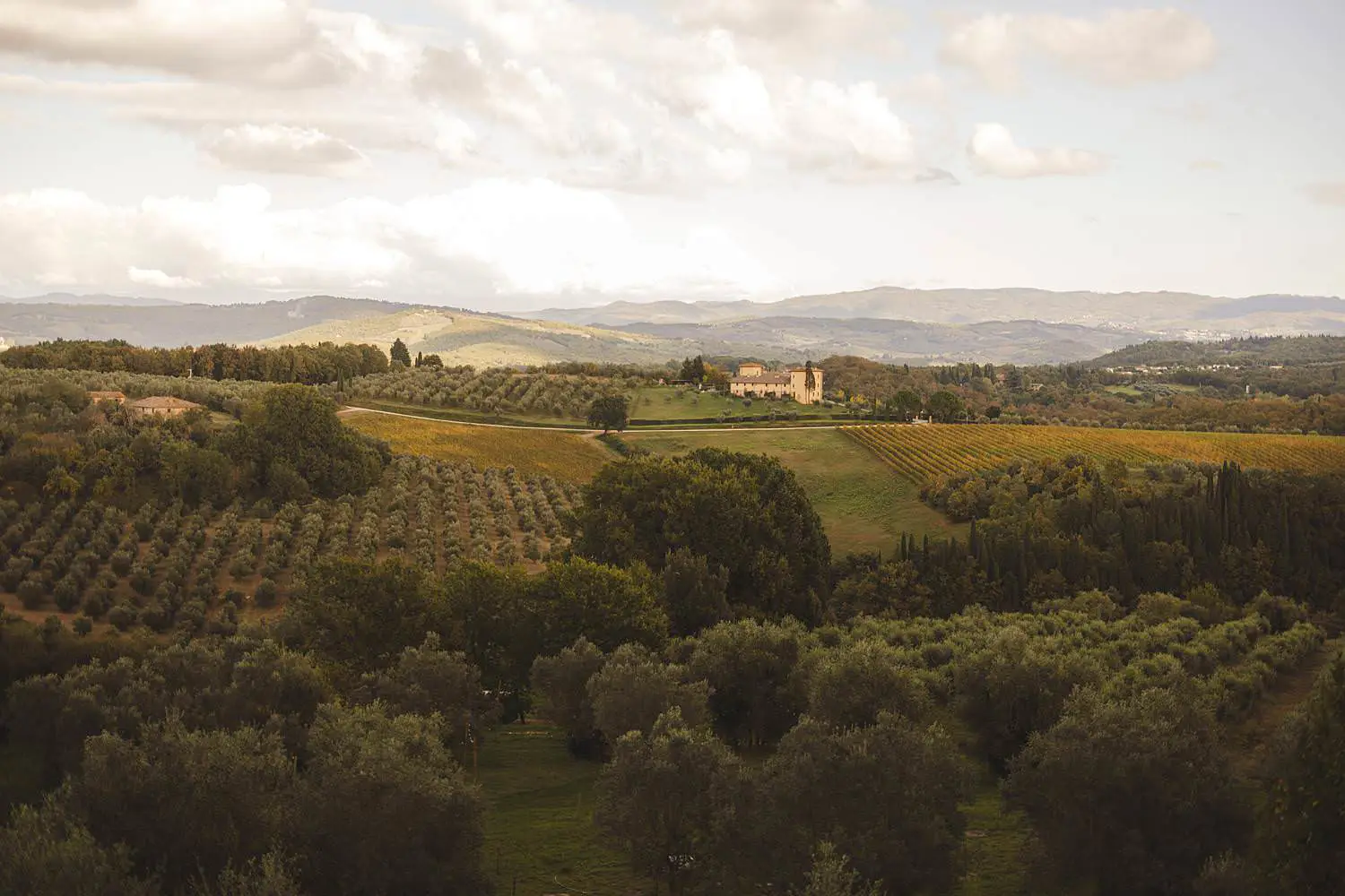 A small romantic picnic had been prepared in a secluded area of the estate, overlooking the dreamy rolling hills of the Chianti countryside. Surrounded by vineyards and olive groves, the setting was peaceful and incredibly romantic.