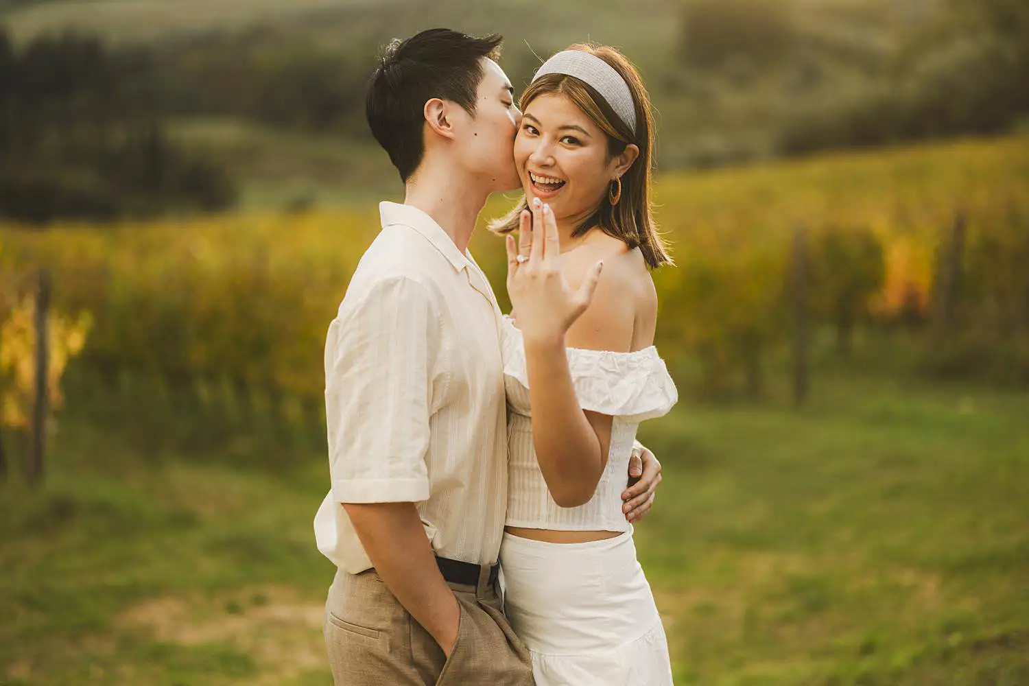 With the breathtaking landscape of Tuscany surrounding them, he asked her to marry him.