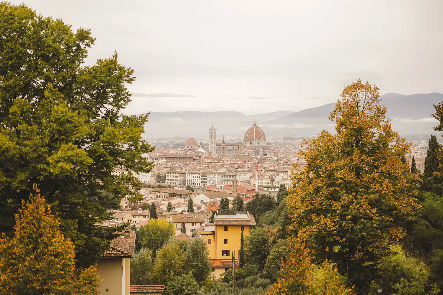 The location was the breathtaking terrace of San Miniato al Monte, one of the most beautiful panoramic viewpoints in Florence. From this hilltop terrace, the entire city unfolds below, with the iconic dome of the Duomo rising above the historic skyline.
