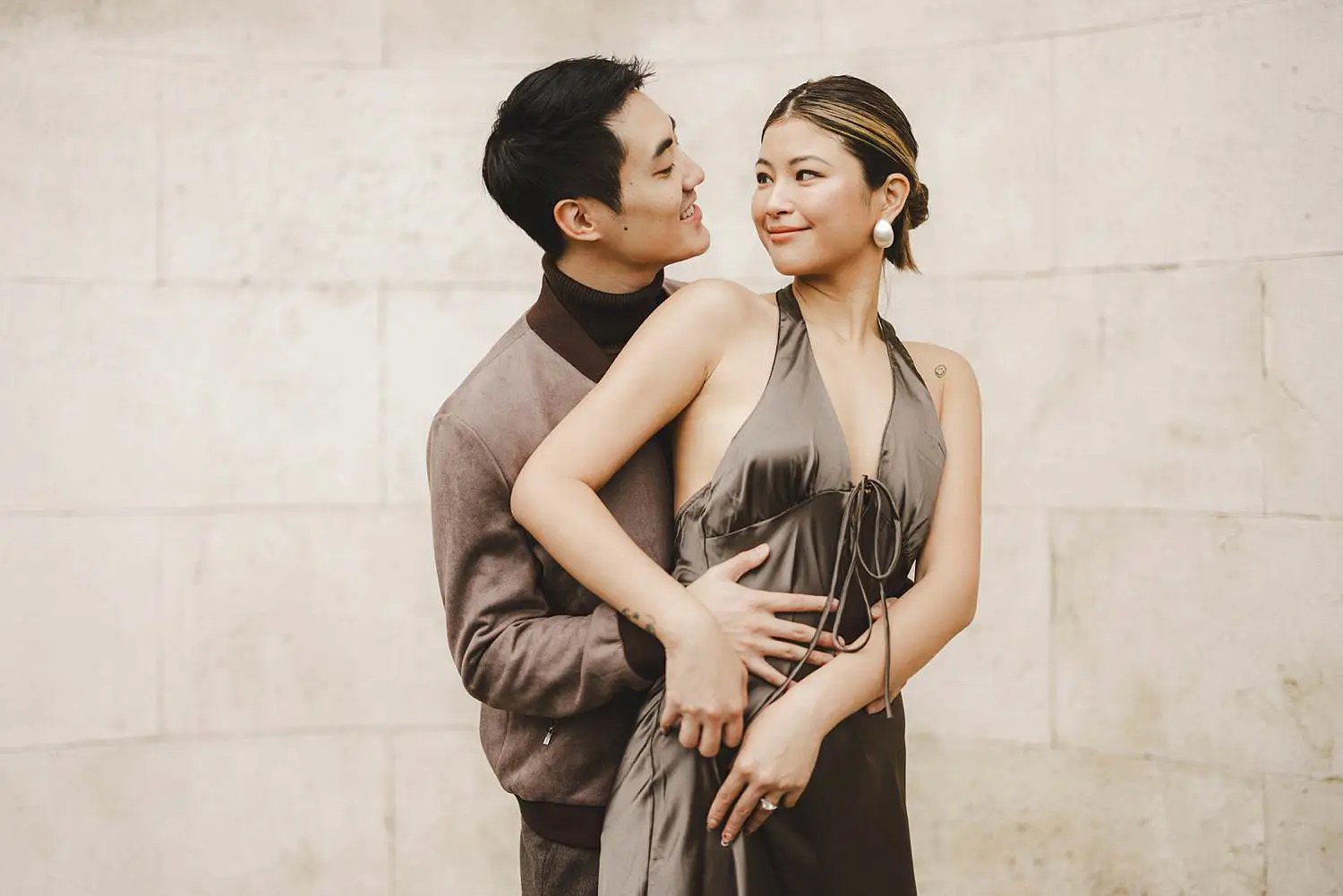 The umbrellas not only protected them from the rain but also helped maintain beautiful natural light on their faces, allowing the photographs to remain bright and soft despite the cloudy sky. At the same time, they added an original and stylish element to the session.